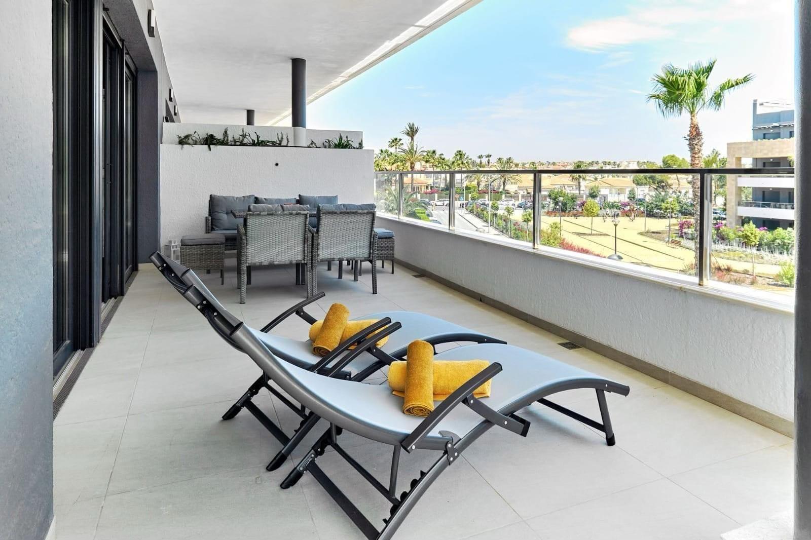 Discover this exclusive apartment in the most luxurious and fully equipped urbanization of Playa Flamenca, located in the privileged Orihuela Costa. Just 400 meters from the beautiful beaches of the area, this exceptional residential complex offers an unparalleled quality of life surrounded by all the amenities you could ever need. Urbanization Features: 5 swimming pools, including a heated one for year-round use. Beach bar, sauna, and a fully equipped gym. Children's play area and beautifully designed green spaces. Close to supermarkets like Mercadona, restaurants, bars, and only 5 minutes from Zenia Boulevard shopping center. Apartment Features: Prime corner location with a private 25 m² terrace, perfect for relaxation or entertaining. Stylish modern design and fully furnished – ready to move in or rent out. Tourist License in place, with the option to obtain additional licenses according to the urbanization's regulations. Whether you're looking for a smart investment or a unique place to live, this property in the best location in Playa Flamenca is waiting for you. Don’t miss this opportunity! Contact us for more information or to schedule a visit. Your dream home awaits!