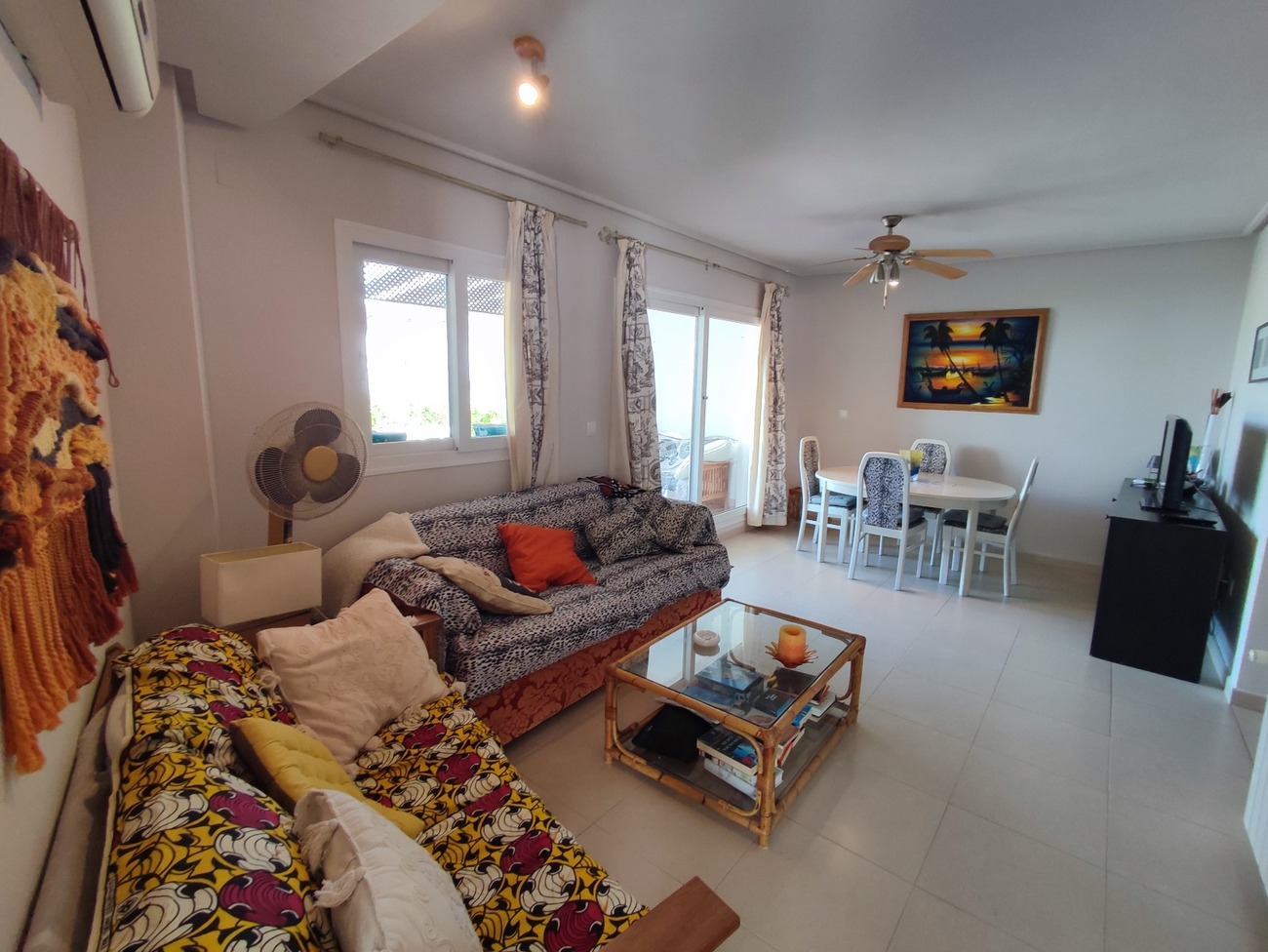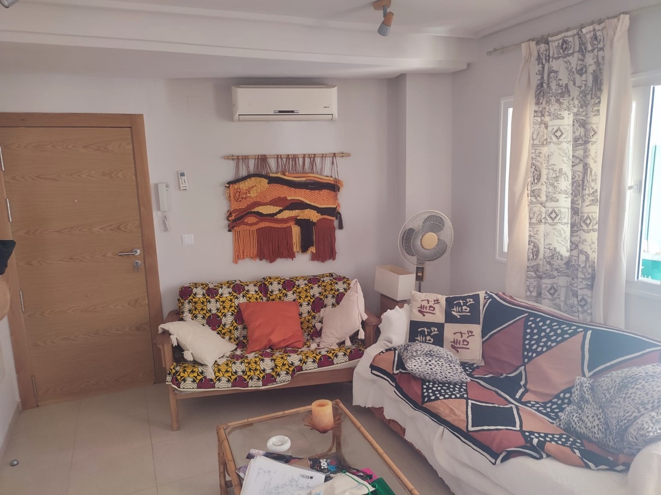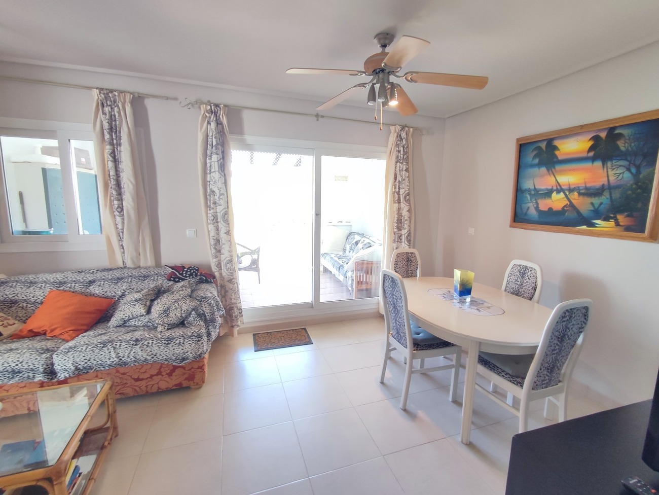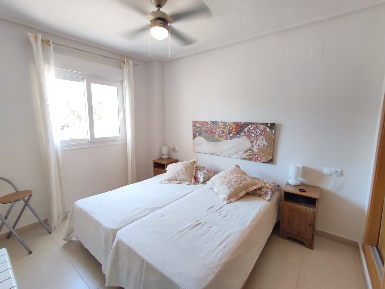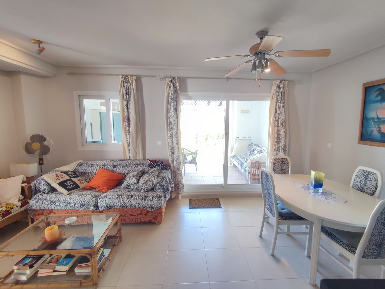 This garden apartment is South East facing and has great views, plenty of natural light and built to a very high standard . The main door of the apartment enters into a bright and airy living/dining room featuring storage units, sofas, coffee table and dining table and chairs, air-conditioning and heating. The living room has patio doors to lead to a terrace area and garden with garden and golf views, perfect location for morning sunshine. The main bedroom features a double bed and bedside tables, fitted wardrobe, ceiling fans and heating. The bathroom has a bathtub, vanity unit, wc and bidet. The second bedroom is a twin room comes with fitted wardrobes, ceiling fans and heating. The kitchen has fitted kitchen units, oven, hob, extractor, fridge freezer and washing machine. This apartment comes fully furnished, with underground parking in a resort with WIFI, satellite TV, gardens, pools, sports facilities, restaurant & supermarket, situated close to the village of Sucina and just 15 minutes drive to the airport and to the coast.