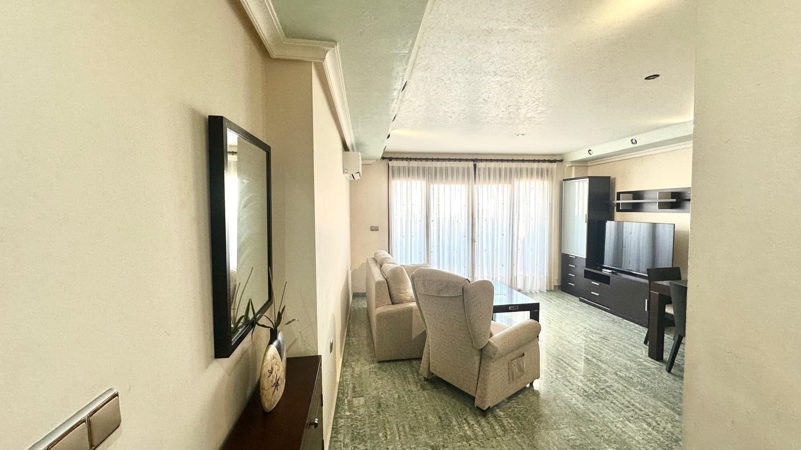 Penthouse 450 metres from the beach – bright, functional and in an excellent location This cosy penthouse is located just 450 metres from the beach, an ideal opportunity for those who want to enjoy the Mediterranean climate and coastal life without sacrificing the convenience of having all amenities within easy reach. Its privileged location allows you to walk to supermarkets, restaurants, pharmacies, schools and public transport stops, making it a perfect choice for both a permanent residence and a holiday home or investment. The property has a practical and comfortable layout, designed to make the most of every space: A good-sized living-dining room, located just inside the entrance, equipped with air conditioning, offering a cool and pleasant atmosphere during the warmer months. A separate, fully functional kitchen with direct access to the terrace, facilitating ventilation and communication with the outside. A large private terrace, ideal for enjoying al fresco dining, sunbathing or relaxing in complete privacy. Two double bedrooms, one of which, the master bedroom, has air conditioning installed for greater comfort. Full bathroom, in good condition and perfectly laid out. Thanks to its north-facing orientation, the property stays cool during the summer, avoiding excessive heat, which makes it particularly comfortable for those seeking a balanced temperature throughout the year. The building also has a communal solarium, a perfect space for sunbathing, enjoying the panoramic views or relaxing in a peaceful atmosphere. In short, this penthouse combines location, comfort and functionality, offering everything you need to enjoy life by the sea. Its proximity to the beach, the surrounding area with all amenities and its good condition make this property an excellent opportunity to buy, both for living and for investment.