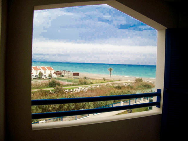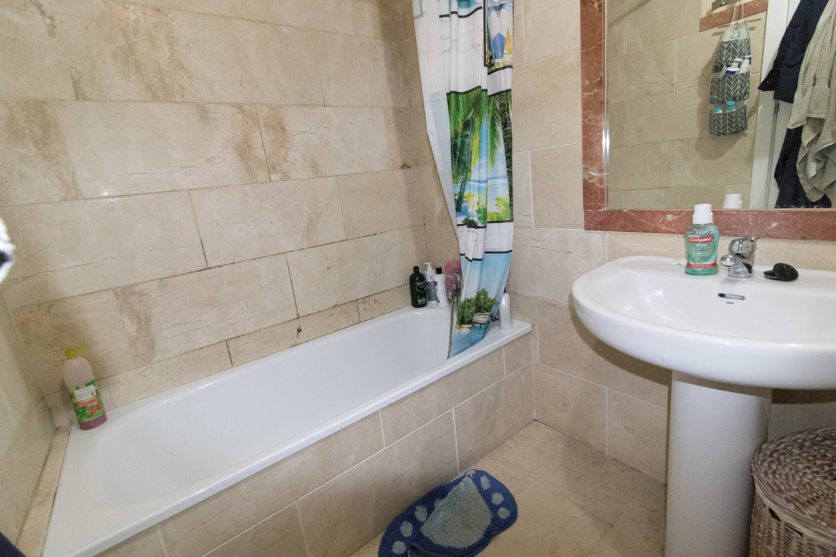 Frontline beach: Beautiful 1-bedroom apartment with breath-taking panoramic sea views in the prestigious beachfront urbanisation La Noria IV. This bright apartment is in an excellent condition and ready to move in. It consists of a large living room with huge sliding doors to the terrace, a spacious bedroom, a bathroom with bathtub and bidet; a fully equipped galley kitchen with a small storage area and of course, the terrace with truly breath-taking views to the sea, beach and the mountain. The apartment is built to the highest standard with marble floors throughout, several inbuilt wardrobes and double-glazing on all windows/balcony doors. You don't need to worry about parking as it comes with a place in the underground video-surveilled garage.The urbanisation, which is a small, quiet enclave in the bustling town of San Luis de Sabinillas, has 24/7 security with a guard always being somewhere near. It has a privileged location, right at one of Costa del Sol's most beautiful beaches, to which it has a direct entry/exit. The urbanisation features 2 paddle tennis courts, a community pool, a children's pool and playground. It has beautifully maintained gardens with small fountains and benches throughout inviting to relax in the shadow of the palm trees. The urbanisation has is located right at the beach promenade that goes all the way from Buenas Noches down to La Chullera so it's ideal for long strolls. The location of this urbanisation is quite unique, because on one hand it is located right next to the city centre, just a stone's throw away from all amenities (from the health centre to pharmacies and shops), but on the other hand it is peaceful and quiet.It is just a few minutes' walk to the city's sports complex with multiple tennis courts, paddle tennis courts, a sports swimming pool, a sauna & spa area as well as a number of different sports & aerobics classes for both children and adults. Given its central location, there are multiple restaurants and bars nearby, and a large Lidl store is located just on the opposite side of the road.