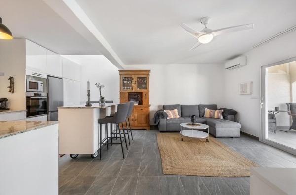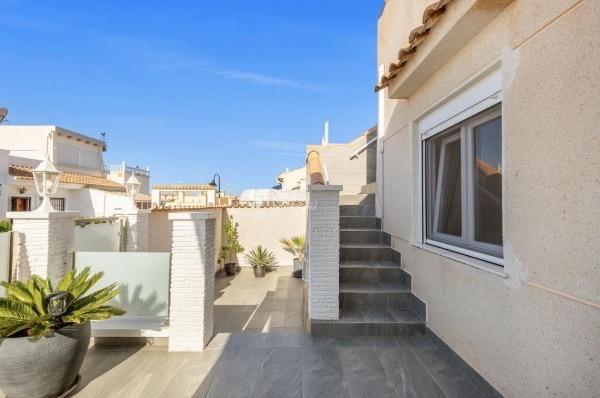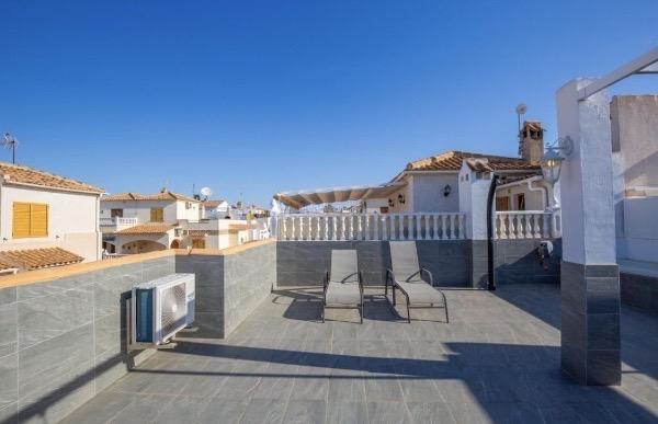 For sale beautiful duplex with 2 bedrooms near the sea, in the area of ​​Los Frutales. The house has 2 bedrooms, separate kitchen, toilet, 1 bathroom, living room, terrace, solarium, 2 patios of about 120 m2. This house has air conditioning and a fireplace. Parking in front of the house in a closed yard. On the ground floor there is a living room, kitchen, bathroom. On the upper floor there are 2 bedrooms, one of them with a terrace, with dressing rooms and a bathroom. On the third level you will find a solarium with stunning sea views. The house is located in a quiet area 500 m from the sea and with all services.