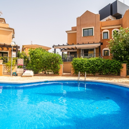 Amazing 3-bedroom villa with solarium, private pool and parking in Torrevieja Fantastic detached villa with private pool, located in a quiet area surrounded by nature, perfect for those seeking comfort, privacy and an authentic Mediterranean lifestyle. Built on a plot of 116 m², the property has 106 m² distributed over two floors. On the ground floor there is a bright living room with integrated kitchen, a double bedroom and a full bathroom, offering everything you need to enjoy a comfortable life. On the upper floor there are two spacious bedrooms with en-suite bathrooms and direct access to a spectacular solarium with unobstructed views of the Laguna Rosa de Torrevieja, a unique natural environment. The exterior, which is completely tiled, offers a magnificent private swimming pool, ideal for relaxing or sharing moments with family and friends. The furniture is not included, but can be purchased separately. A modern property with character, perfect for year-round living or enjoying a holiday surrounded by peace and nature. LOCATION: Torrevieja is in the province of Alicante (Costa Blanca). It is famous for its Mediterranean climate and its coast. We cannot forget its promenades where we can find some restaurants along the fine sandy beaches. It also has many excellent beaches such as Playa de los Náufragos, Playa de los Locos and Playa de la Mata. Therefore, it is considered a remarkable tourist town where the environment takes an important place as an important tourist attraction. In addition, we can find many shopping centres (Habaneras, La Zenia Boulevard), golf courses, sport centres, hospitals (such as Hospital Universitario de Torrevieja) and airports such as Alicante Airport (35 km away) and Region of Murcia International Airport (43 km away). IBI: 620 €. Should you have any question do not hesitate to contact us!