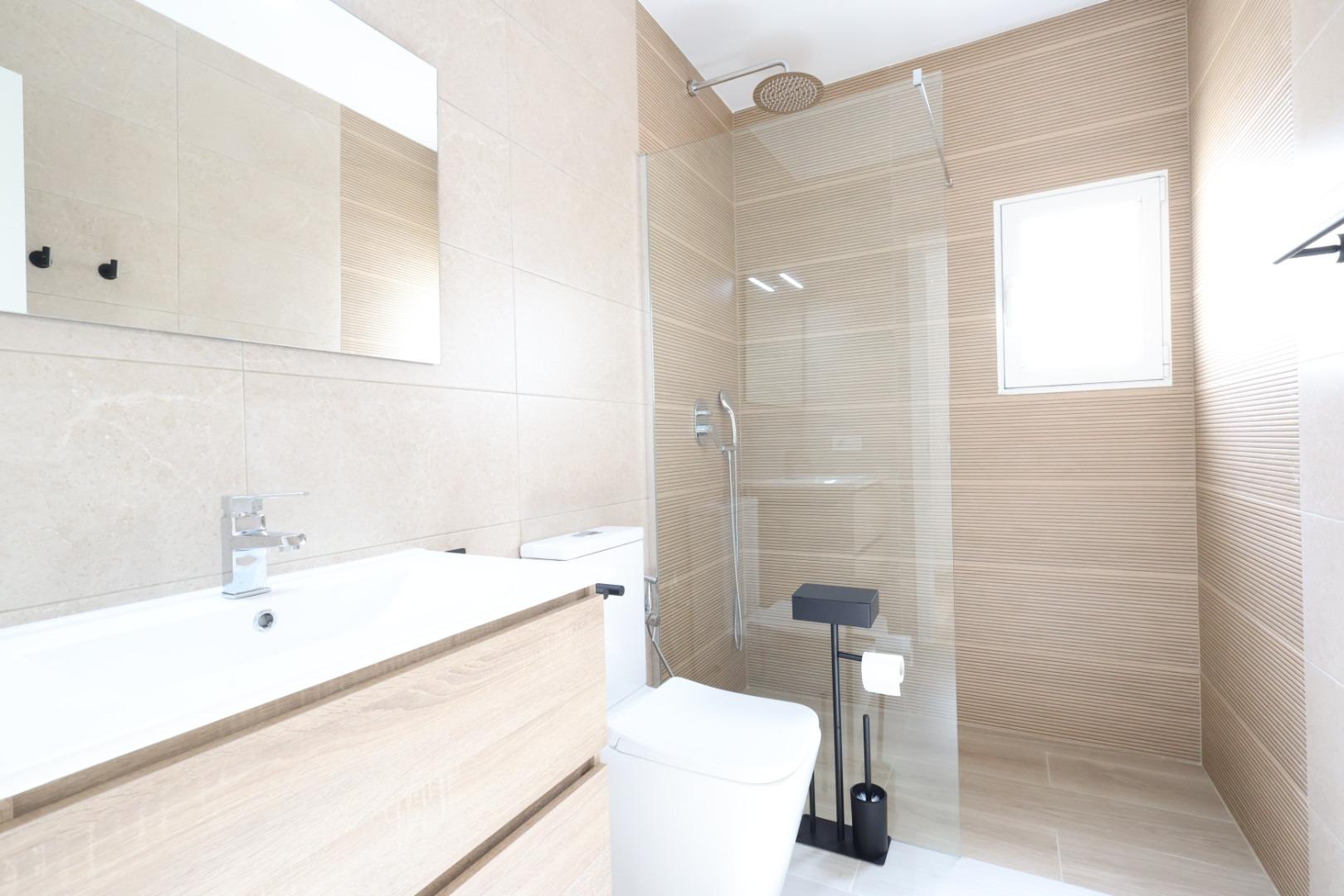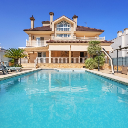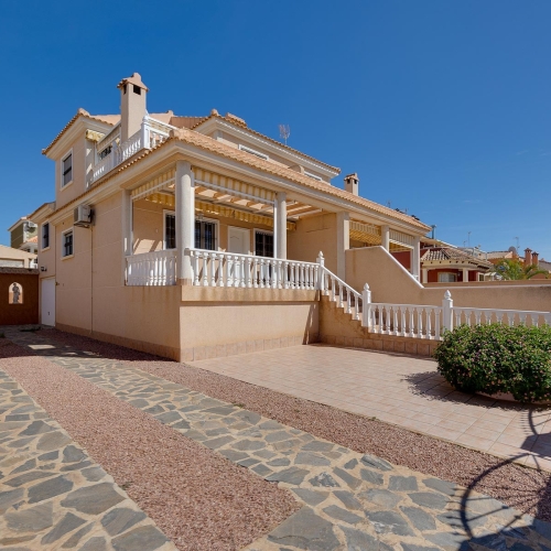 La Siesta, a modern style detached villa completely renovated with good qualities, with a plot of 300 m2 and a single-storey house of 105 m2 has 3 bedrooms, 2 of the bedrooms have direct access to the private pool that measures 7x4, 2 bathrooms, a large living room and a fully equipped semi-independent kitchen, it has a driveway for 3 cars and several terraces, the house is sold with air conditioning, it is very well located very close to supermarkets, bus stops, etc.