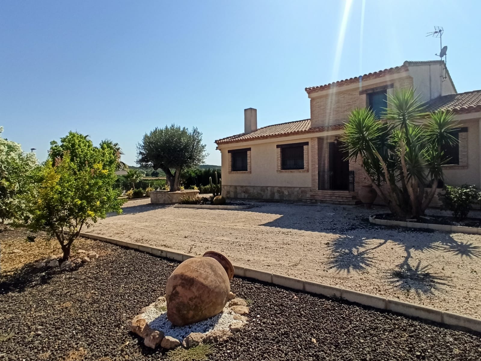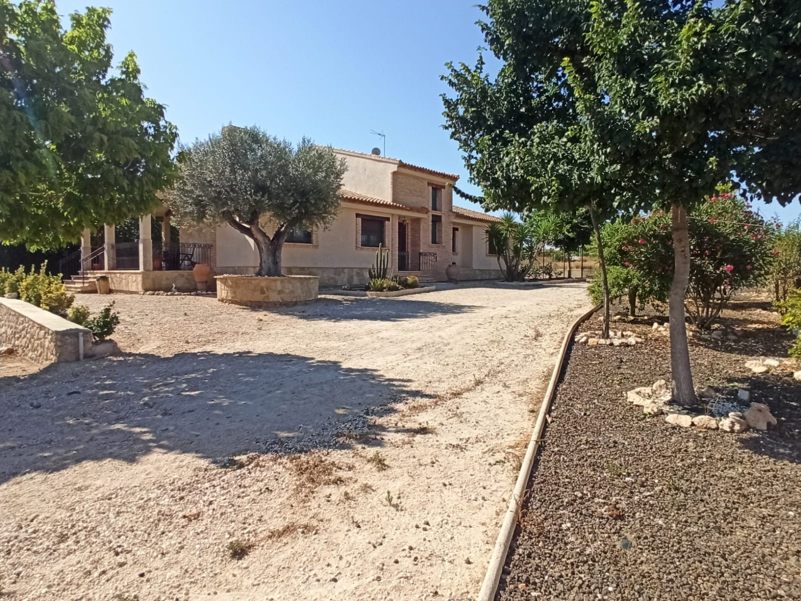 This very spacious and beautiful villa is located in a quiet area and offers an abundance of privacy. The rustic and warm typical Spanish decor provides the right atmosphere and cosiness. Lots of living space, a beautiful oak kitchen with all appliances, comfortable laundry room, 3 large bedrooms, walk-in dressing, beautiful fully fitted bathrooms, large hobby room, fantastic outdoor spaces and a very large low maintenance garden. in short, this house is simply superb, both in terms of location and in terms of space and design. In a few minutes you are in Murcia and Alicante can be reached after half an hour's drive. The historic city of Orihuela is also nearby. A trip to the sea, for example to Guardamar or Torrevieja, also takes no more than half an hour. If you would like more information or would like to view the villa, do not hesitate to contact us.