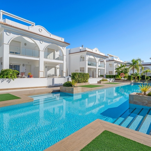 På Costa Blanca ett hörnradhus med trädgård! Huset har ett stort vardagsrum och ett separat kök! 2 sovrum och badrum! Också en stor terrass med grill! Underbyggt ett vardagsrum 2 sovrum,kök och ett badrum!