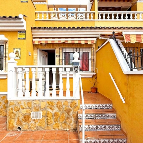 For sale townhouse in the city of Torrevieja. The townhouse has three floors. On the ground floor there is a kitchen, living room, and a toilet. On the first floor there are two bedrooms and a bathroom, on the top floor there is another bedroom with access to the terrace. There are sun loungers and a shower on the upper terrace. Another terrace is located at the entrance to the house.The distance to the sea is 1 km.There is a pool in the residential complex.The townhouse is located in the beautiful urbanization Calas Blancas, with many green plantations.Torrevieja is a popular Spanish resort city and municipality in the province of Alicante in the southern part of the Costa Blanca coast. The city is considered the third largest in the province after Alicante and Elche. The resort is popular due to the favorable Mediterranean climate, magnificent sandy beaches, and numerous salt lakes-lagoons around.