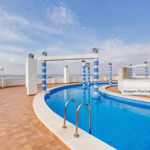 Apartment in Torrevieja center, about 500 m from the beach “Playa del Cura”, the Promenade and the Natural pools, with community swimming pool. It consists of a living room with access to the terrace, a fully equipped separate kitchen, a double bedroom, a simple bedroom and a bathroom. South facing! Furnished. Built-in wardrobes in the bedrooms. Lift in the building. In good condition. Perfect location, close to all amenities, restaurants, cafes, supermarkets, shops, the seafront Promenade, the Natural pools, the main bus station, ... Ready to move in, enjoy the beach and the beautiful Mediterranean climate. And very close by, you can park your vehicle in the Virgen del Carmen underground parking!