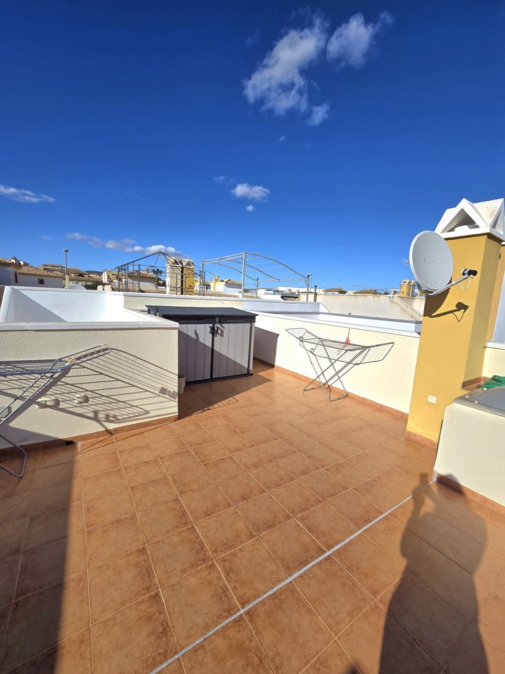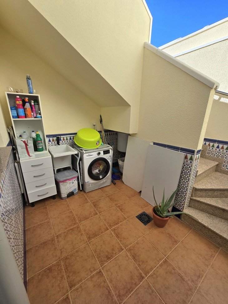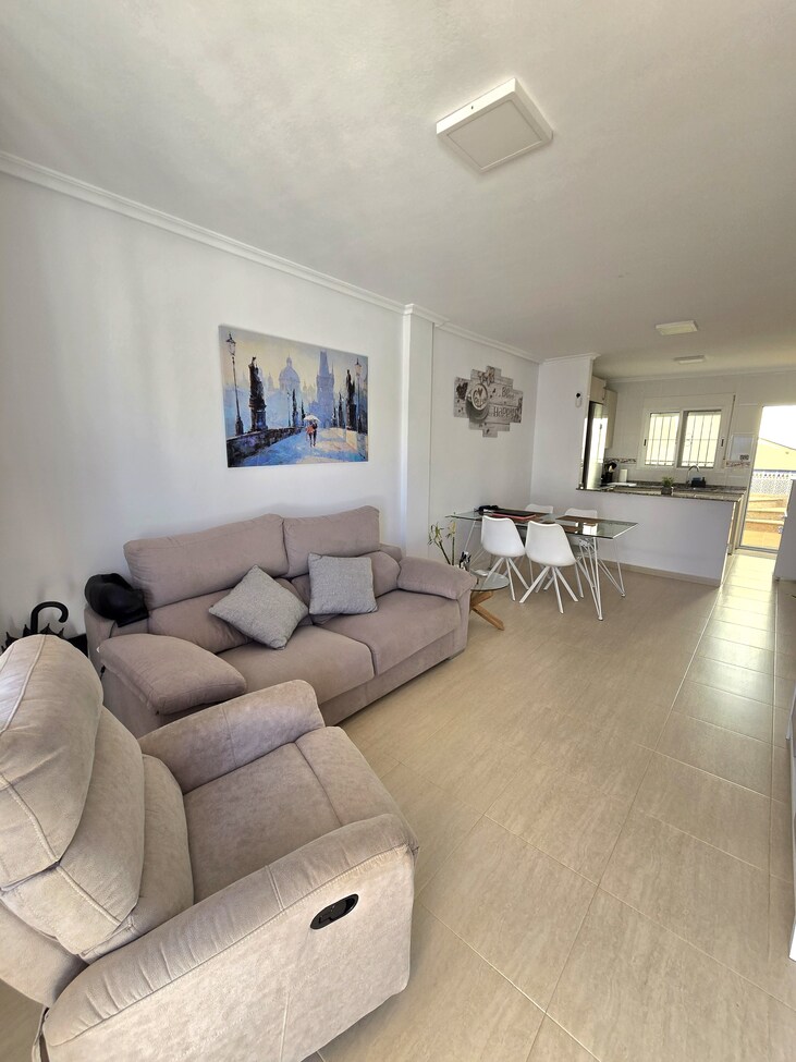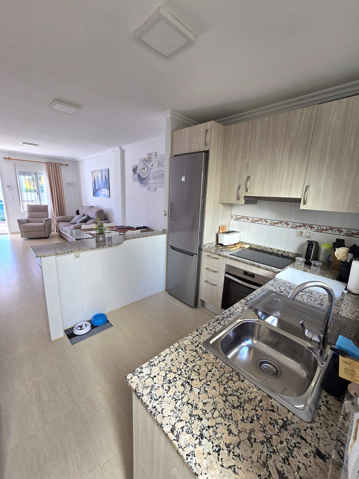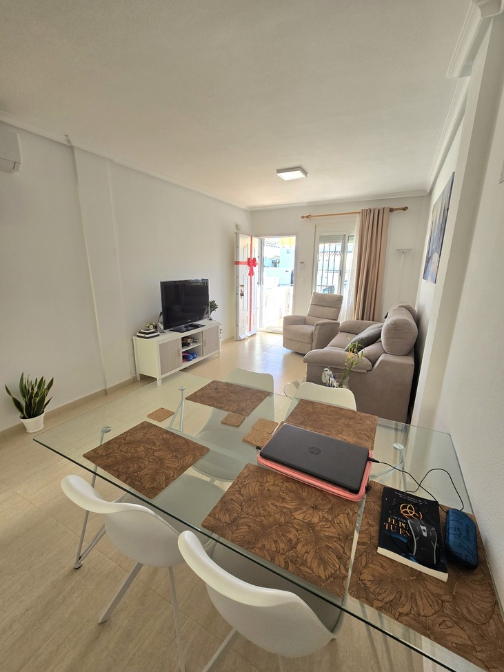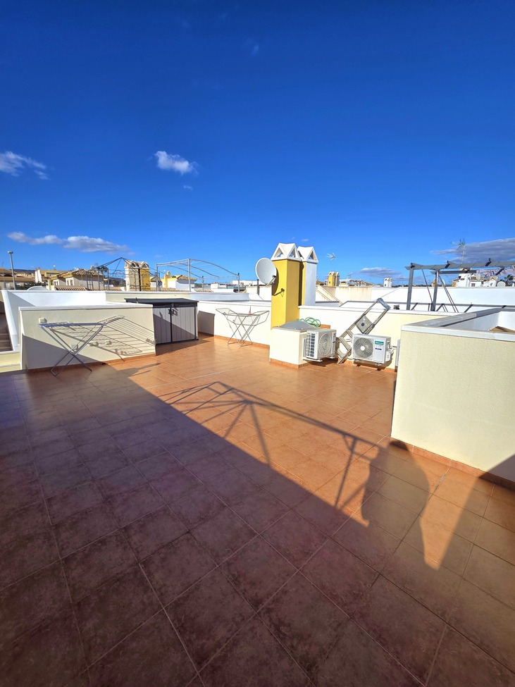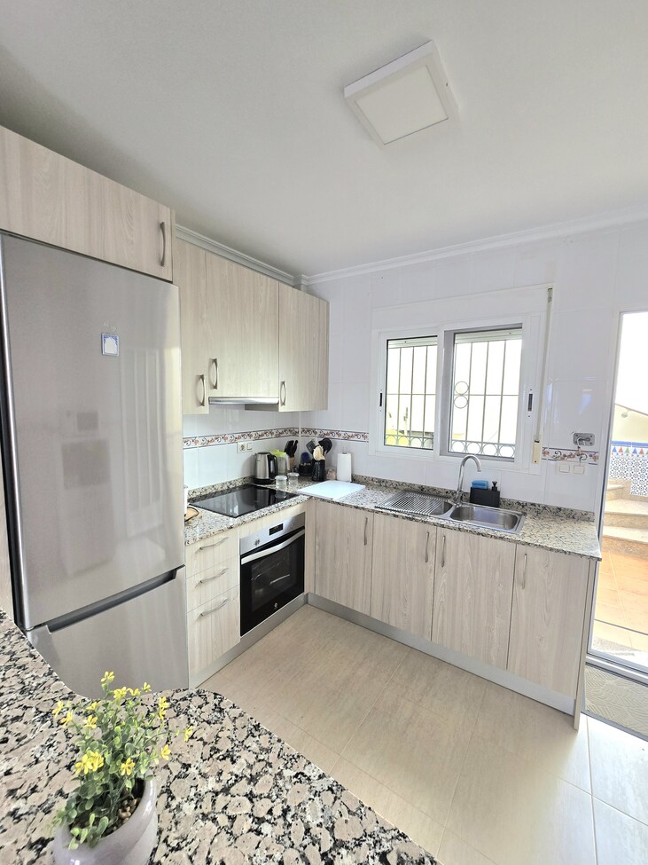 This is a beautiful bungalow SOUTH facing and fully furnished. Located in Sucina, a Spanish village with a supermarket, bars, restaurants, pharmacy ( walking distance ) at only 25 minutes from Murcia city and 15 minutes from the beach. You enter the property by a nice outside space always bathed with sun, then you enter a luminous living room with an open kitchen ( newly renovated).Then you have 2 double bedrooms ( one is now used as a music studio ) and a refurbished bathroom with shower.From the kitchen you access the patio with the washing machine and the stairs to the big solarium. The property benefits of air-conditioning hot & cold and mosquito nets in all the Windows. Sold fully furnished and equipped, here you just need to pack your suitcases and enjoy your new mediteranean life!
