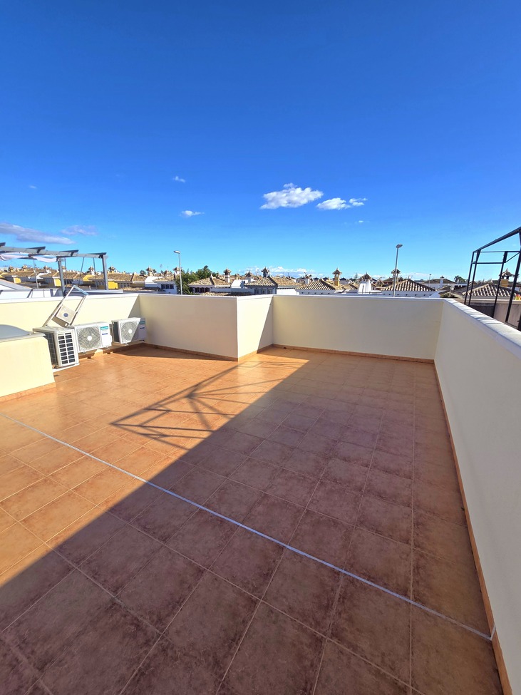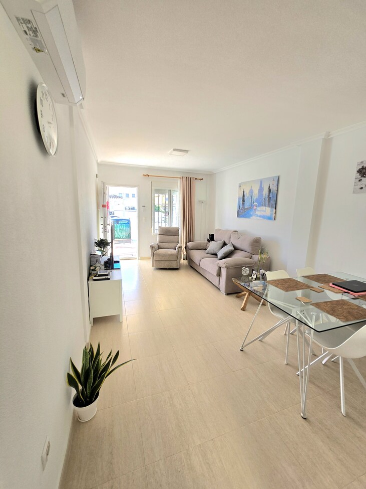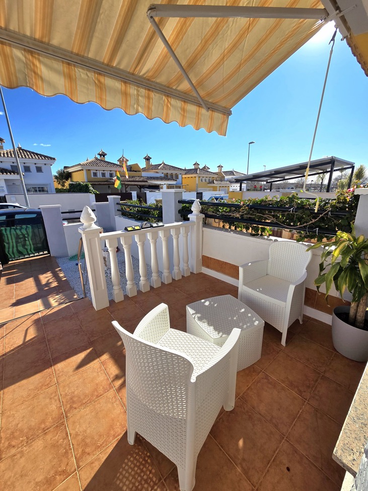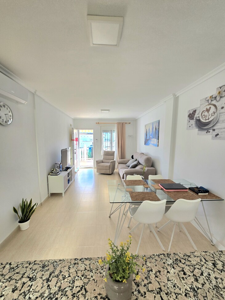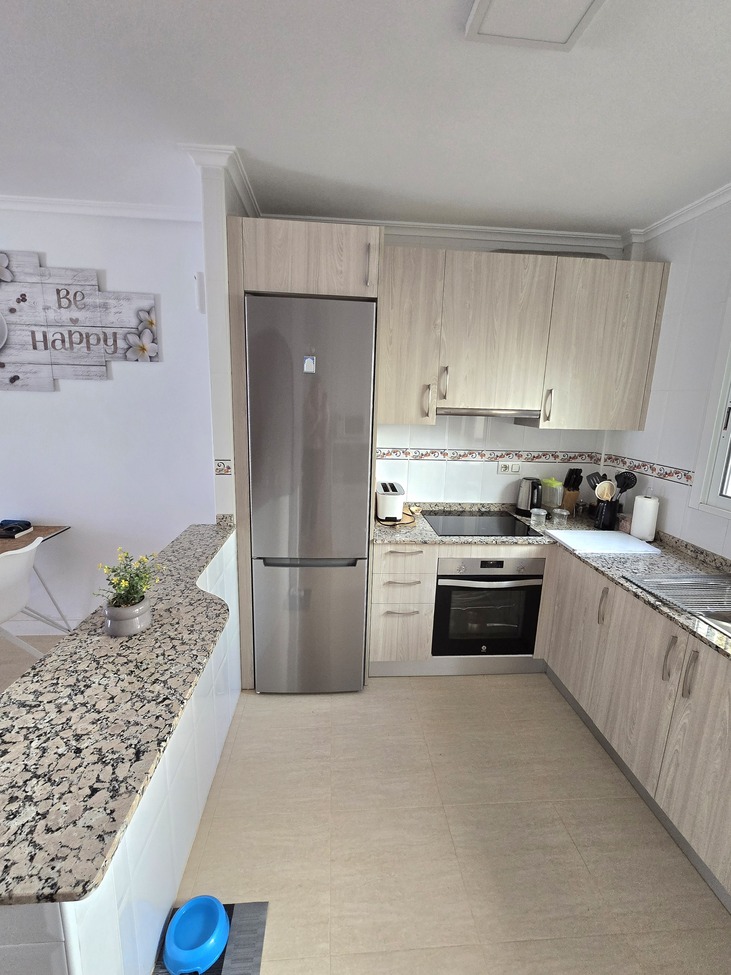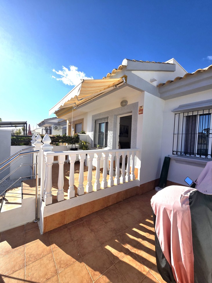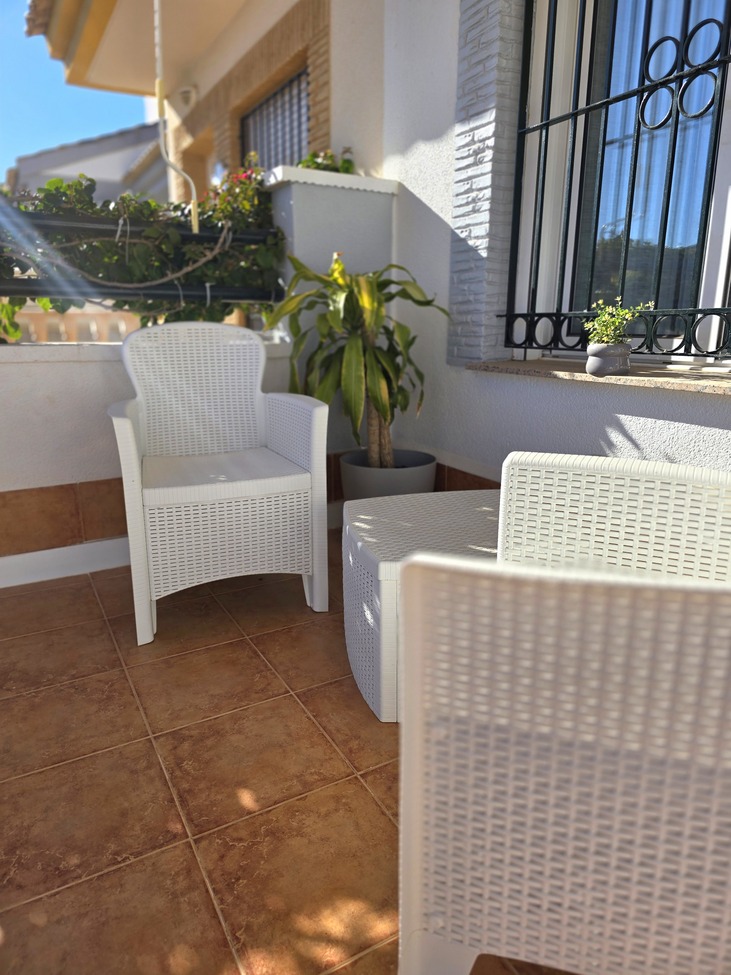 This is a beautiful bungalow SOUTH facing and fully furnished. Located in Sucina, a Spanish village with a supermarket, bars, restaurants, pharmacy ( walking distance ) at only 25 minutes from Murcia city and 15 minutes from the beach. You enter the property by a nice outside space always bathed with sun, then you enter a luminous living room with an open kitchen ( newly renovated).Then you have 2 double bedrooms ( one is now used as a music studio ) and a refurbished bathroom with shower.From the kitchen you access the patio with the washing machine and the stairs to the big solarium. The property benefits of air-conditioning hot & cold and mosquito nets in all the Windows. Sold fully furnished and equipped, here you just need to pack your suitcases and enjoy your new mediteranean life!