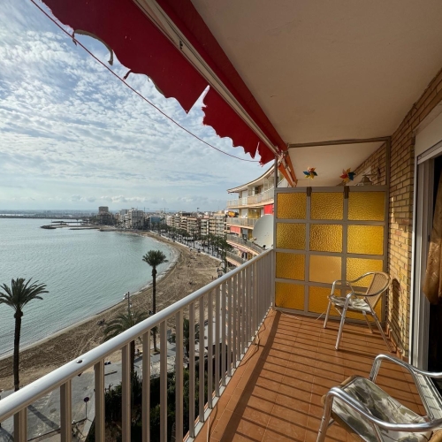 We present to you this ground-floor apartment located in Torrevieja just 160 meters from the beach, surrounded by all services such as restaurants, shops, pharmacies, etc. The property has 2 bedrooms and 2 bathrooms, a cozy living room with a blue sofa, television, and large windows that fill the space with natural light. The dining room with mustard-colored chairs connects to a modern kitchen fully equipped with high-end BOSCH appliances and black granite countertops. The two bedrooms are decorated with padded headboards, built-in wardrobes with mirrors, and quality bedding. The master bedroom provides direct access to a private patio with an outdoor shower surrounded by wood and a decorative wall made of artificial grass. Both bathrooms feature luxury ceramic finishes and marble-effect details, LED mirrors, and showers with glass screens. Fully furnished and ready to move in.Shall we schedule a visit? Contact us, we will be happy to.