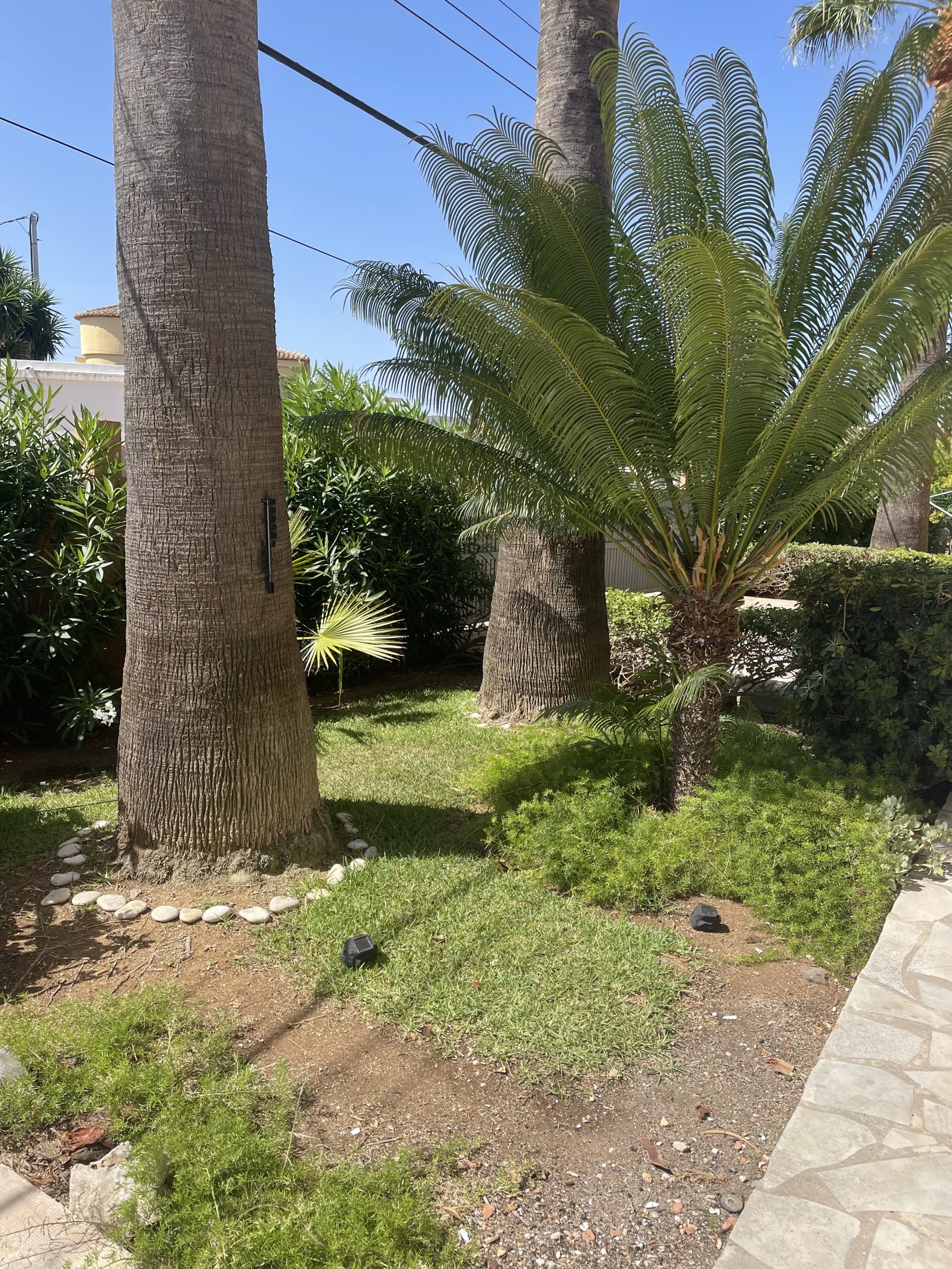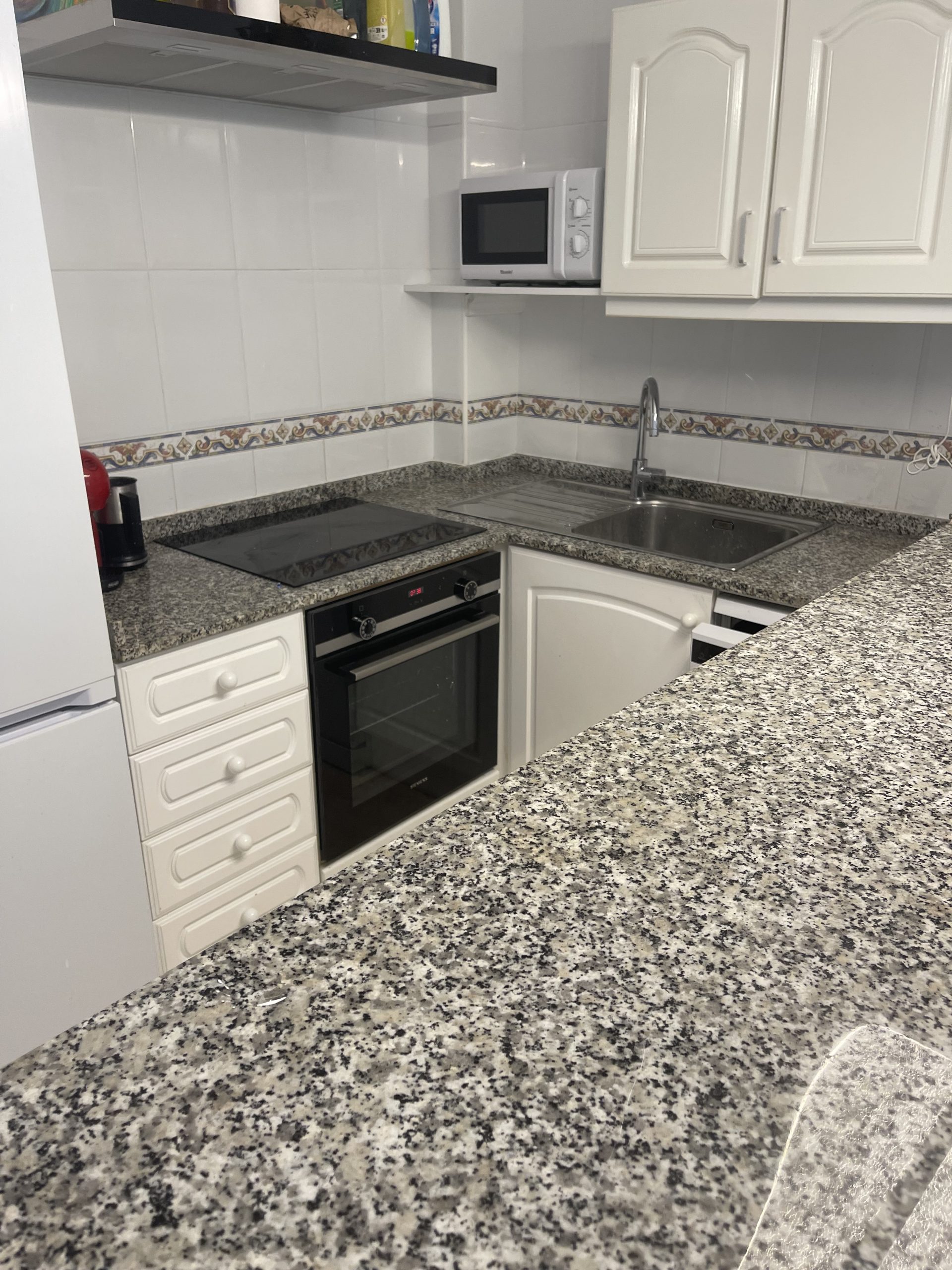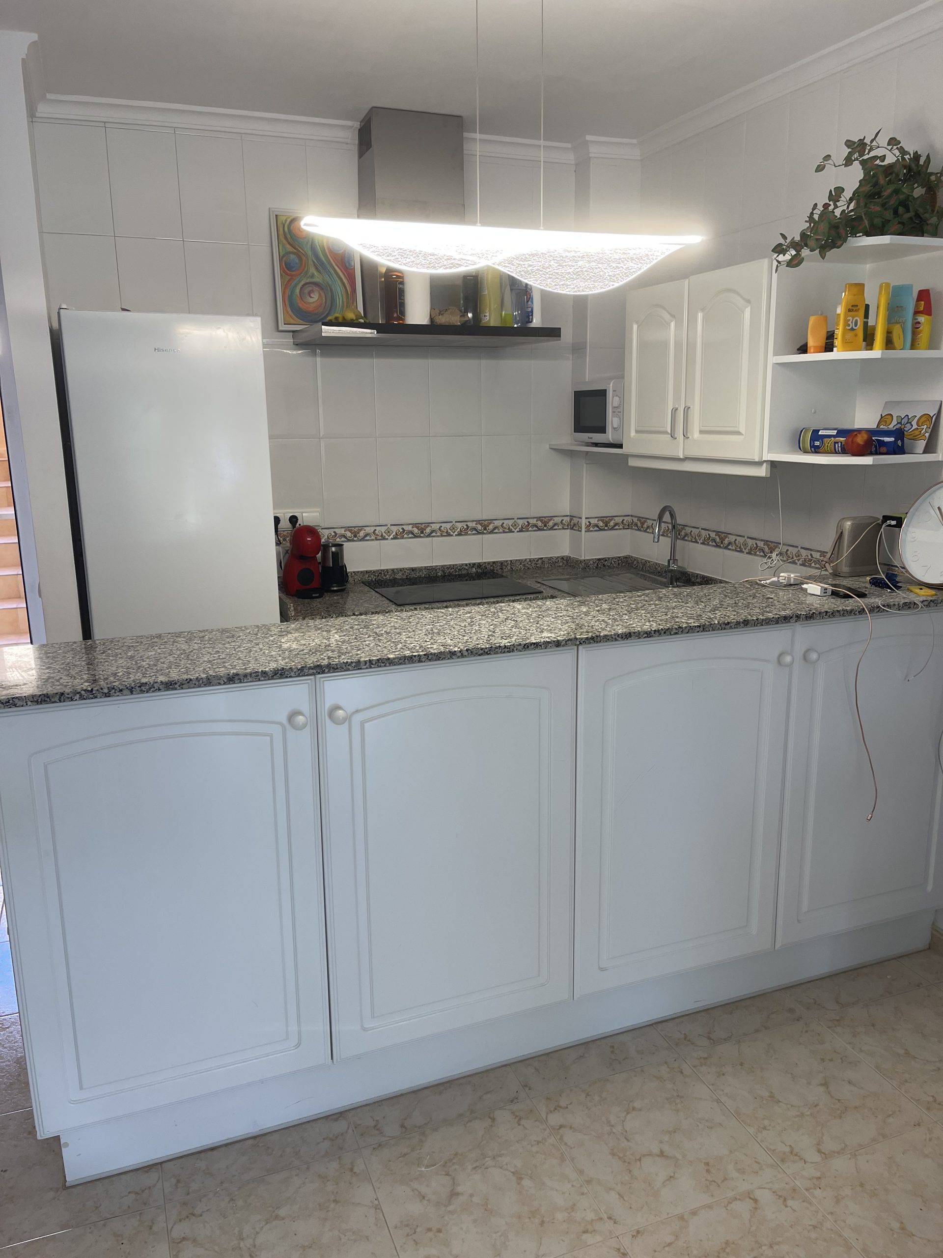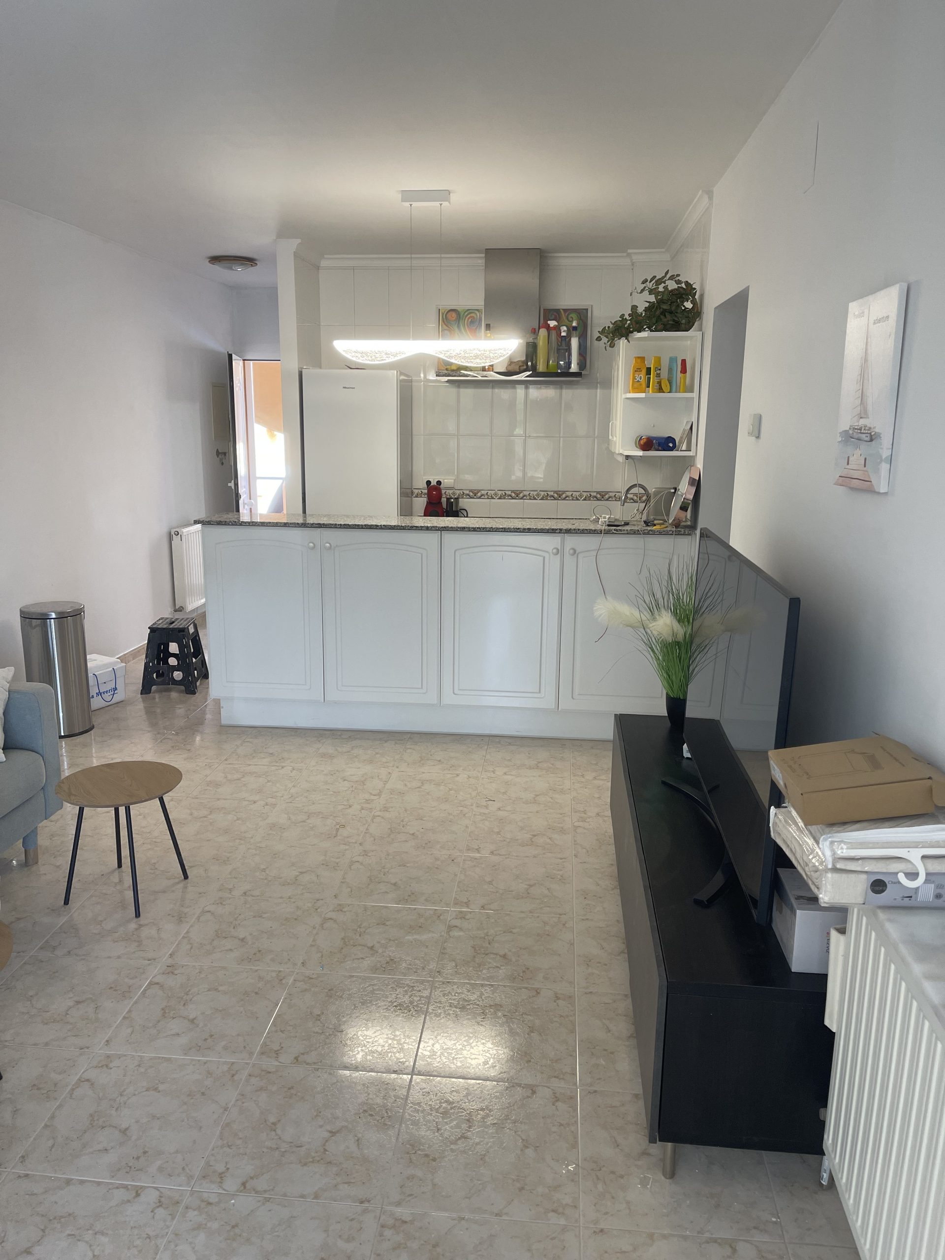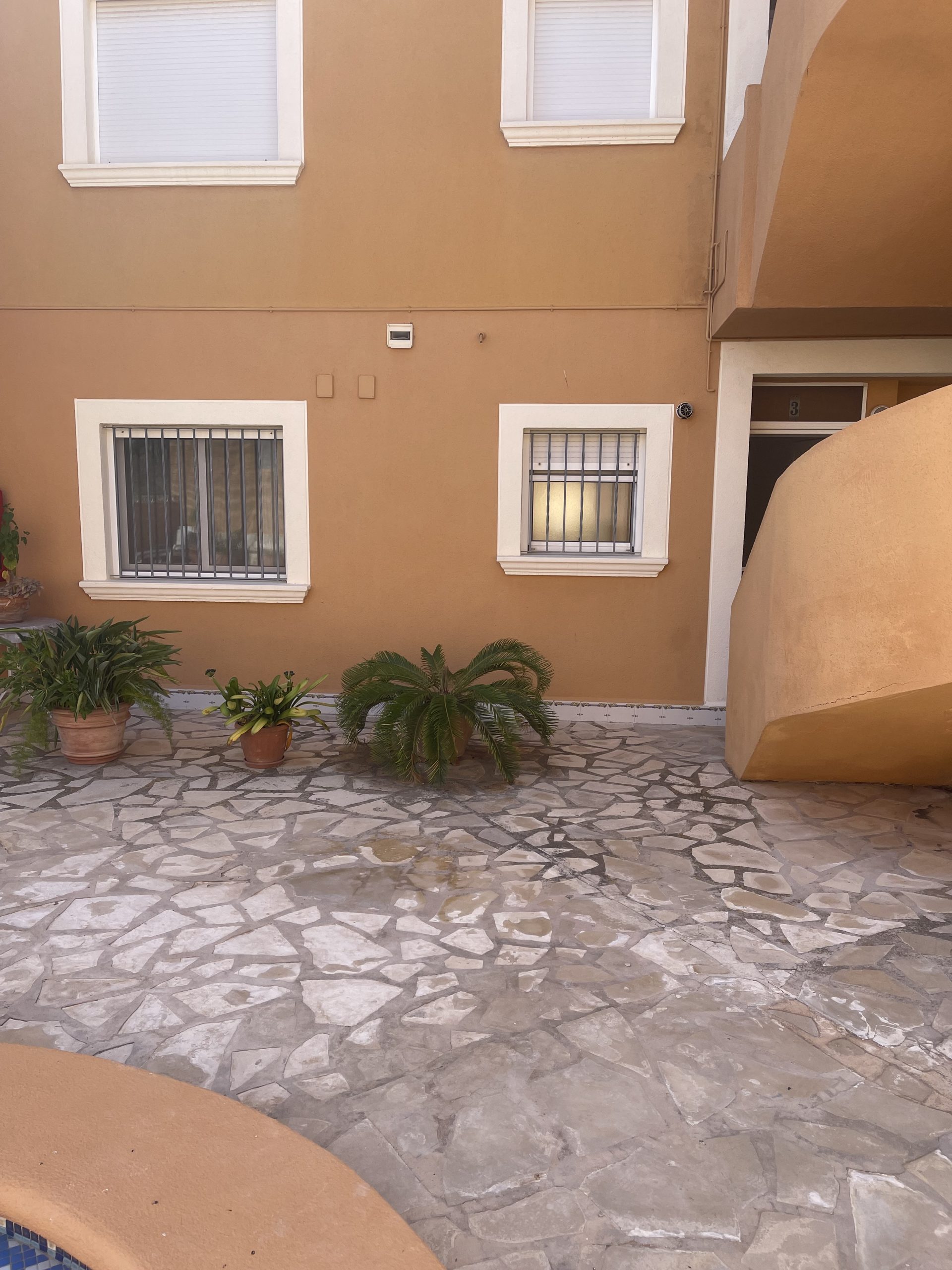 This bright and spacious apartment is located in a small urbanisation, only 10 mins from the beach and 2 minutes from supermarkets, restaurants etc. Ideal location for permanent living or enjoying the holiday season.One enters the property into the lush garden with palm trees and other lovely potted plants, from the garden one enters the covered naya which brings fantastic light into the apartment, to the left there are patio doors to the living room and to the right there are patio doors to the main double bedroom.The open plan living room is very spacious and bright and the modern kitchen has just been upgraded, with new ceramic hob, oven, over head extractor, dishwasher and light fittings.The bathroom also has been upgraded and now has a new sink and shower.The apartment also has a second bedroom, giving ample space for guests and the entire apartment has new air conditioning throughout.