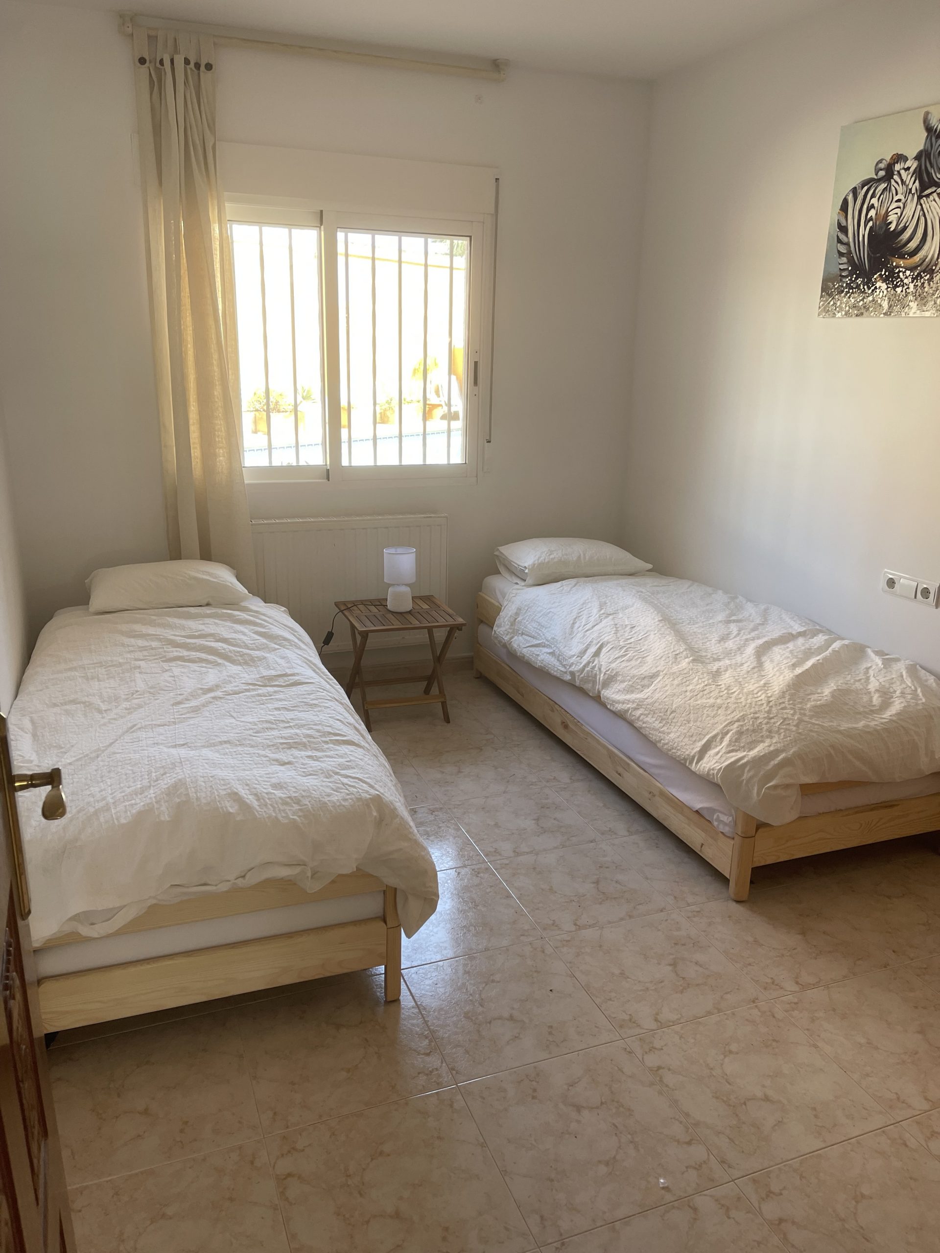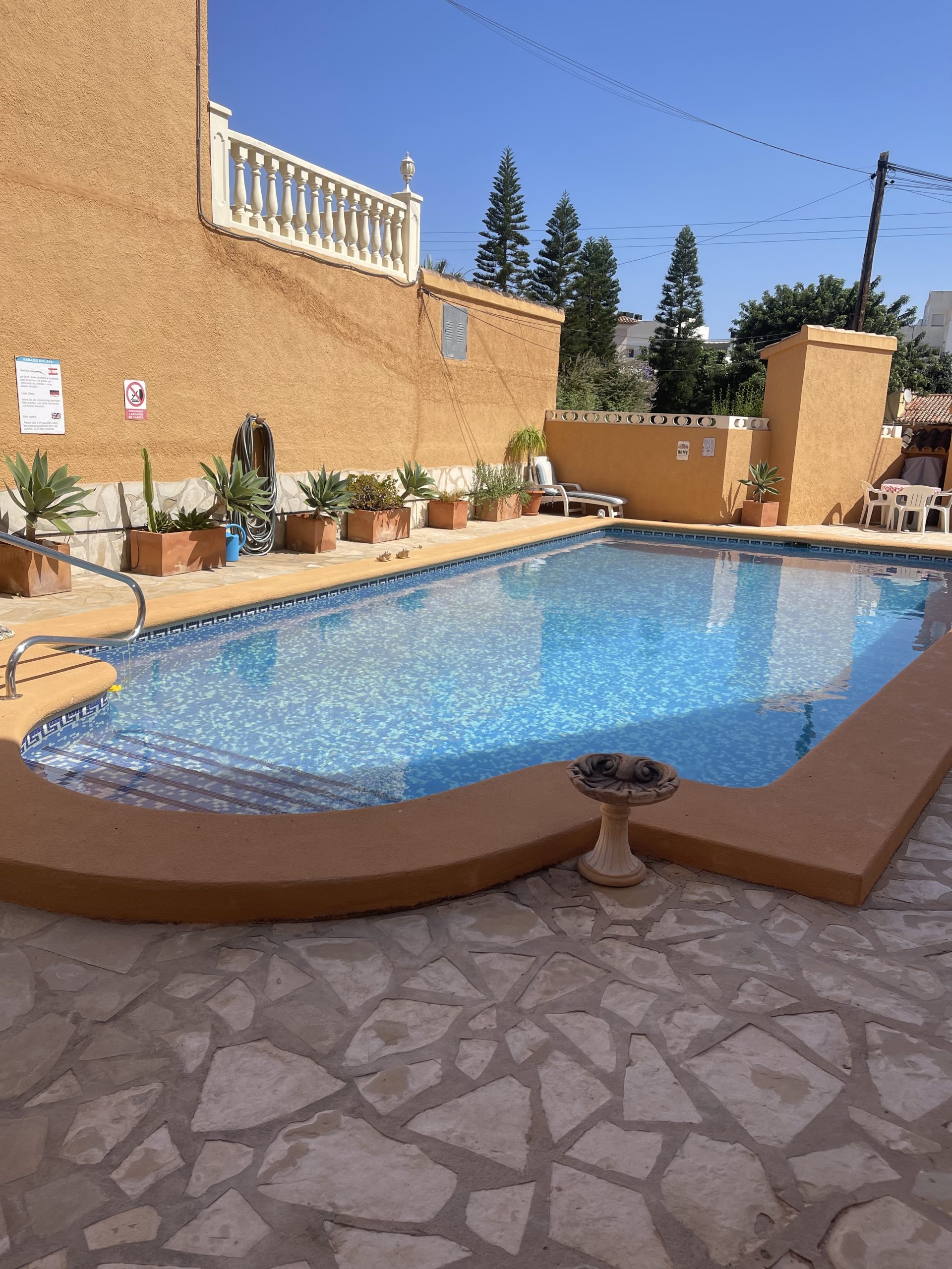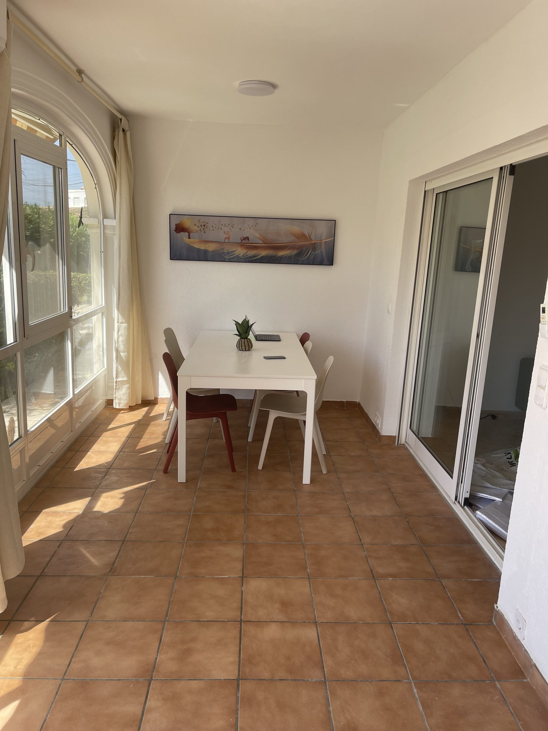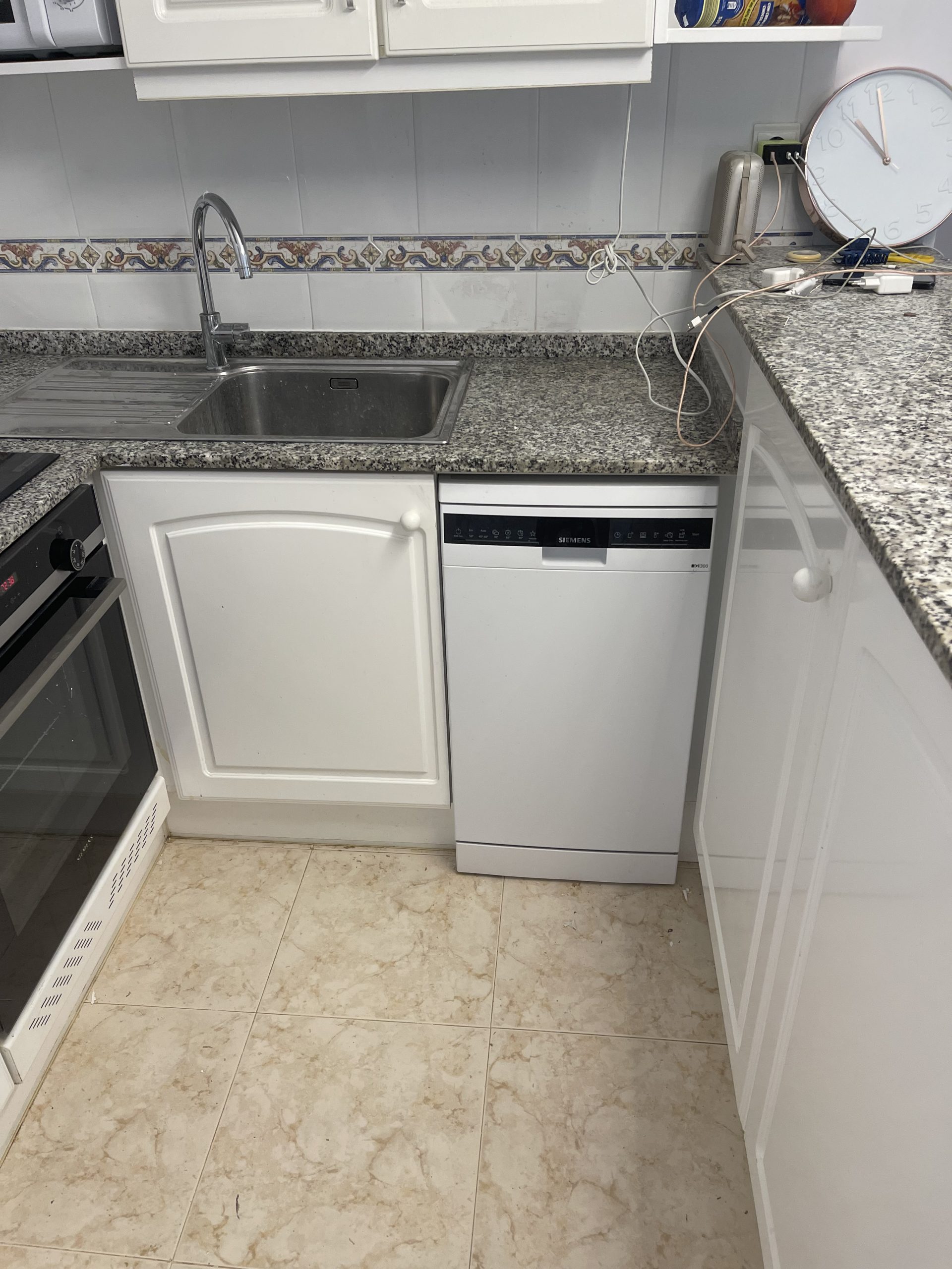 This bright and spacious apartment is located in a small urbanisation, only 10 mins from the beach and 2 minutes from supermarkets, restaurants etc. Ideal location for permanent living or enjoying the holiday season.One enters the property into the lush garden with palm trees and other lovely potted plants, from the garden one enters the covered naya which brings fantastic light into the apartment, to the left there are patio doors to the living room and to the right there are patio doors to the main double bedroom.The open plan living room is very spacious and bright and the modern kitchen has just been upgraded, with new ceramic hob, oven, over head extractor, dishwasher and light fittings.The bathroom also has been upgraded and now has a new sink and shower.The apartment also has a second bedroom, giving ample space for guests and the entire apartment has new air conditioning throughout.