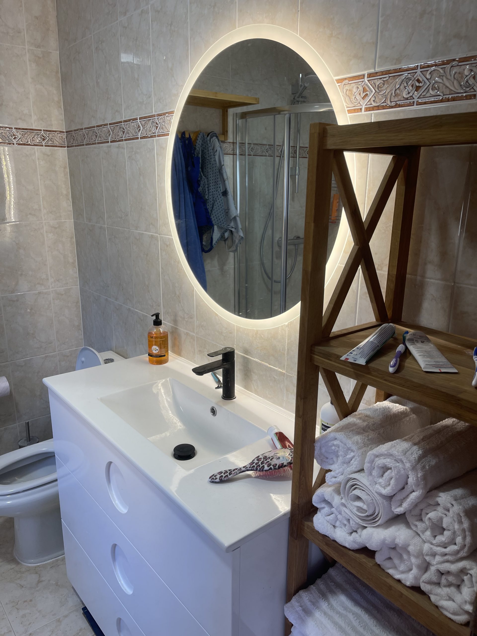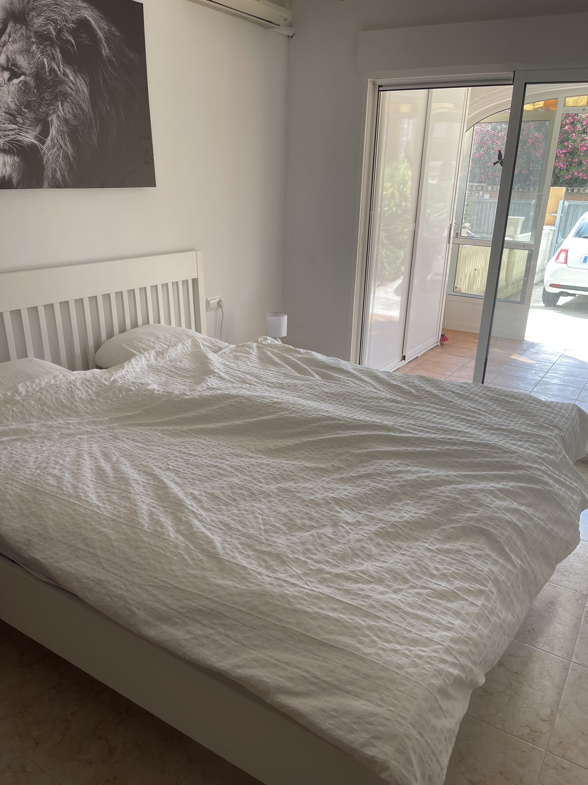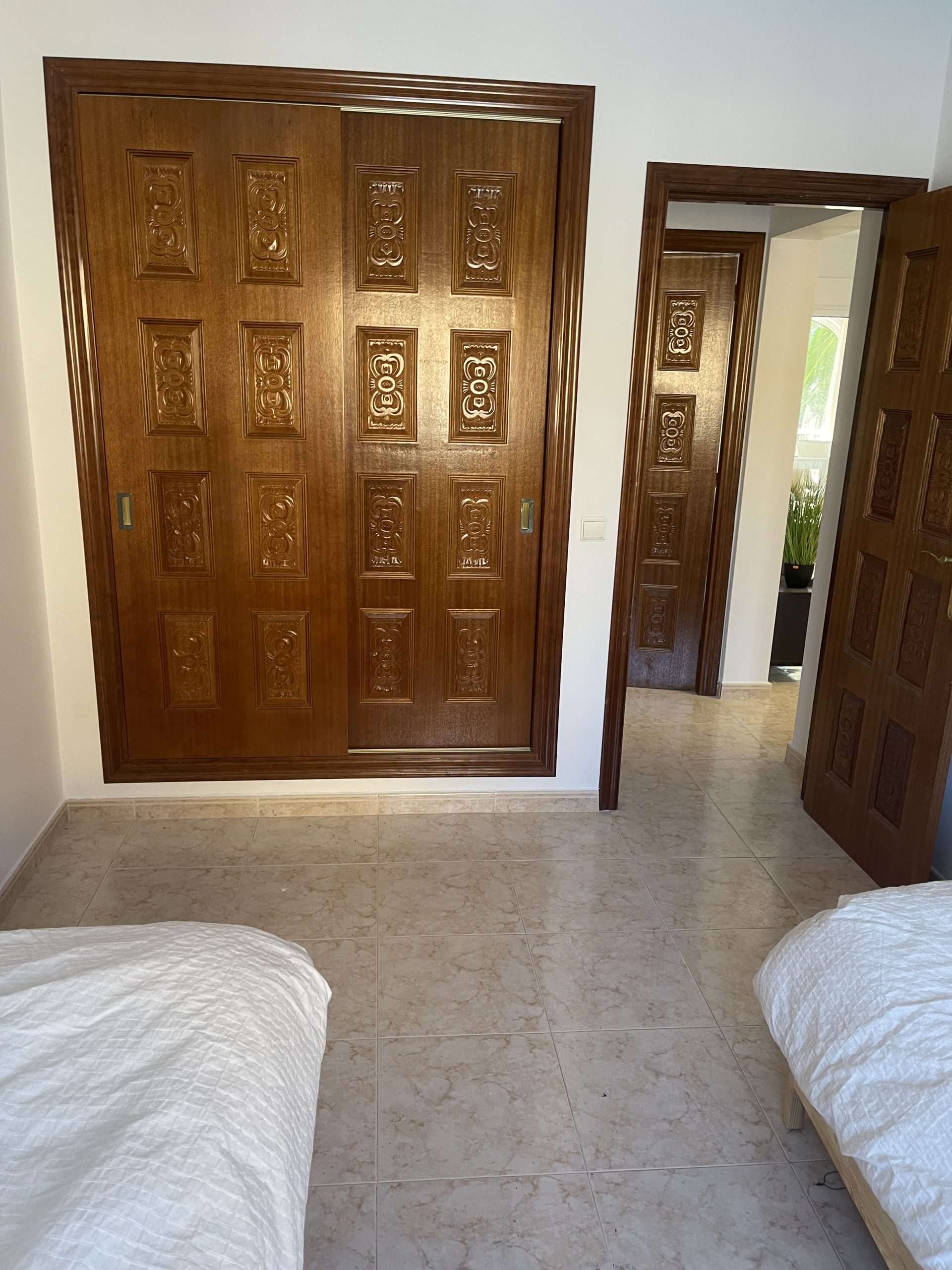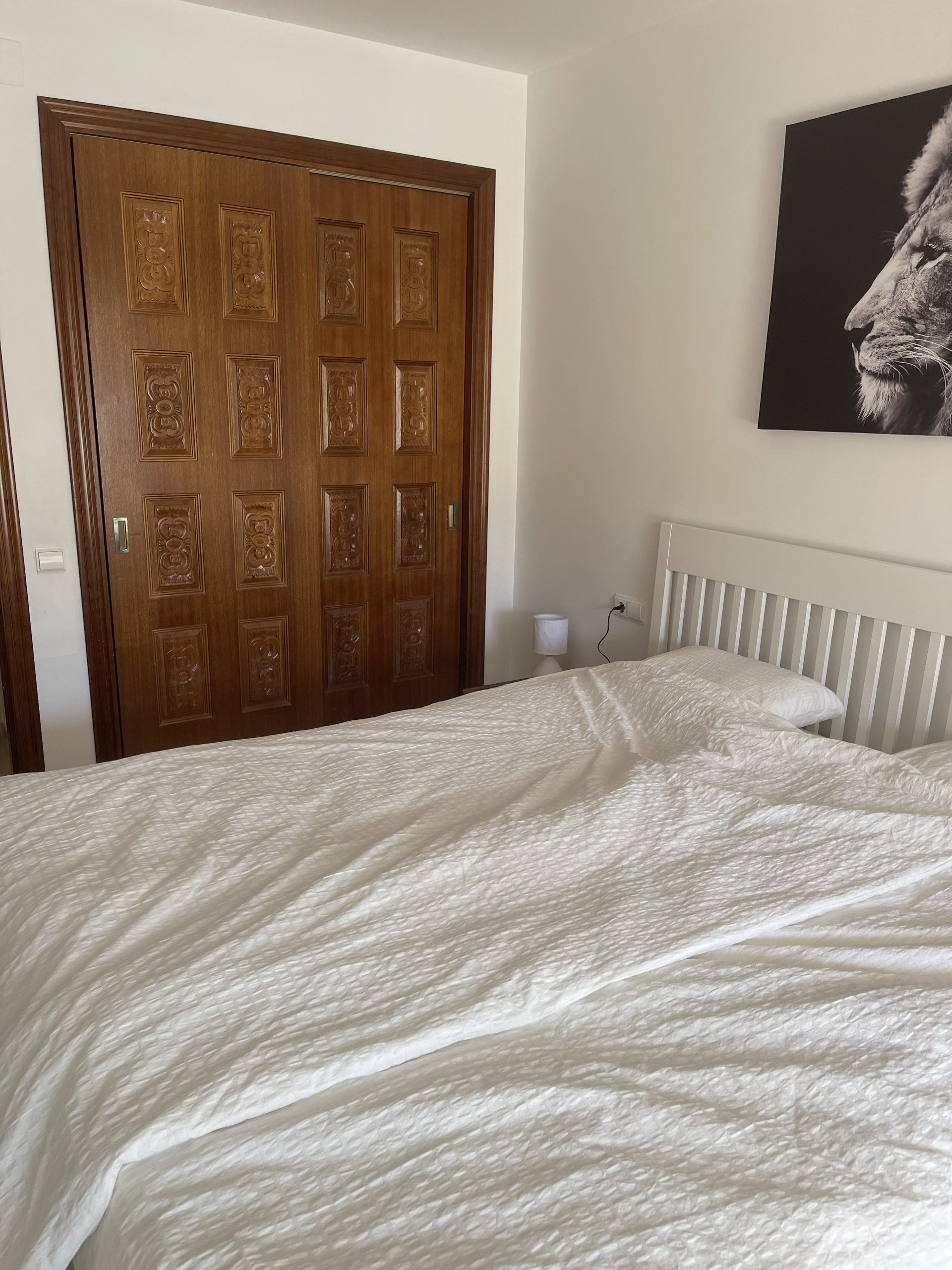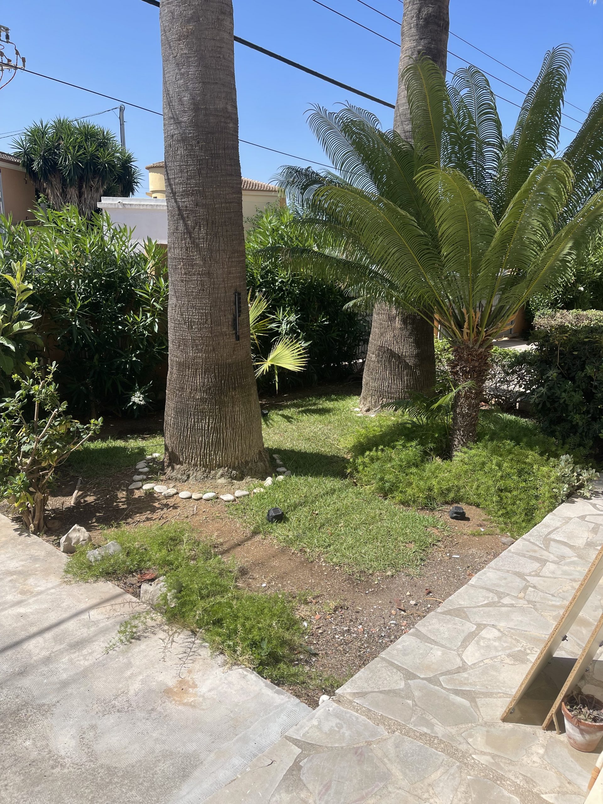 This bright and spacious apartment is located in a small urbanisation, only 10 mins from the beach and 2 minutes from supermarkets, restaurants etc. Ideal location for permanent living or enjoying the holiday season.One enters the property into the lush garden with palm trees and other lovely potted plants, from the garden one enters the covered naya which brings fantastic light into the apartment, to the left there are patio doors to the living room and to the right there are patio doors to the main double bedroom.The open plan living room is very spacious and bright and the modern kitchen has just been upgraded, with new ceramic hob, oven, over head extractor, dishwasher and light fittings.The bathroom also has been upgraded and now has a new sink and shower.The apartment also has a second bedroom, giving ample space for guests and the entire apartment has new air conditioning throughout.