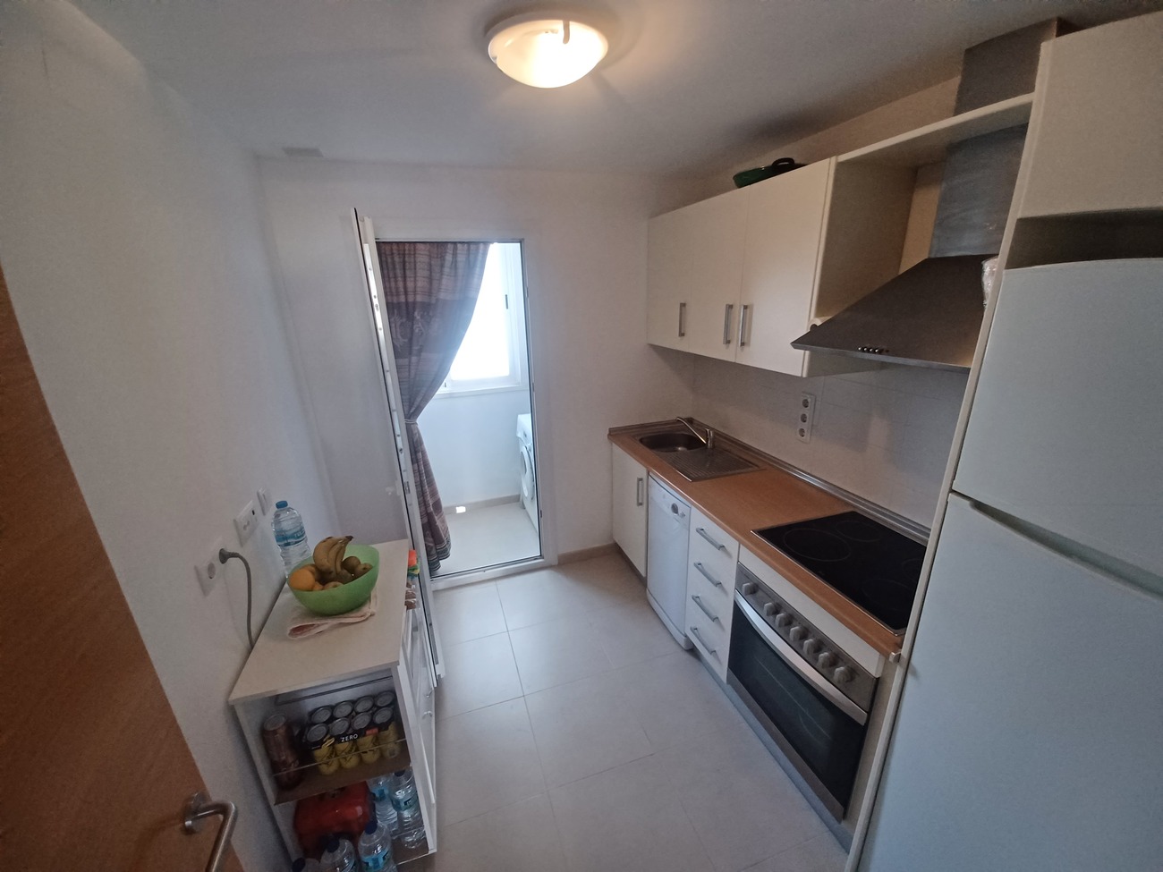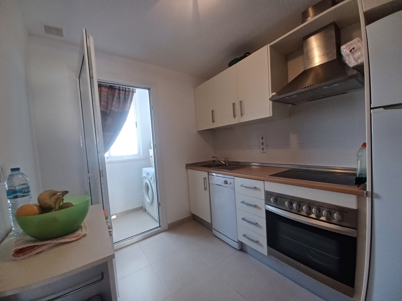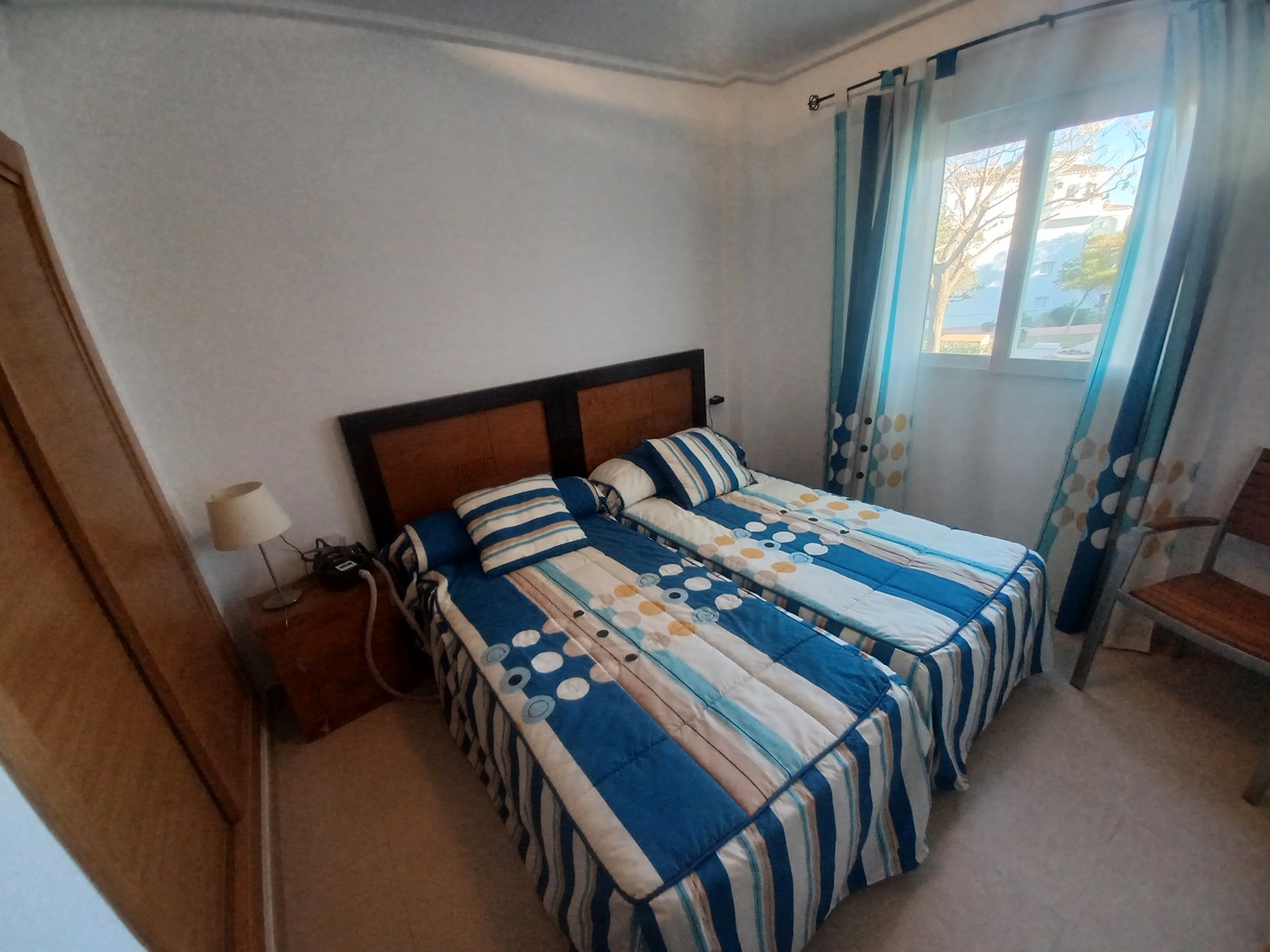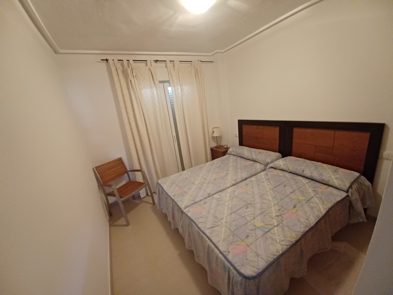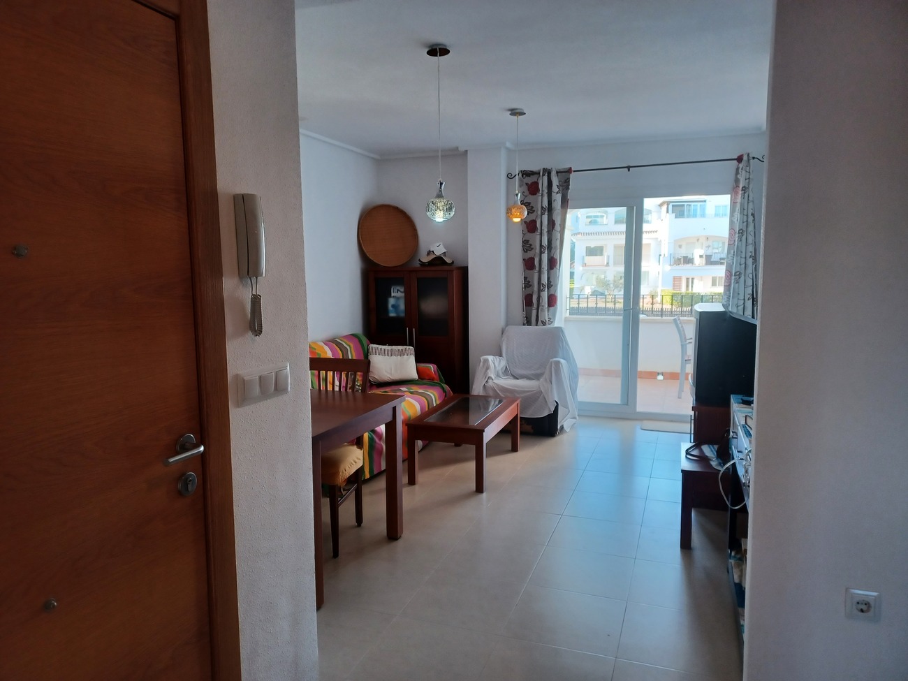 This stunning apartment has great views, plenty of natural light and built to a very high standard . The apartment is situated on the first floor, the main door of the apartment enters into a bright and airy living/dining room featuring storage units, sofas, coffee table and dining table and chairs, airconditioning and heating.  The living room has patio doors to lead to a large covered terrace featuring arches overlooking the swimming pool with golf views, it is a West facing terrace to enjoy the afternoon sunhine.  The main bedroom features a double bed and bedside tables, fitted wardrobe, air conditioning and heating, there are glass patio doors leading to the terrace.  The bathroom has a bathtub, vanity unit, wc and bidet.  The second bedroom is a twin room with window views to the garden, it also comes with fitted wardrobes and heating.  The kitchen has fitted kitchen units, oven, hob, extractor, fridge freezer and dishwasher, there is a separate utility room with the washing machine.  This apartment comes fully furnished, with underground parking in a resort with WIFI, satellite TV, gardens, pools, sports facilities, restaurant & supermarket, situated close to the village of Sucina and just 15 minutes drive to the airport and to the coast.