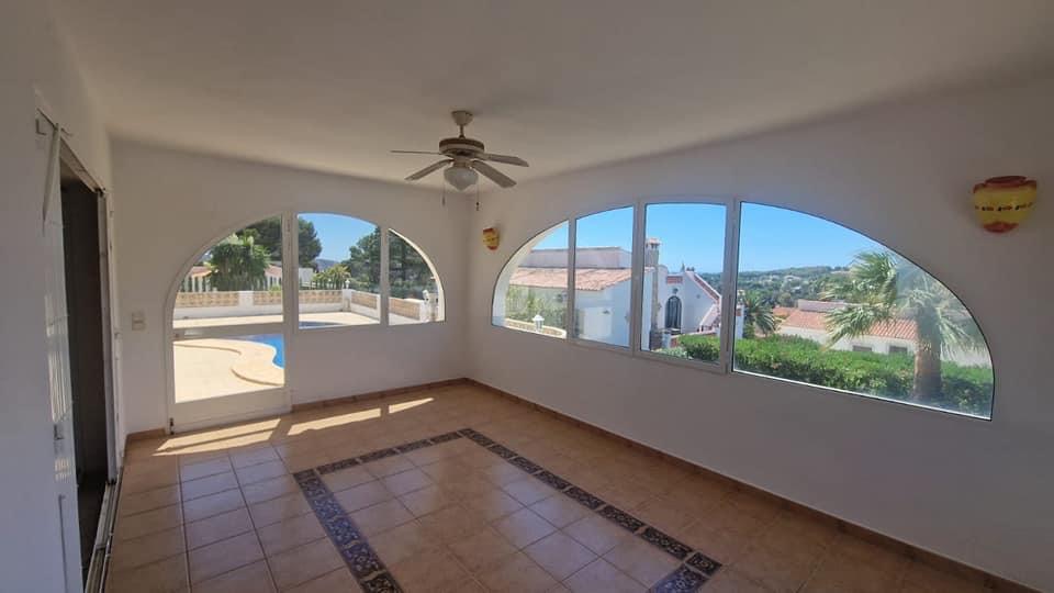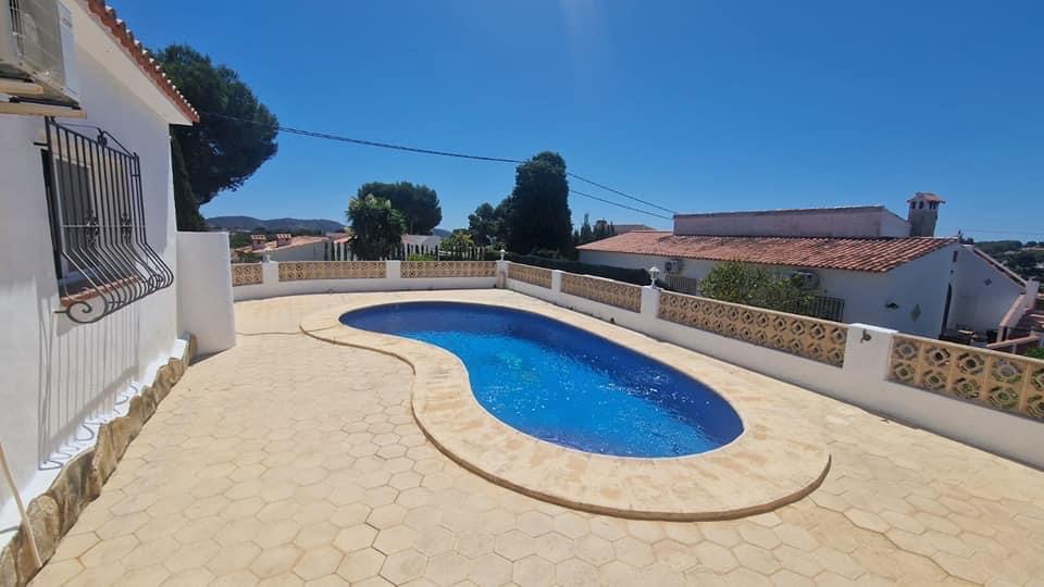 This lovely family villa, located in a quite and peaceful residential area only 20 minutes walk into the heart of Moraira.This traditional Spanish villa offers all the traditional benefits of this style of living. With a large covered naya providing an additional reception room, with excellent views out to the pool, this villa also has a spacious living room with an open fireplace, a separate galley kitchen with a laundry room, 3 double bedrooms, 2 bathrooms, one with a tub and lots of light in this south facing villa.Outside there is a large garden with plenty of off road parking and a kidney shaped pool and many terraces to enjoy al fresco dining.
