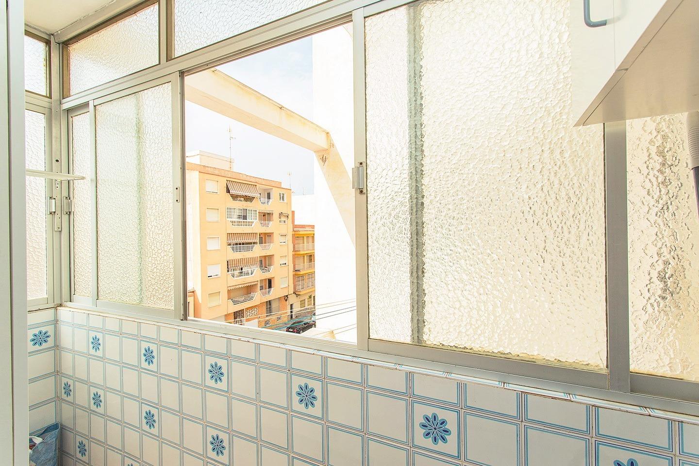 Till salu: rymlig och ljus lägenhet på 104 m² med 3 sovrum, 2 badrum och en funktionell planlösning. I mycket gott skick, fullt möblerad och inflyttningsklar. Med östlig orientering och luftkonditionering erbjuder den komfort året runt. Belägen endast 250 meter från Playa del Cura, i ett av Torreviejas mest eftertraktade områden, nära strandpromenaden, affärer, restauranger och all service. Perfekt som permanentbostad eller som investering för semesteruthyrning med hög avkastning tack vare det stora turistflödet året om.
