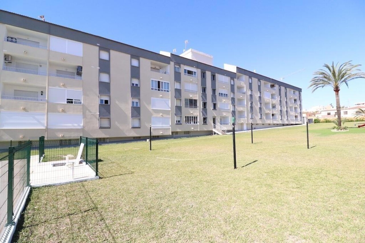 We presents at the Costa Blanca Alicante an apartment with side sea view only 100m from the beach! Close to the city Torrevieja and 10min from comercial center La Zenia With  2bedrooms, kitchen independent, spacious livingroom, a bathroom and a terrace! The residence haves a big swimming pool, green zones and children play area! Walking distance to restaurants, bars and supermarket!