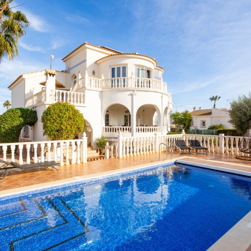 Denna nyrenoverade fristående villa i det fridfulla bostadsområdet El Chaparral, Torrevieja, erbjuder en perfekt blandning av elegans, komfort och effektivitet. Den är tillverkad av förstklassiga material och har tre rymliga sovrum med inbyggda garderober och två eleganta badrum, inklusive ett lyxigt badrum. Båda badrummen har eleganta duschkabiner och golvvärme. Hjärtat i villan är ett ljust vardagsrum med öppen planlösning som är sömlöst anslutet till ett fullt utrustat modernt kök. Detta inbjudande utrymme vetter mot en täckt terrass med utsikt över en privat pool med utomhusdusch, perfekt för att njuta av den soliga sydvästliga orienteringen.Villan är designad för komfort året runt och har elektriska persienner i vardagsrummet, luftkonditionering med kanal och energibesparande funktioner som solpaneler och en solvärmare. Fastigheten erbjuder också en elektrisk entrégrind, privat parkering, ett separat förråd och ett avancerat säkerhetssystem.El Chaparral är ett lugnt bostadsområde i utkanten av Torrevieja, omgivet av natur och nära de ikoniska saltvattensjöarna La Mata och Torrevieja. Denna plats är känd för sin familjevänliga atmosfär och erbjuder ett brett utbud av bekvämligheter och utmärkta transportförbindelser. De vackra stränderna i Torrevieja och Guardamar ligger bara en kort bilresa bort.Denna villa är idealisk för både året runt boende och oförglömliga semestrar, och erbjuder avskildhet, bekvämlighet och en avslappnad livsstil av hög kvalitet i en pittoresk miljö.