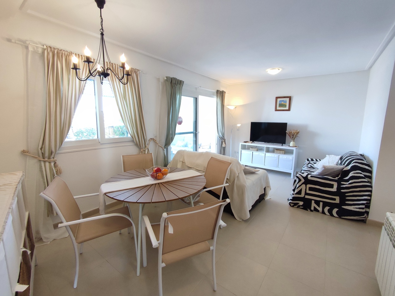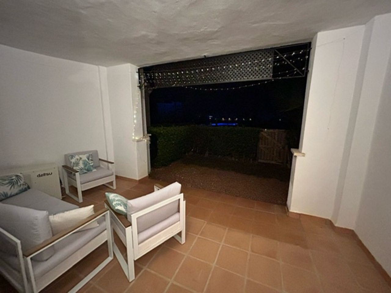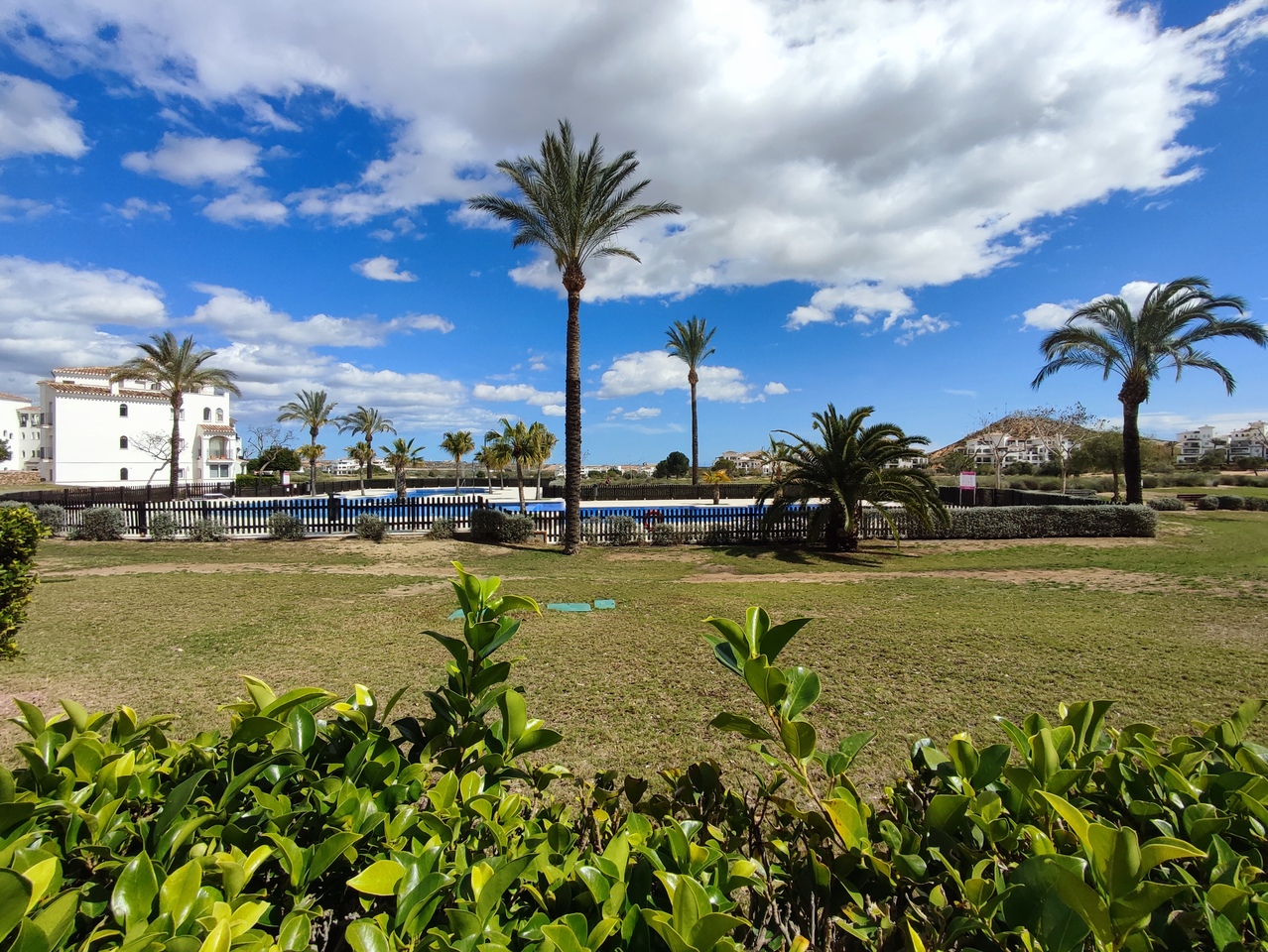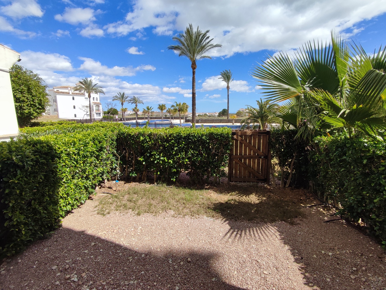 Welcome to this beautiful ground floor apartment sold fully furnished.It consists of a lounge and dining area , 2 double bedrooms with built in wardrobes, kitchen and the largest bathroom sizes complete with bath and shower screen,outside there is a large tiled covered terrace that over looks the largest pool on the resort. The garden area consists of part gravel ,part grass with Bougainville, jasmine and a small lemon tree.The apartment has had a number of upgrades and added extras,  The kitchen has recently been upgraded and comes with new appliances (washing machine,dishwasher, electic hob and oven. The apartment also has new air conditioning units fitted throughtout and also has ceiling fans in the bedrooms. Mosiquitto nets have also been fitted.The first thing that impresses you about Hacienda Riquelme Golf Resort is the wide-open spaces, the extensive gardens and the low-density construction, which create a relaxing environment to enjoy a very safe and peaceful life or holiday. The apartments are set out spaciously around the magnificent and challenging 18 hole golf course part of the Jack Nicklaus Golf Trail.All apartments have unlimited internet, air-conditioning for summer and heating for winter, private underground parking space and a communal lift.In the heart of the resort you will find the beautiful renovated Hacienda where you will find a supermarket, clubhouse, restaurant and bar. The inner court yard becomes the hive of entertainment in the Summer, whilst the large terrace set in the stunning gardens is open all year for “al fesco” dining and drinking.Facilities:Gated Community.24 hour security."El Cason" Bar, Restaurant, Clubhouse. "Sips" Coffee ShopSupermarket.Summer Entertainment.19 large community swimming pools.Communal gardens.Trees, 5 lakes.Wild flowers & local wildlife.Driving range & Golf ShopTennis courts.Paddle tennis courts.Football / Basketball court.Outside gym area.Children's play areas.Hacienda Riquelme is very well connected by the main motorways. Murcia Airport (20 mins)Mar Menor beaches (15 mins)Mediterranean beaches (20 mins)For those who like historical buildings, architecture or a desire to shop, the lovely cities of Murcia and Cartagena provide plenty of entertainment. Murcia (30 mins)Cartagena (45 mins) Murcia Airport (20 mins)Near to the bustling popular village of Sucina with shops, restaurants, bars, chemist, supermarket and lots more (5 minutes)For more information on the apartments available please contact us.
