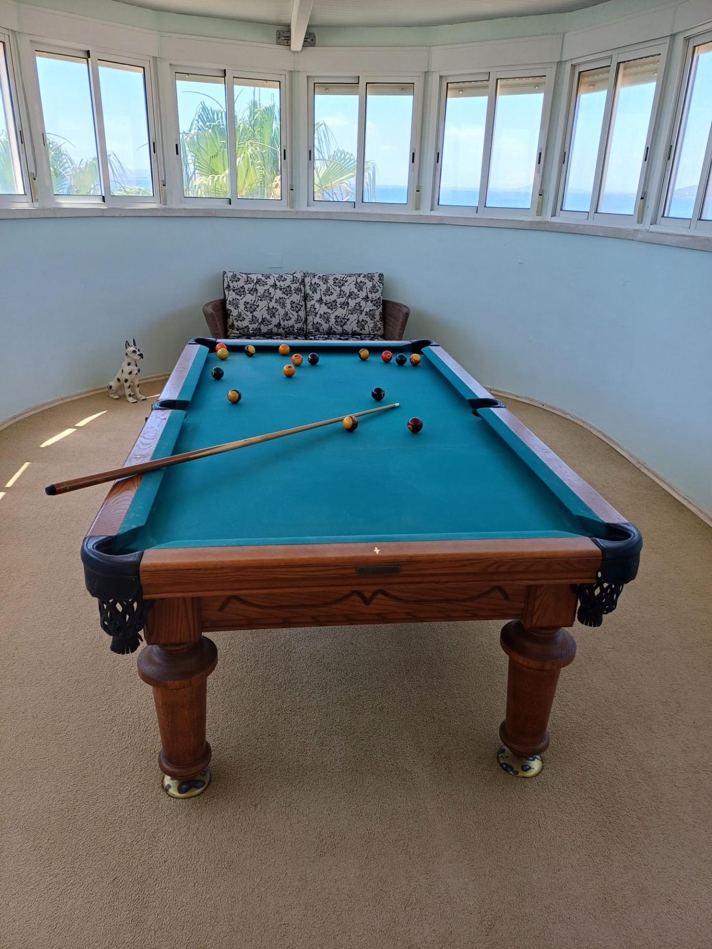Spain for living and relaxing. This three-story mansion, with a total area of 320 sq. m., features five bedrooms, a living room with a fireplace, a dining room, a kitchen, three bathrooms, a garage with automatic doors, and a terrace with panoramic views of the lagoon. There are three balconies, one with a summer kitchen. The third floor has a leisure area with panoramic windows. The property includes a pool with a protective cover, a second garage with windsurfing equipment, and parking. The house is move-in ready and conveniently located near local infrastructure.