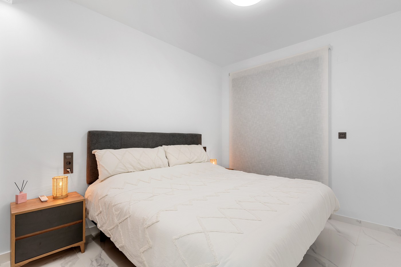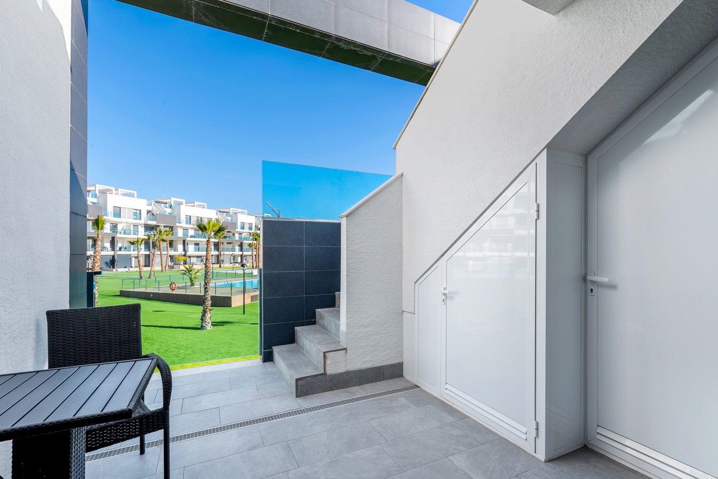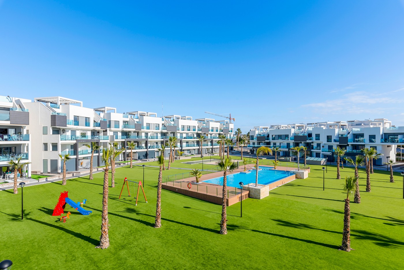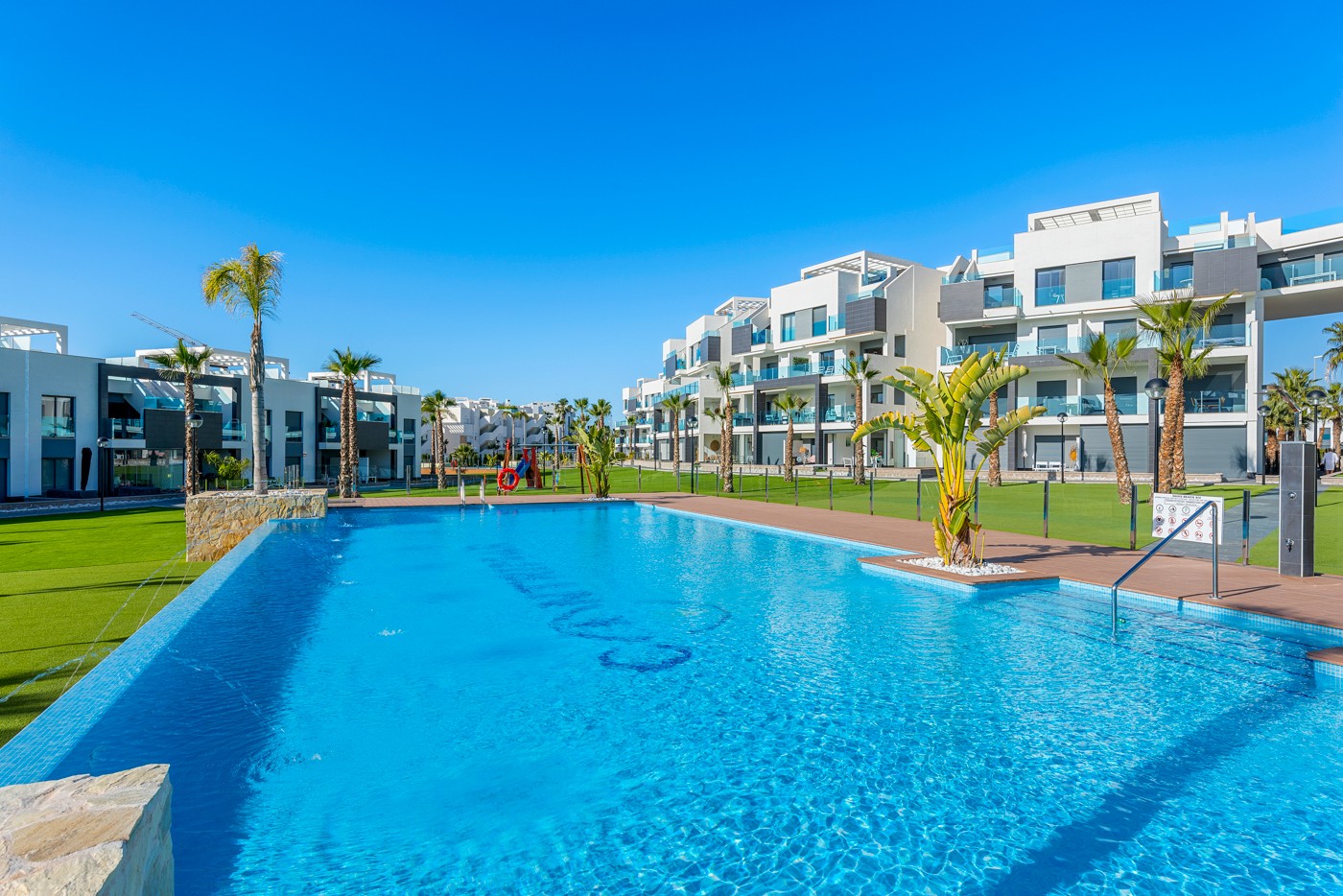 This stunning property is located in a modern residential complex in El Raso, Guardamar del Segura. The home features two bedrooms, two bathrooms, and a spacious open-plan living room with a kitchen. Situated on the top floor, it includes a private solarium with a canopy. The residential complex is designed for comfort and relaxation, offering amenities such as a large swimming pool, green areas, golf courses, a spa, a playground, fitness equipment, and sports facilities. The surroundings are green and tranquil, close to the salt lake and within walking distance of a commercial center, bars, and restaurants. El Raso is part of Guardamar del Segura, a town renowned for its natural beauty and extensive amenities. Guardamar is located on the Costa Blanca South and boasts eleven kilometers of natural beaches, surrounded by a large pine forest. The town features a harbor with year-round activities, a sports center with paddle tennis, tennis courts, football fields, and a heated pool that is accessible all year round. Additionally, there is a modern library where visitors can enjoy free Wi-Fi and computers. The strategic location of Guardamar del Segura, just twenty kilometers from Alicante - Elche Airport (El Altet), makes it an attractive destination. The airport offers daily connections to major European cities, contributing to the region's popularity among international buyers and tourists.