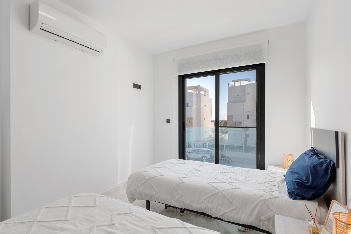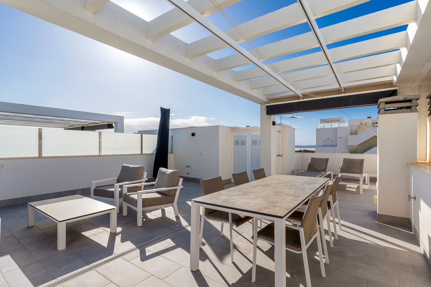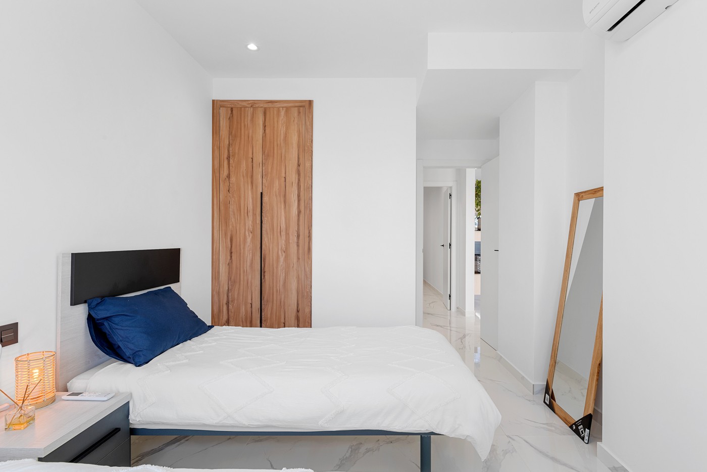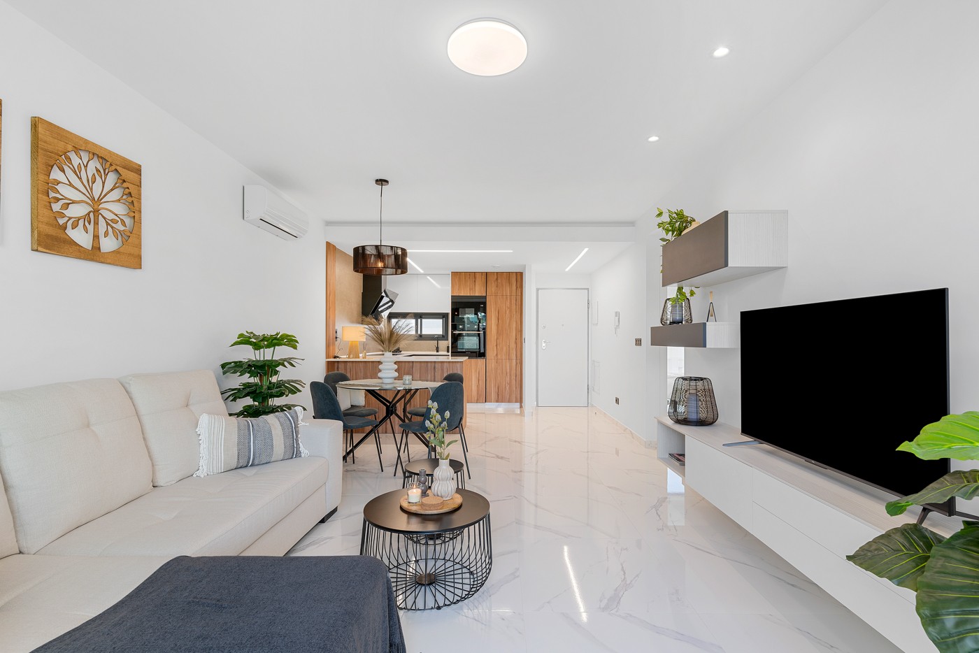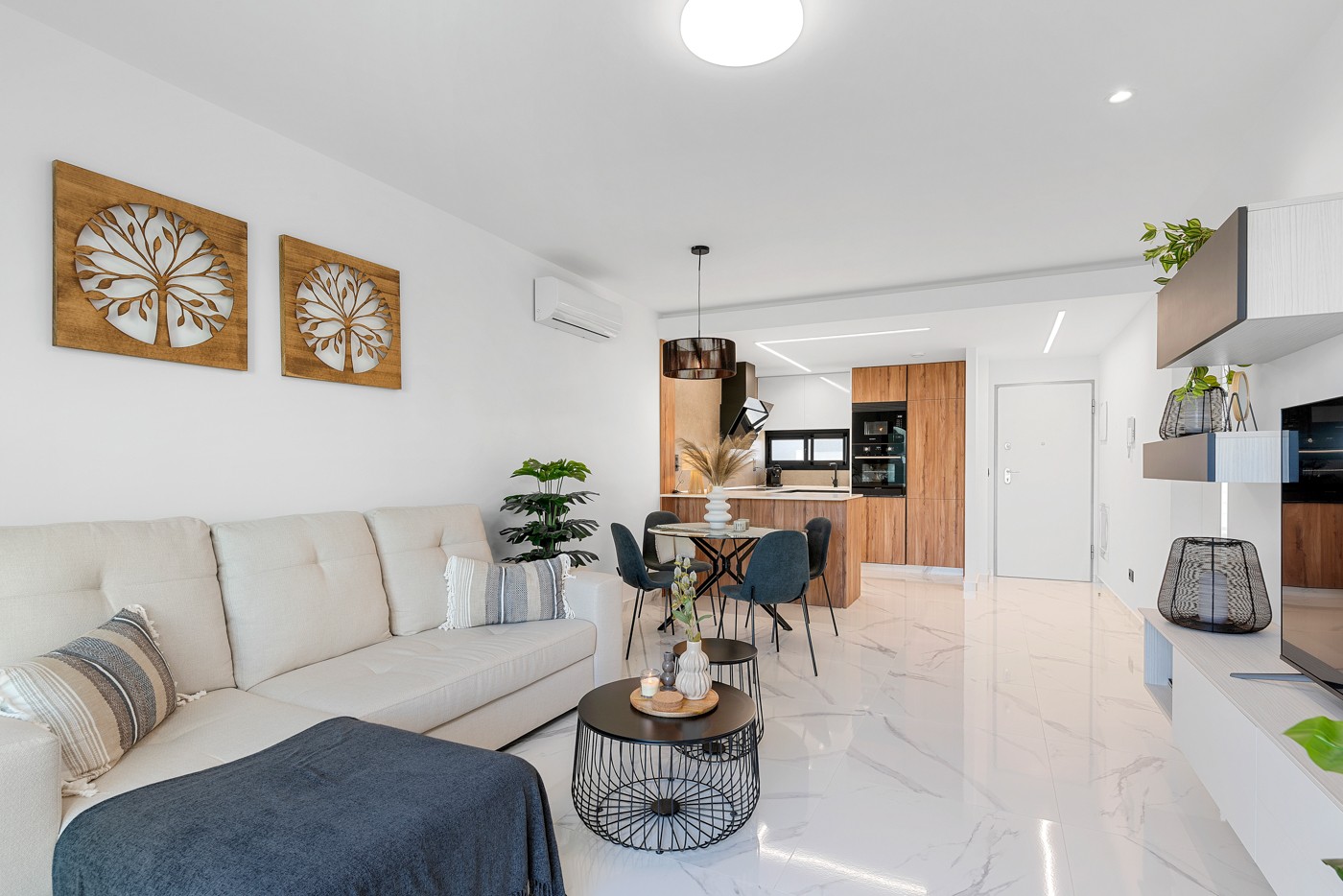 This stunning property is located in a modern residential complex in El Raso, Guardamar del Segura. The home features two bedrooms, two bathrooms, and a spacious open-plan living room with a kitchen. Situated on the top floor, it includes a private solarium with a canopy. The residential complex is designed for comfort and relaxation, offering amenities such as a large swimming pool, green areas, golf courses, a spa, a playground, fitness equipment, and sports facilities. The surroundings are green and tranquil, close to the salt lake and within walking distance of a commercial center, bars, and restaurants. El Raso is part of Guardamar del Segura, a town renowned for its natural beauty and extensive amenities. Guardamar is located on the Costa Blanca South and boasts eleven kilometers of natural beaches, surrounded by a large pine forest. The town features a harbor with year-round activities, a sports center with paddle tennis, tennis courts, football fields, and a heated pool that is accessible all year round. Additionally, there is a modern library where visitors can enjoy free Wi-Fi and computers. The strategic location of Guardamar del Segura, just twenty kilometers from Alicante - Elche Airport (El Altet), makes it an attractive destination. The airport offers daily connections to major European cities, contributing to the region's popularity among international buyers and tourists.