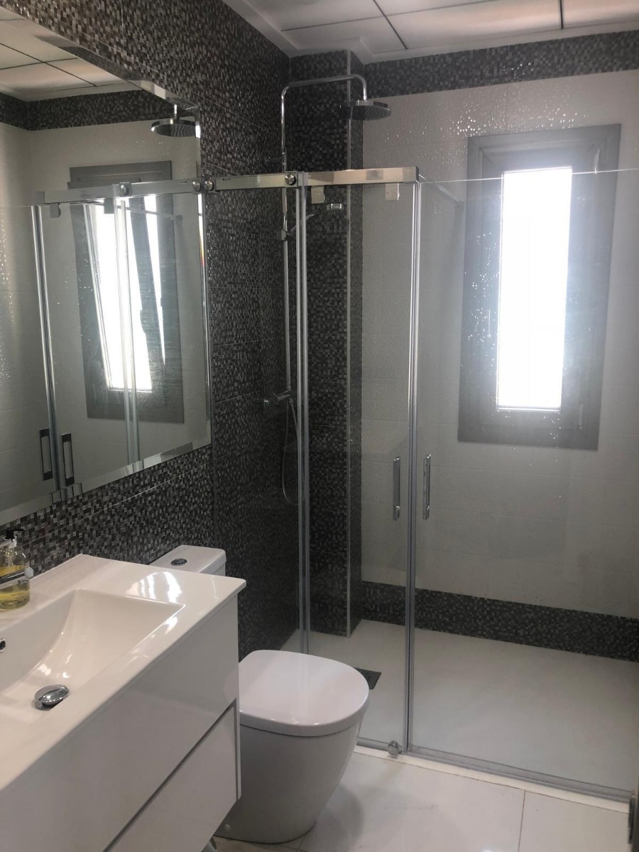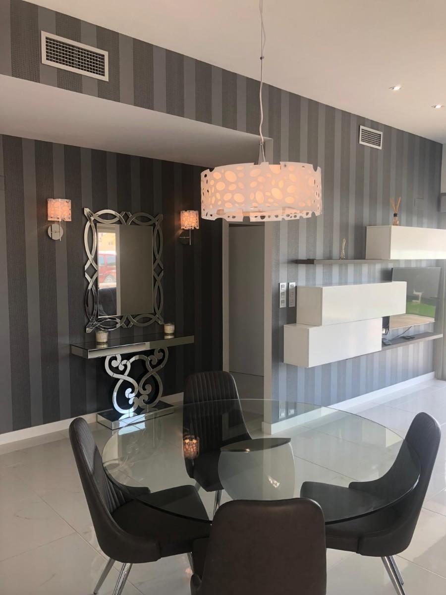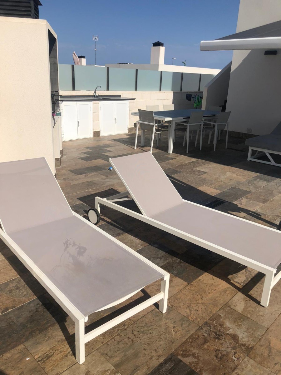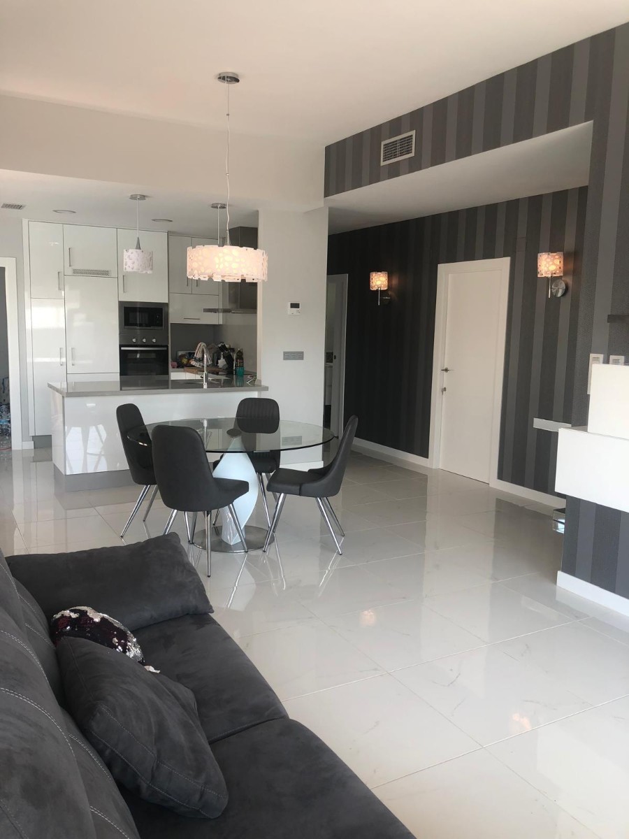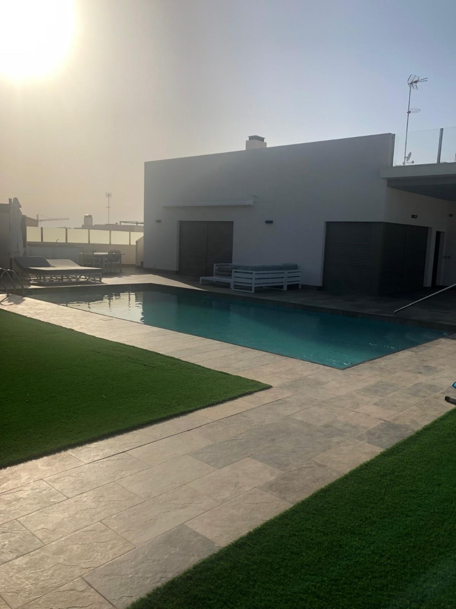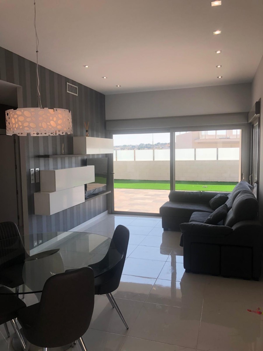Welcome to your dream home in Villamartin! This captivating 4-bedroom Innova villa, nestled in the Pau 8 area of Villamartin, epitomizes luxury living on a single level. Embrace the essence of opulence with a private swimming pool, expansive roof solarium, off-road parking, and a generously-sized L-shaped garden with covered terrace perfect for entertaining and unwinding. Step into a world of elegance with an open-plan lounge-dining area seamlessly connected to an American-style kitchen featuring top-notch built-in appliances, including a fridge-freezer and dishwasher. A separate utility room adds practicality to the sophisticated layout. The three bedrooms, adorned with ample fitted wardrobes, provide direct access to the garden, creating a seamless indoor-outdoor flow. Pamper yourself in the family bathroom, boasting a chic walk-in shower, while the master bedroom boasts an en-suite bathroom for an added touch of luxury. Revel in the abundance of natural light streaming through large windows, accentuating the spacious feel of the villa enhanced by high ceilings. Electric blinds add a modern touch, allowing you to effortlessly control the ambiance and privacy of each room. Indulge in year-round comfort with ducted hot and cold air-conditioning throughout the entire property, Additional convenience comes in the form of a discreet storage room at the rear of the villa. Ascend the external stairs to discover a colossal roof solarium spanning the entire footprint of the house. This impressive space features a seating area adorned with retractable awnings, offering a perfect spot to soak in the Spanish sunshine! Situated just 1km from an ALDI supermarket and the Via Park commercial centre, this villa ensures convenience at your fingertips. Enjoy a diverse range of bars and restaurants within reach, while the renowned Villamartin Plaza and golf course are just a few minutes' drive away. Seize the opportunity to elevate your lifestyle in this exceptional villa, where every detail exudes sophistication and comfort. Your dream home awaits!