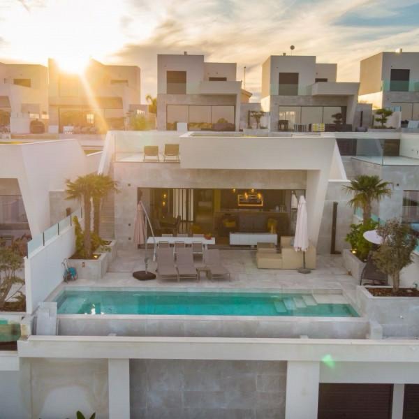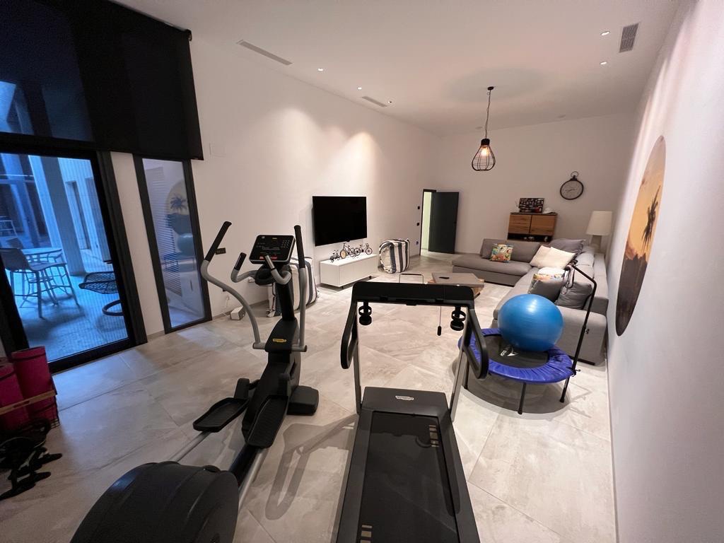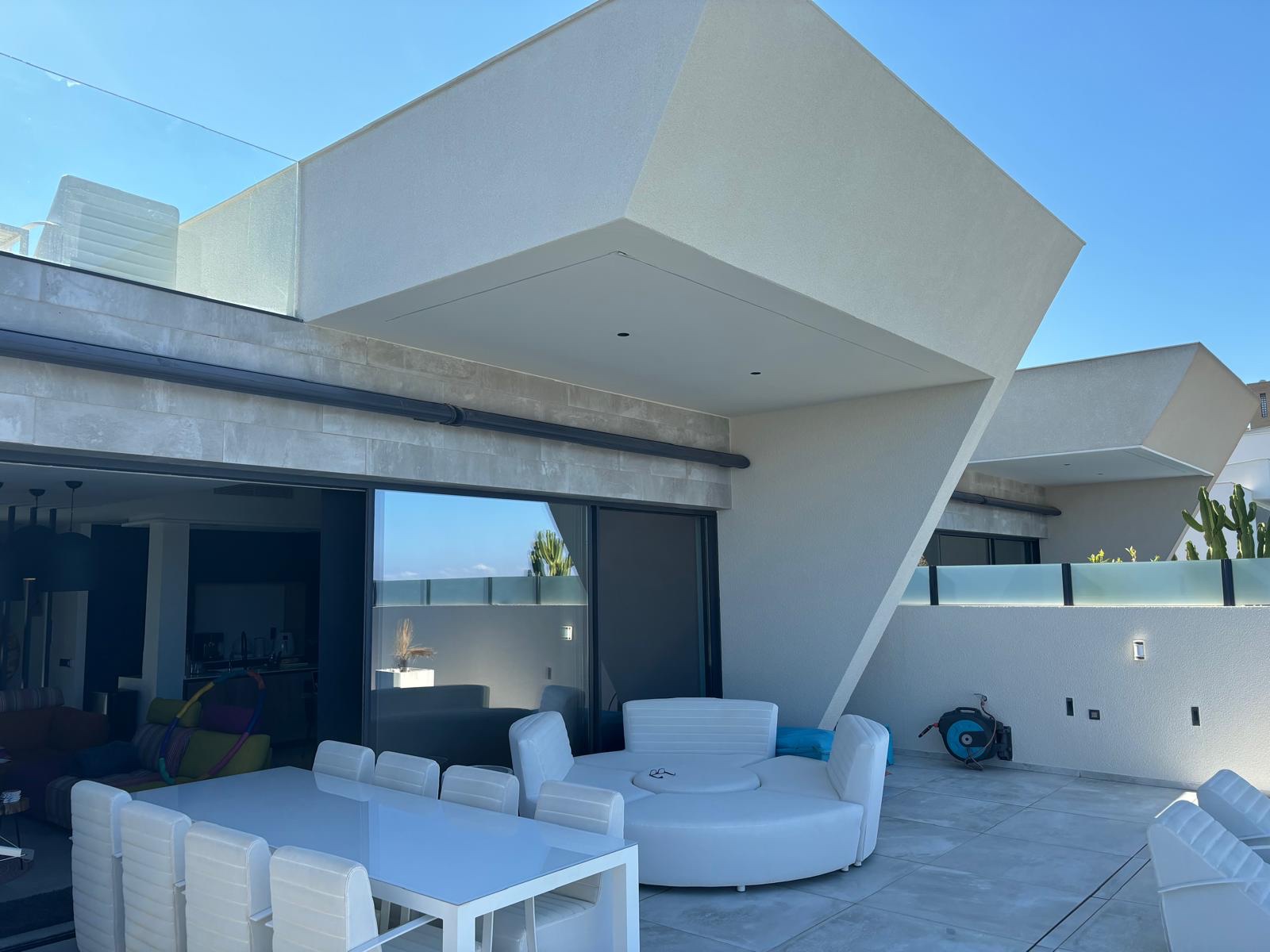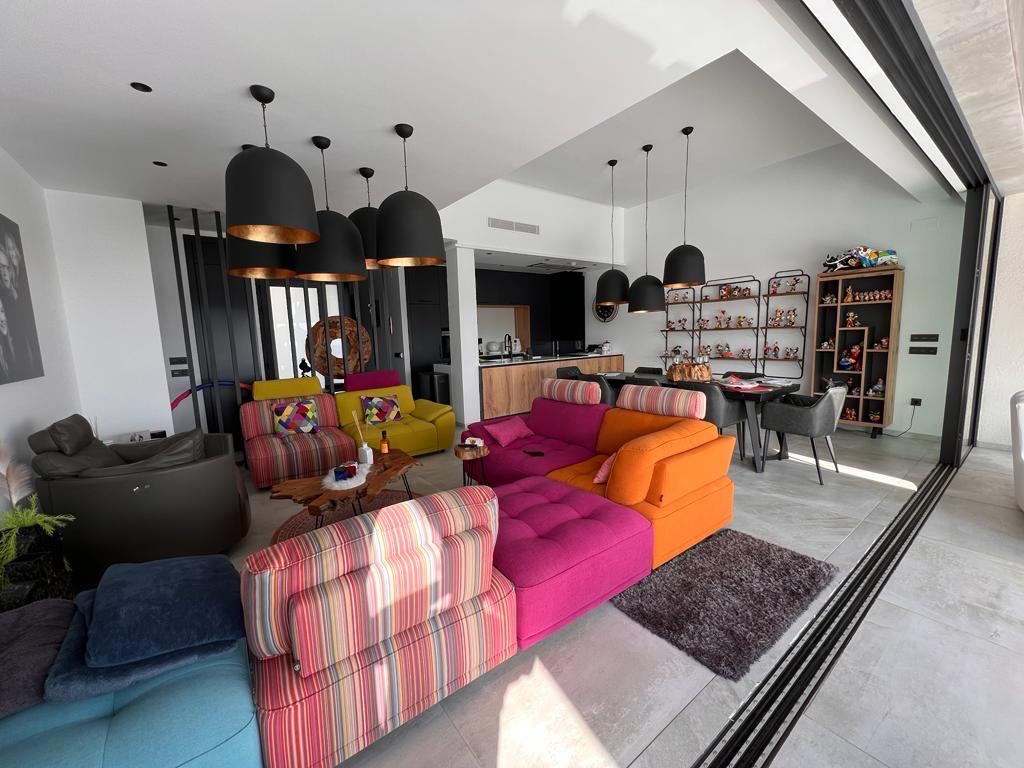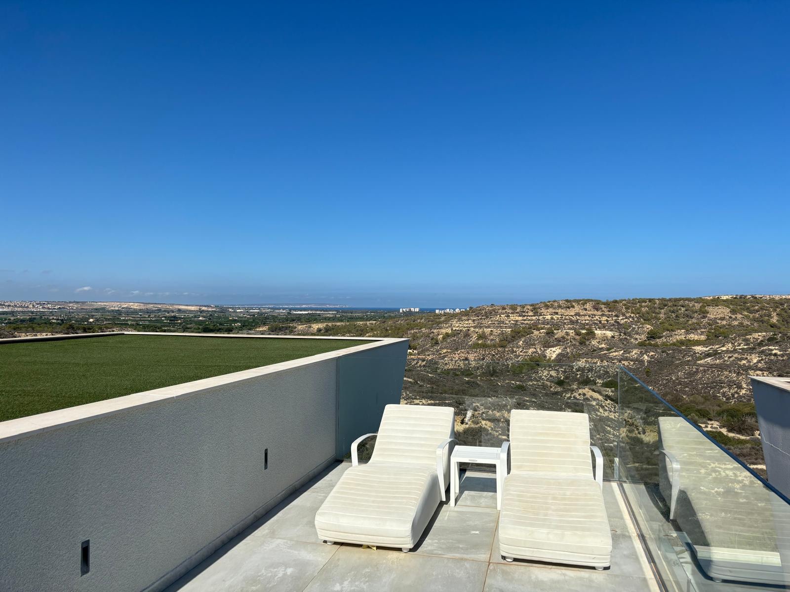 Welcome to this stunning luxurious villa, ideally located on the first line with unparalleled views over the El Recorral nature park. This exclusive property offers you a perfect blend of comfort, style, and functionality. Space and ComfortWith 5 spacious bedrooms and 5 stylish bathrooms, complemented by 2 separate guest toilets, this villa provides everything you need for a luxurious lifestyle. The large living room with an open kitchen is fully equipped with top-quality modern appliances, allowing you to enjoy both convenience and elegance. Some furniture is included. Versatile Ground FloorThe 300m2 ground floor features a spacious garage with room for multiple cars, a practical laundry area, and a versatile space perfectly suited for various purposes, from a gym to a home cinema. Patio and Terrace: Your Personal OasisA beautifully designed patio not only offers a charming outdoor space but also brings natural light to the ground floor. The terrace offers complete privacy and is equipped with a luxurious infinity pool and a solarium, where you can relax and enjoy the spectacular views. High-Quality FinishesThis villa is finished to the highest standards, with attention to detail in every corner. The bathrooms feature underfloor heating for added comfort, and the electric shutters are equipped with screens to provide a pleasant living environment all year round. The property is equipped with air conditioning for both heating and cooling, including Airzone technology, allowing you to control the temperature in each room individually. Additionally, there is a home automation system that enables you to control everything remotely. Your Dream Home Awaits!This unique property combines elegance, luxury, and functionality in an unrivaled location. Discover the perfect balance between nature and luxurious living in this magnificent villa.