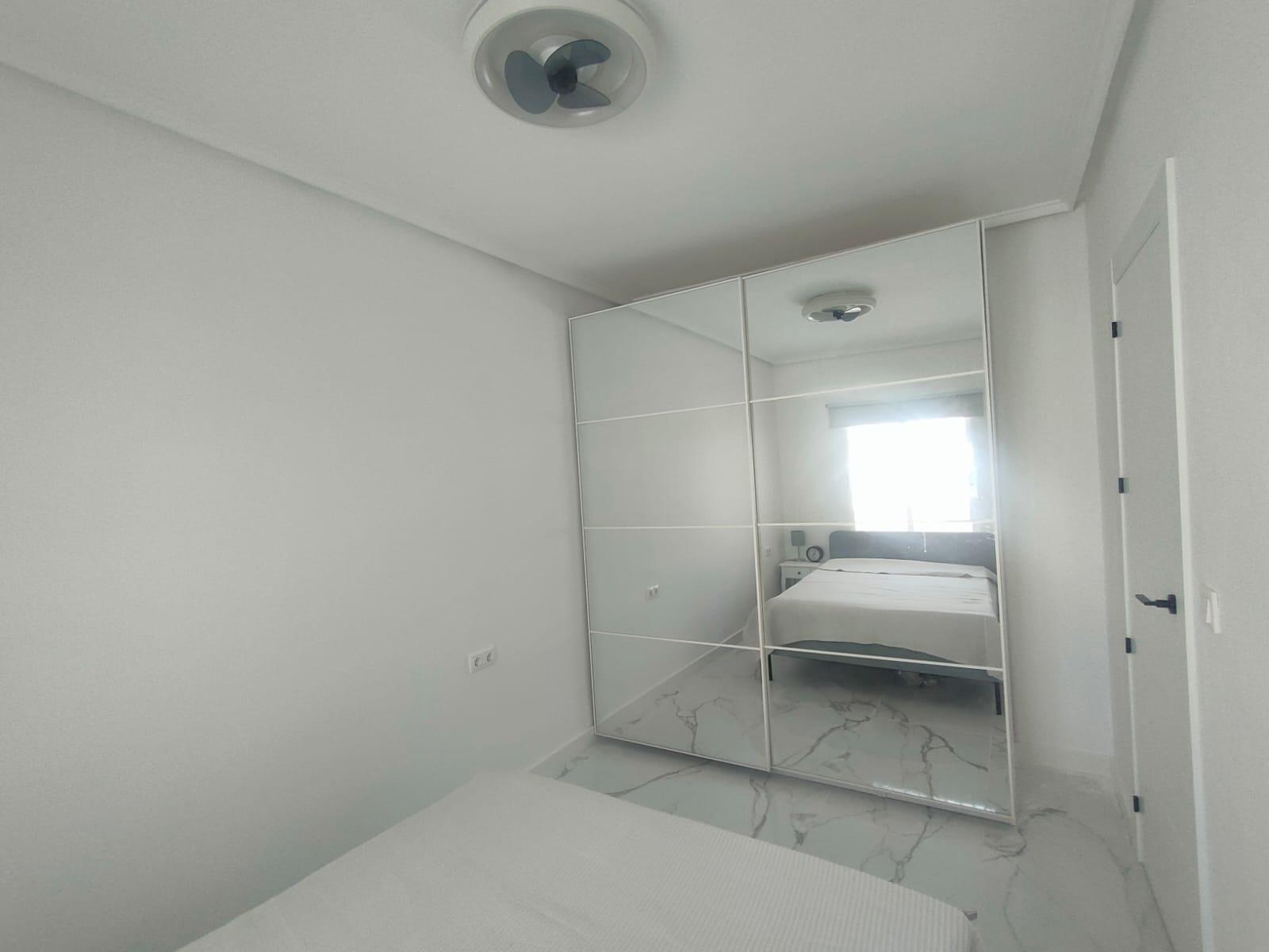 This charming upstairs bungalow is located in the quiet and sought-after La Rosaleda area of ​​Torrevieja. With a constructed area of ​​almost 40 m², this property has been completely renovated to offer a modern and welcoming atmosphere. It features a double bedroom that guarantees a restful night's sleep after enjoying the splendid Mediterranean climate. In addition, its large private solarium of over 35 m² is perfect for relaxing in the sun or hosting outdoor gatherings. Situated just 300 meters from the sea, it provides easy access to the beautiful local beaches and everything this vibrant coastal city has to offer. The bungalow also boasts a north-facing front terrace where you can enjoy pleasant views, as well as access to various nearby amenities such as buses, shopping centers, and schools. Without a doubt, this property represents an excellent opportunity both as a permanent residence and as a holiday investment.