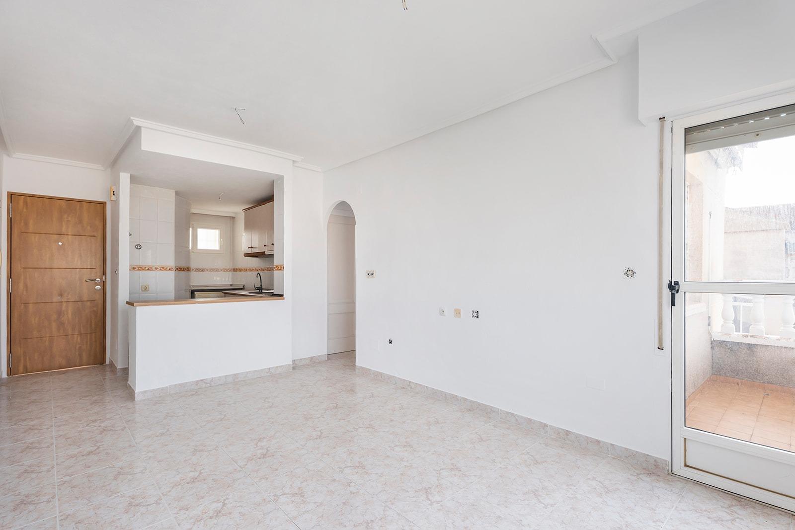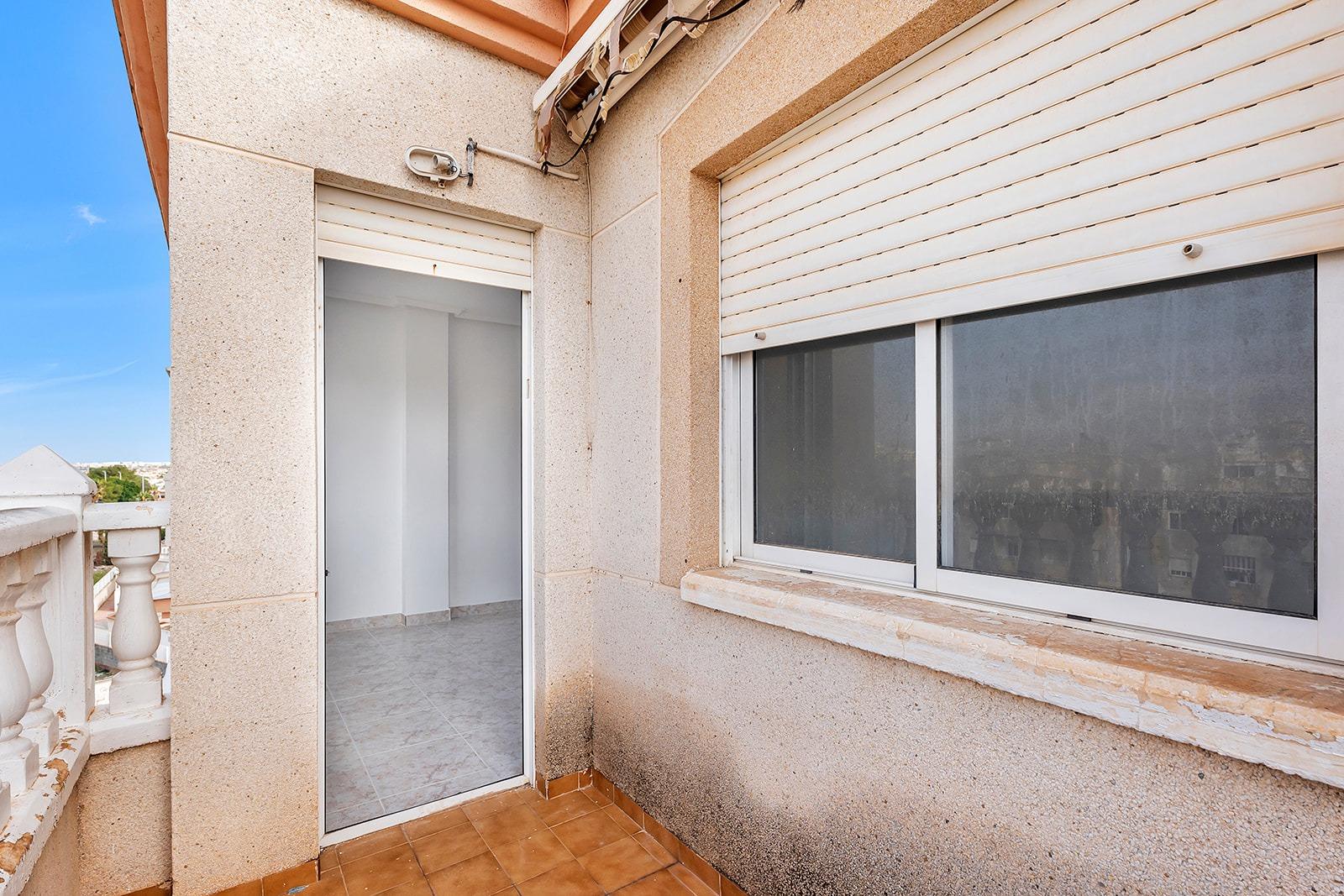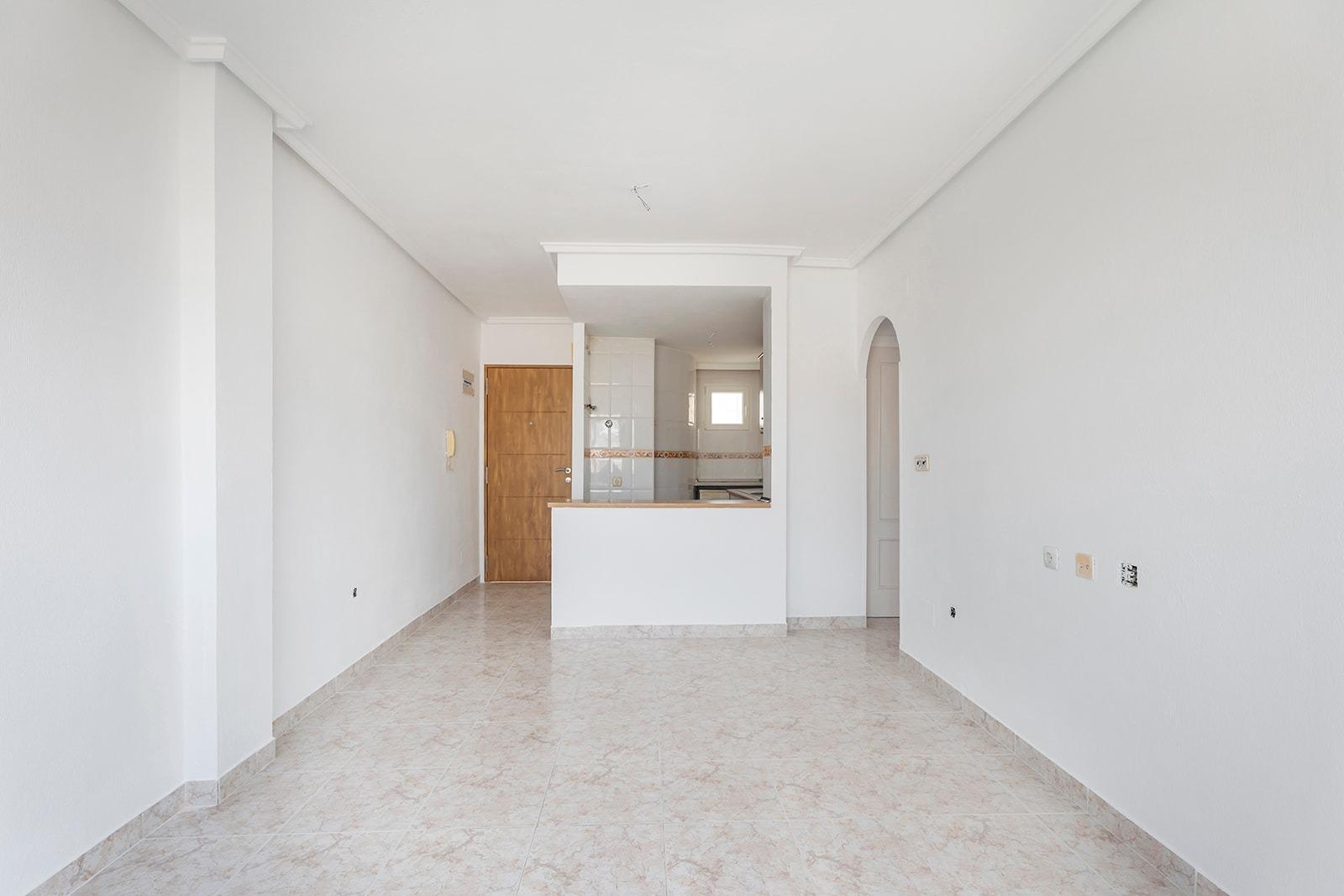 This is a great opportunity to purchase a property on the top floor of a four-storey building, with unobstructed views. It is an apartment with two bedrooms and one bathroom, an open-plan kitchen with a bar and a very bright living-dining room with access to a terrace of about 5 square metres. The building has a lift, a communal swimming pool and a surface parking area for residents. It is located in a quiet area of ​​Torrevieja, next to the Maestro Salvador Ruso school.