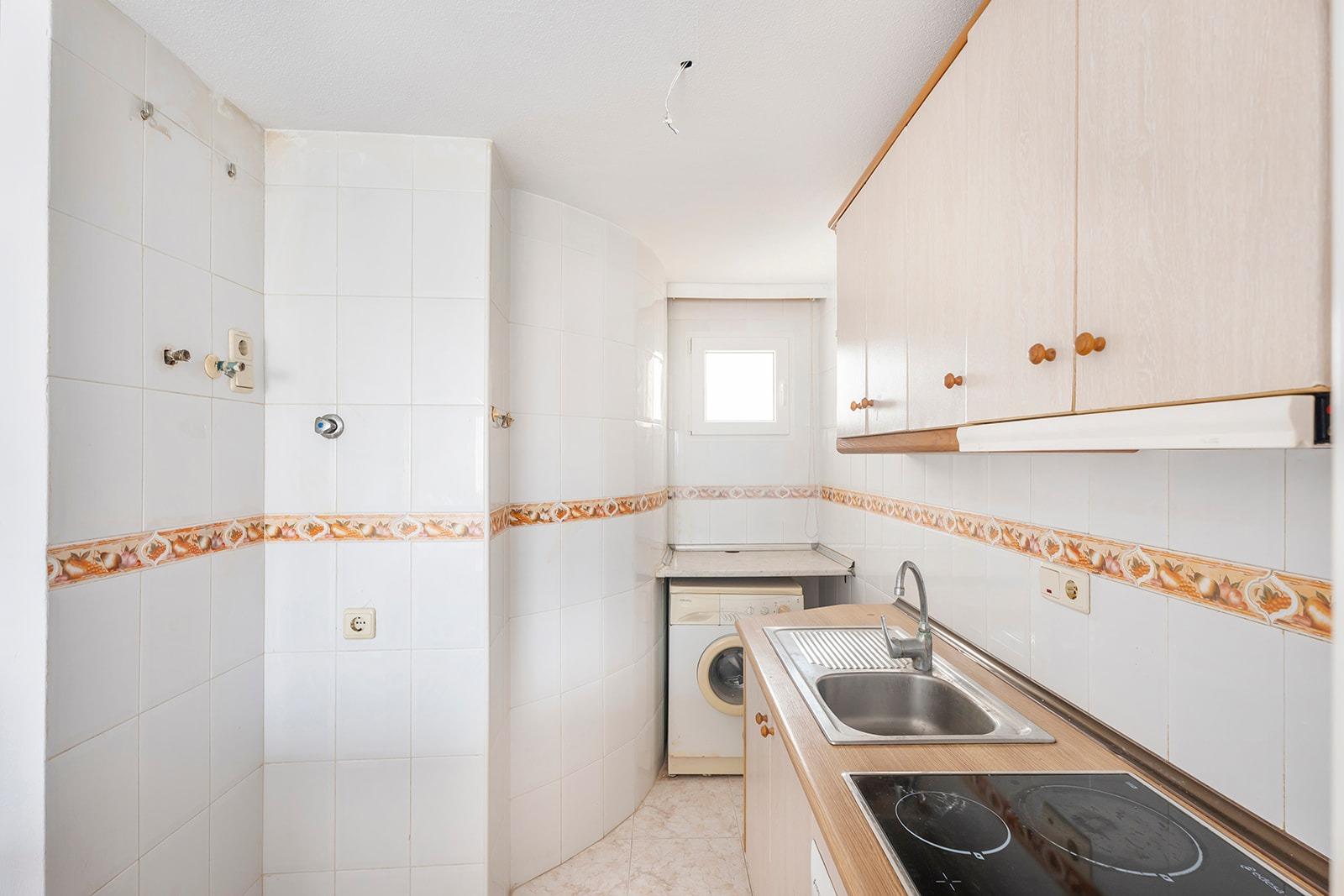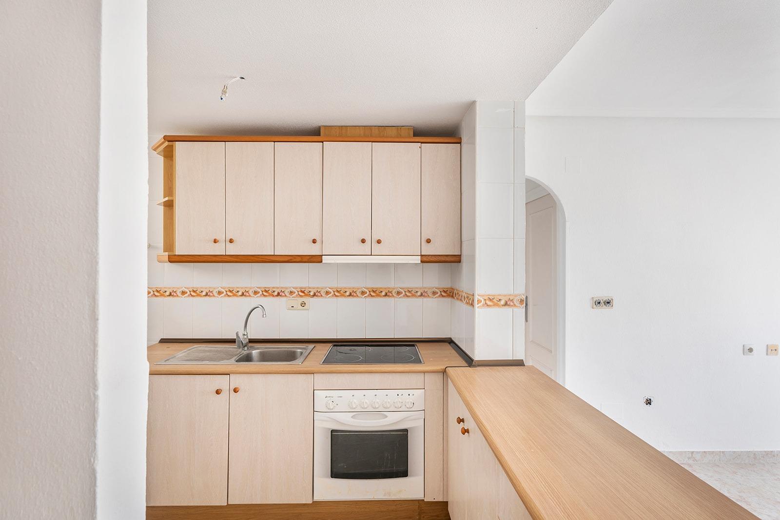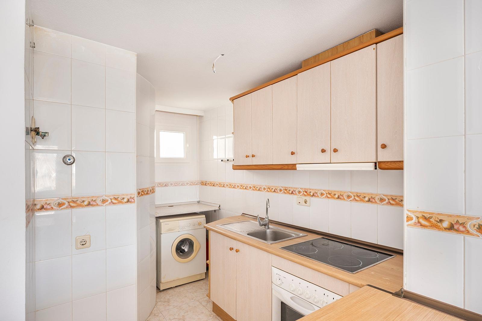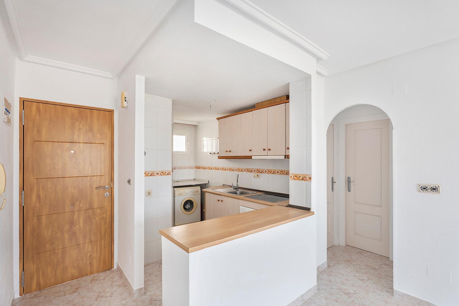 This is a great opportunity to purchase a property on the top floor of a four-storey building, with unobstructed views. It is an apartment with two bedrooms and one bathroom, an open-plan kitchen with a bar and a very bright living-dining room with access to a terrace of about 5 square metres. The building has a lift, a communal swimming pool and a surface parking area for residents. It is located in a quiet area of ​​Torrevieja, next to the Maestro Salvador Ruso school.