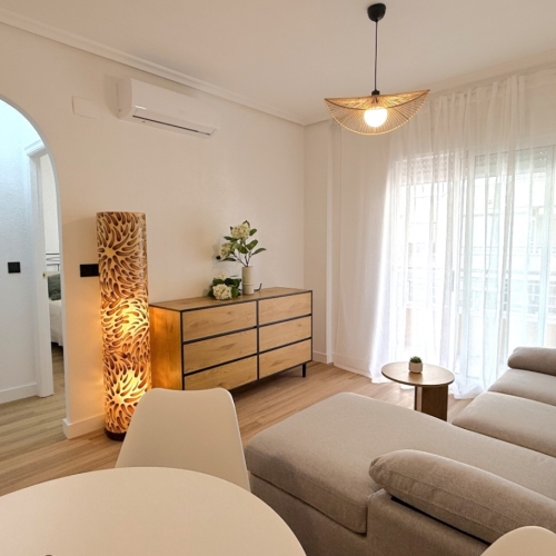 We present this cosy apartment on the second floor without a lift, located in the beautiful coastal area of Punta Prima in Orihuela Costa. It is also located just 6km from Torrevieja, 4km from the La Zenia Shopping Center and the wonderful golf courses in the area. The house consists of: -Two bedrooms. -Two bathrooms. -Living-dining room with fireplace. -Kitchenette. Do not hesitate to contact us for more information, we will be happy to assist you.