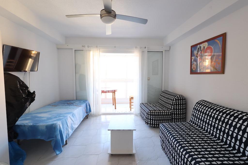 La Mata, Torrevieja, Residencial Viña Mar I, just 150 meters from the beach, studio in front of the communal pool and west facing, 2nd floor apartment with elevator of 38 m2, living room, kitchen, bathroom and glazed terrace, the apartment is sold furnished.