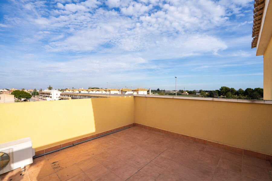 Incredible Value Property in Daya Nueva, in a community of only twelve. This modern first floor two bedroom, 2 bathroom apartment in perfectly situated on the outskirts of the village enjoying the tranquillity and views of the surrounding countryside. In addition to its ample living area the property enjoys a spacious pergola terrace off the lounge/dining area. Above is not only a communal solarium with roof top pool, but a private solarium solely for the use of this great property. Daya Nueva enchants with its traditional Spanish flavour, yet keeps up with modern times without sacrificing its true essence. You're never far from the essentials with local amenities, nearby towns like Almoradi, and the expansive orange and lemon groves encircling the village. Festivals abound all year round, adding to the local attraction. And with Alicante Airport just 30 minutes away, as well as the pristine sands of Guardamar del Segura within a quick drive, blissful Spanish living awaits you right here in Daya Nueva.