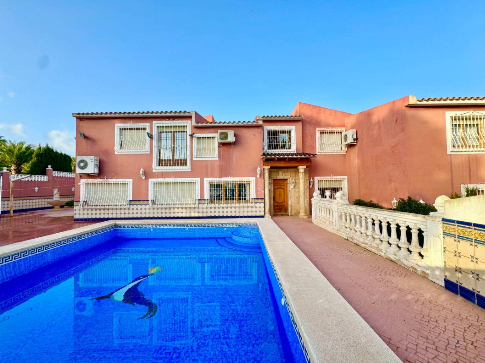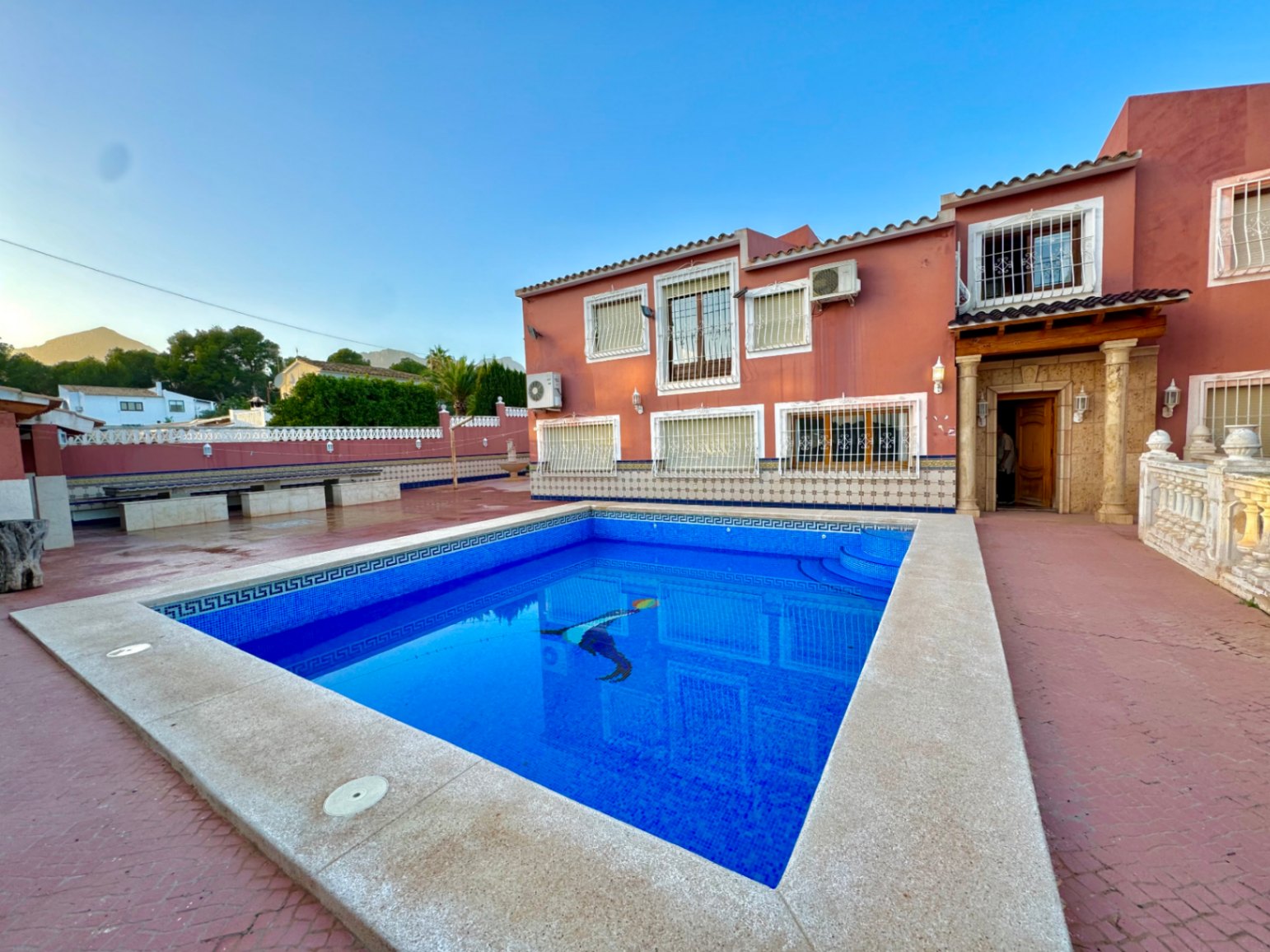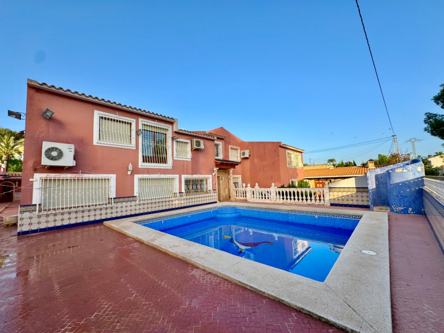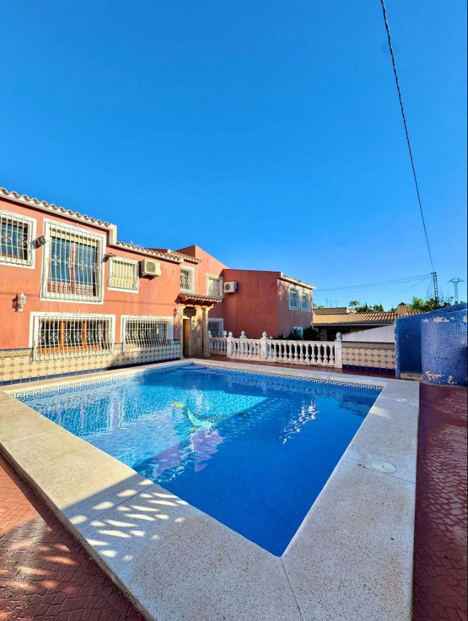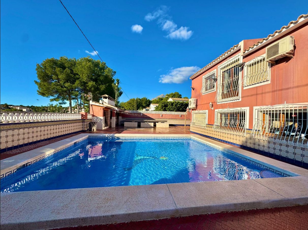 If you are looking to live in the best area of the Costa Blanca this villa is for you! We present this impressive villa located in a very quiet area of the Scandinavian area, very well connected to supermarkets, schools, shopping centers and other leisure areas. The Norwegian school is just a few minutes away.This Mediterranean design house has a south orientation, which makes it a very bright house. It has a plot of approximately 1200m2. The villa, which consists of about 800m2 built, will provide a lot of privacy to the family living there, due to the configuration of the house and the fact that it is positioned in a cul-de-sac that only the neighbors walk through.The outdoor areas and the pool area are south facing, so they are always sunny.This villa consists of a two-storey main house, separate guest house, kitchen, storage room, wine cellar, a huge parking area for 4-5 cars and a cabin garage, pool area and barbecue to delight family and friends.The guest house offers a completely independent home. It consists of 3 bedrooms, 2 full bathrooms, living-dining room and kitchen, all fully furnished and ready to move into. The main house was built on 2 floors. The ground floor will offer the buyer an infinite number of possibilities as it has a completely open space and can be modified and made to your liking. There is currently a toilet, a full bathroom, kitchen, pantry and a wine cellar.Going up to the upper floor we find the rest area. It has 4 bedrooms, 3 bathrooms, one of them with a jacuzzi, and a dressing room.If you have a remote job, don't worry as there is an office where you can work comfortably! Do not hesitate to contact us to arrange a visit!IBI 1100€