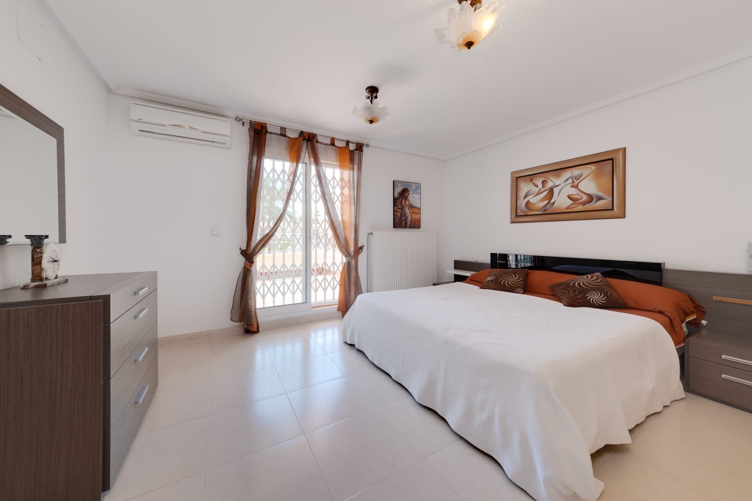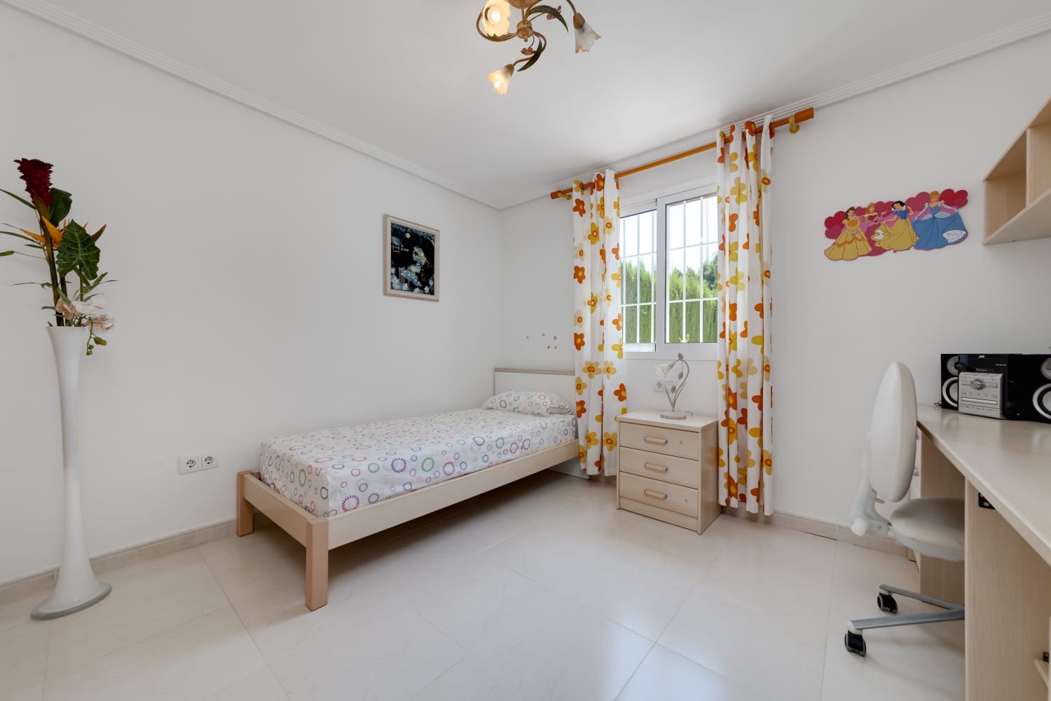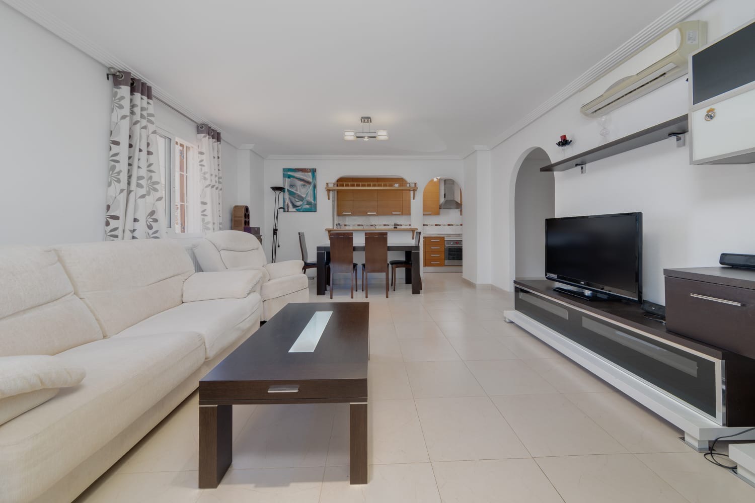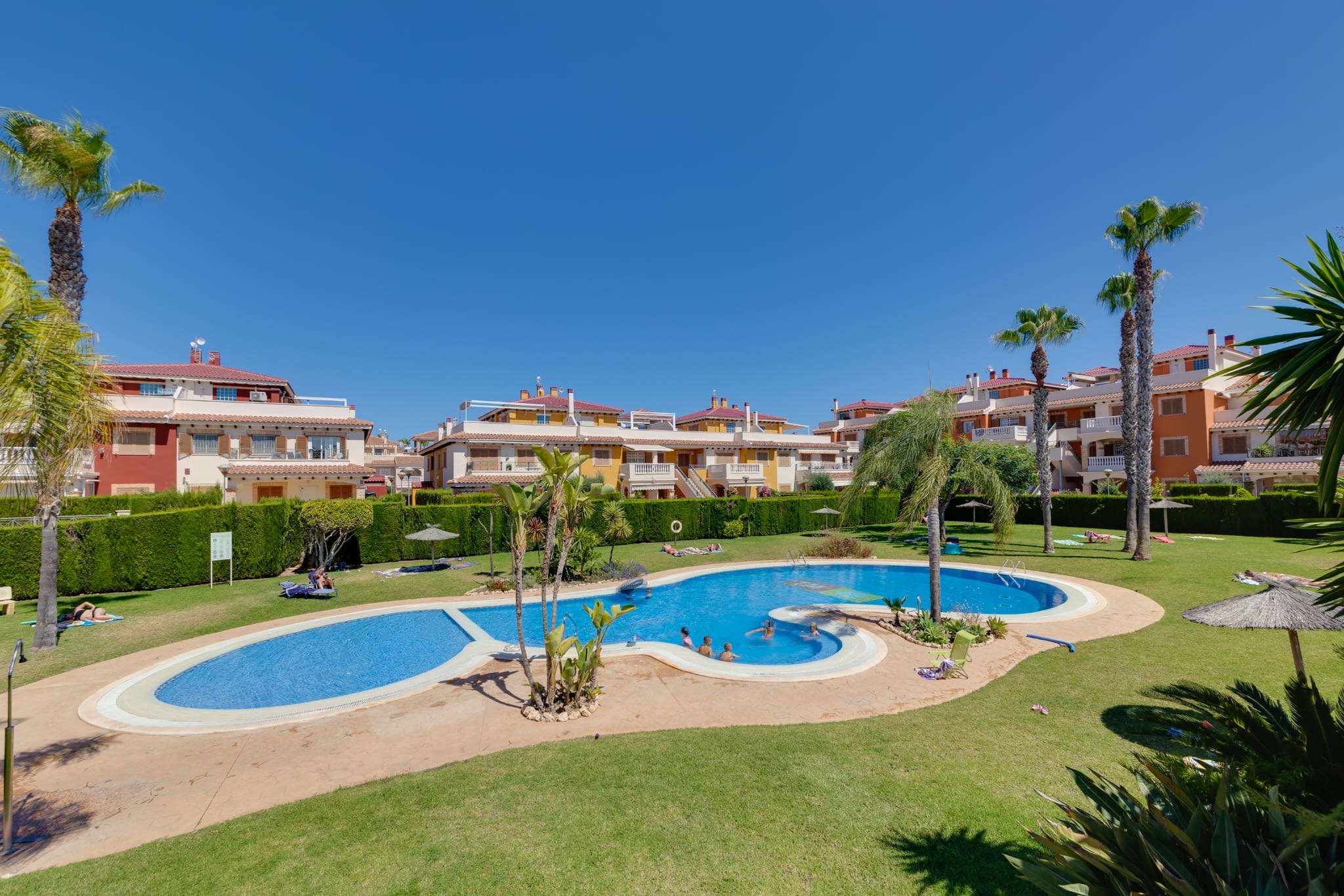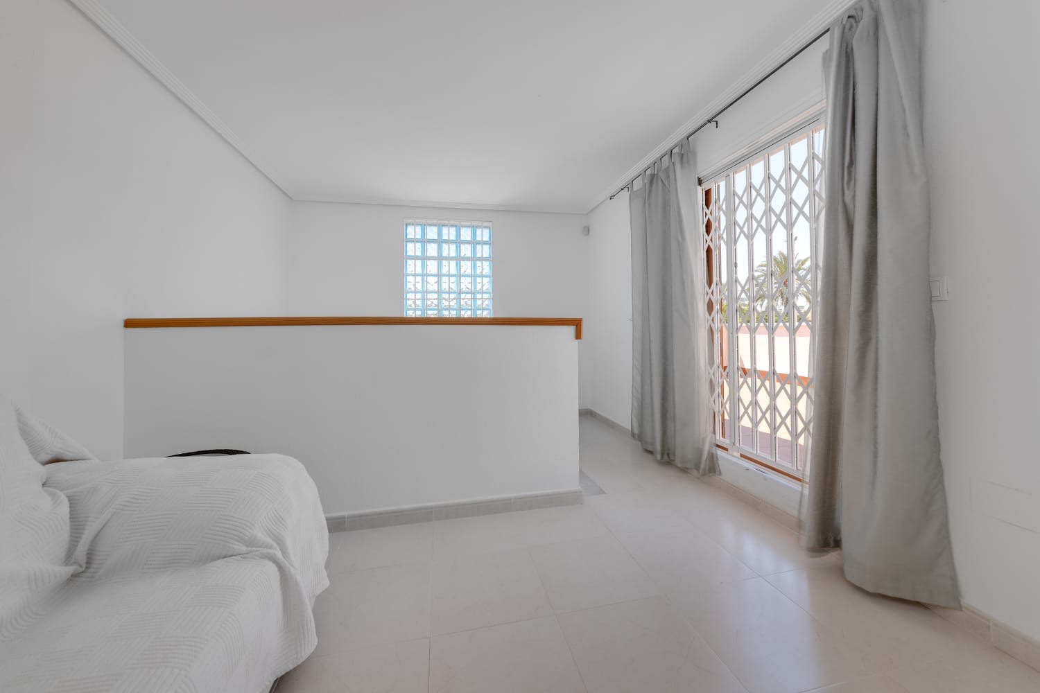 Spectacular Townhouse in Alameda del Mar, Orihuela CostaThis 212 m² townhouse is distributed across 3 bedrooms and 3 bathrooms, one of them en-suite. The property features a spacious living-dining area with an open-plan kitchen and a private terrace on the first floor, accessible from one of the bedrooms. On the second floor, a multipurpose room can be used as a bedroom or office, with direct access to a 35 m² solarium.The property sits on a 95 m² plot adorned with various trees and plants, creating a pleasant outdoor space. It also includes a basement garage with direct access to the house.Located in a private residential complex offering a communal pool, sauna, and gym.Key features:Built area: 212 m².3 bedrooms and 3 bathrooms.35 m² solarium.95 m² plot with garden.Basement garage with direct access.Communal pool, sauna, and gym.Year of construction: 2007.Property tax (IBI): €584/year.Community fees: €1,176/year.Prime location close to all amenities, shops, restaurants, and a paddle tennis club.