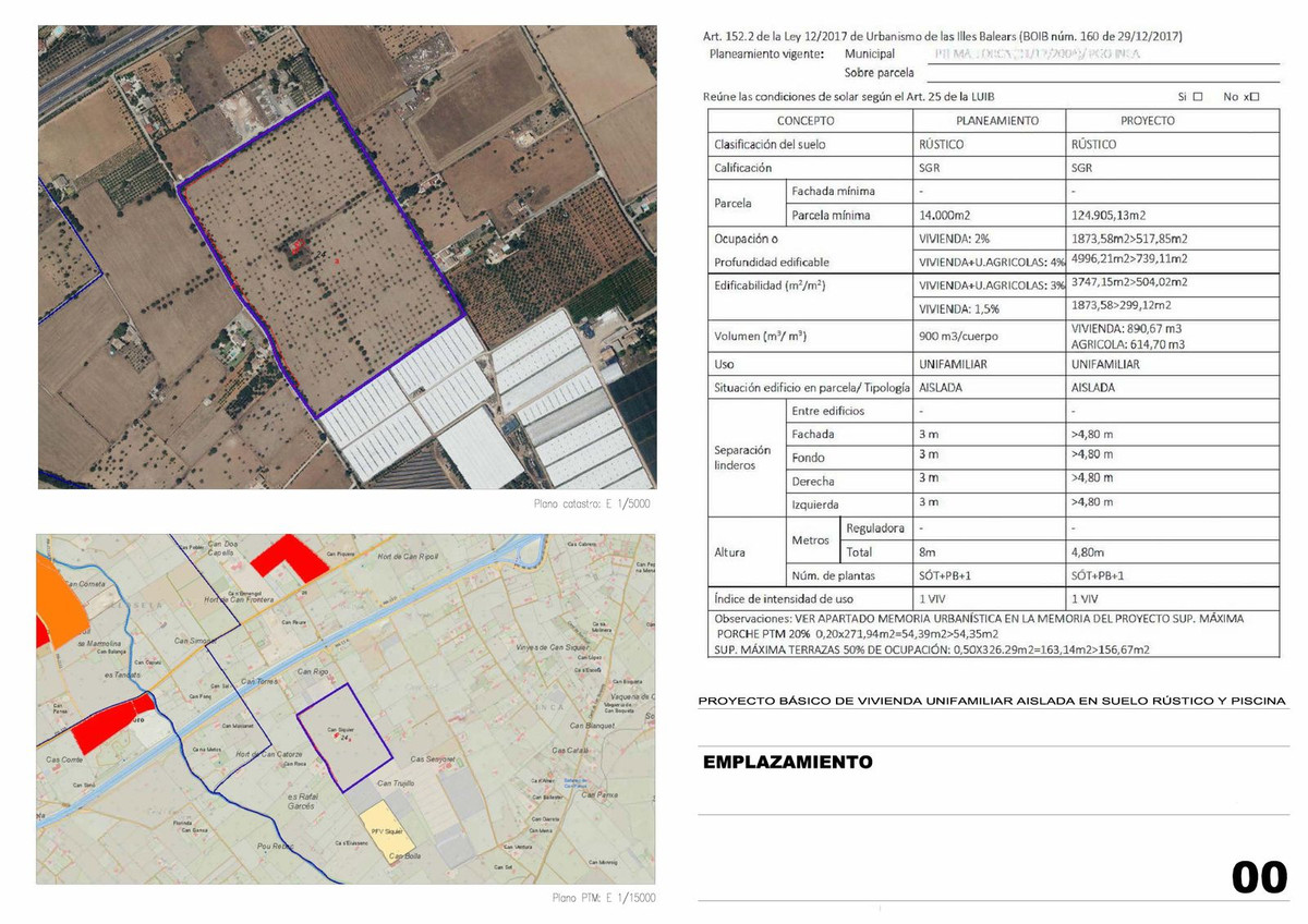 Welcome to an exceptional opportunity in the heart of the stunning Island of Mallorca! We are pleased to present you with the sale of an extraordinary estate in the center of Mallorca, where your dreams of owning a detached single-family home with a pool and the possibility of producing your own wines can become a reality. This spectacular property spans over 12 hectares of land, with rights to plant up to 5 hectares of vineyards. Additionally, it features a water well, electricity supply, and a housing project with a pool already designed. The basic project has been approved and includes a construction of 300m2 plus a 100m2 basement, along with an old house of 200m2 that can be renovated according to your preferences. The projected home on the estate encompasses a construction of 740m2, with a design that includes 5 bedrooms and 3 bathrooms, intended to offer maximum comfort and luxury to its future owners. Located in an extremely tranquil area, this estate provides you with the privacy and serenity you desire, allowing you to enjoy life in an idyllic and relaxing environment. Don't miss the opportunity to acquire this unique property in the center of Mallorca. Contact us today for more information and take the first step towards a life of luxury and tranquility in this Mediterranean paradise.
