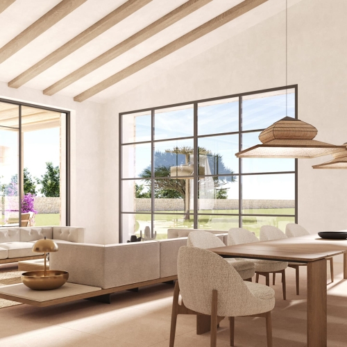 Ny villa till salu i Marratxinet, Mallorca. Ett projekt för en lyxig bostad som just har beviljats ​​fullständiga bygglov för byggnation under de kommande 18 månaderna, i det pittoreska området Marratxinet, ett av Marratxís mest exklusiva områden. Populärt bland familjer på grund av sin autentiska bykänsla men med fördelen av dess närhet till Palma de Mallorca, flygplatsen och internationella skolor. Detta nya projekt avser ett hem med fem sovrum och fyra badrum. På bottenvåningen finns ett stort öppet kök, vardagsrum och matsal med åtta meter breda skjutdörrar i full höjd som öppnar sig mot en lättskött terrassträdgård med en söderläge pool och uteservering. Designad med den moderna familjen i åtanke som vill ha en öppen planlösning som under de varma sommarmånaderna kan anslutas till terrassen och poolen. Perfekt för att underhålla och vara värd för vänner. Ett dubbelrum på bottenvåningen är bekvämt placerat bredvid ett komplett badrum, vilket gör det idealiskt som gästrum eller hemmakontor som kan användas som gästrum vid behov. På övervåningen på framsidan av fastigheten finns två rymliga dubbelrum med ett komplett badrum emellan dem. De två dubbelrummen på baksidan av fastigheten med utsikt över uteplatsen och poolen har båda omklädningsrum och eget badrum. Detaljer om rummens fördelning och mått finns nedan. Vi har även fullständiga planritningar och information om de föreslagna installationerna. På bottenvåningen Garage 17,55 m2 Entré 12,55 m2 Sovrum 1º 9,85 m2 Badrum 1º 5,10 m2 Öppen planlösning, vardagsrum/kök 53,25 m2 Terrass 94,70 m2 Pool 16,95 m2 På första våningen Sovrum 2º 16,50 m2 Sovrum 3º 15,50 m2 Badrum 3º 4,05 m2 Sovrum 4º 12,00 m2 Badrum 2º 5,95 m2 Klädkammare 2º 7,05 m2 Sovrum 5º 10,25 m2 Badrum 4º 3,85 m2 Klädkammare 1º: 6,25 m2 Kontakta oss om du behöver mer information om denna ny villa till salu i Marratxinet eller om du vill besöka platsen när byggnationen påbörjas på denna fastighet. Marratxí Marratxi är en samling byar och stadsområden som ligger strax utanför Palma de Mallorca. Dessa inkluderade Pont d'Inca, Portol och Sa Cabaneta, som alla är populära bland dem som arbetar i Palma de Mallorca. Marratxinet Marratxinet, den ursprungliga jordbruksbosättningen i Marratxí. Kommunen har fått sitt namn från denna lilla by, men när jordbruksinkomsterna minskade i mitten av 1800-talet flyttade kommunens administration till de mer välbärgade bosättningarna Sa Cabaneta och Marratxi. Den ursprungliga byn finns kvar som en pärla av traditionell mallorkinsk arkitektur längs en gata som heter Sa Font. Att bygga ett hus på Mallorca och nybyggnationer