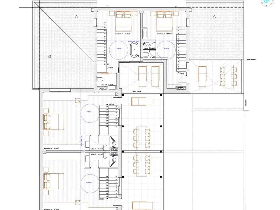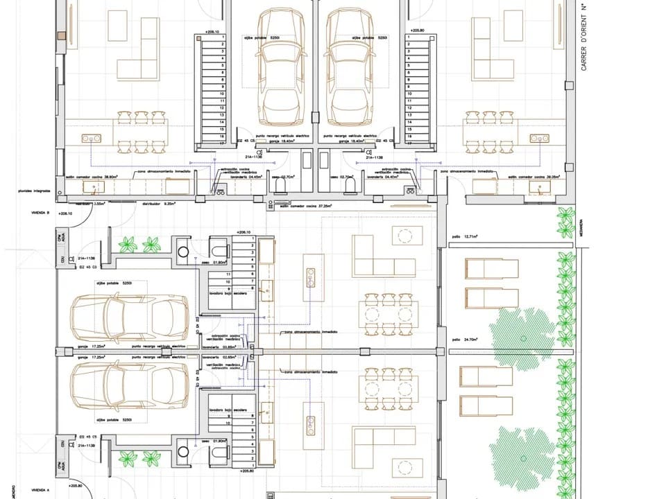 Hörntomten som mäter 404 m2 och är omgiven av andra charmiga fastigheter med otrolig utsikt över bergen. Tomten har ett projekt- och bygglov för fyra trevånings parhus, ett med privat pool. Varje hus har fyra sovrum, tre badrum och ett privat garage med plats för ett fordon med en total byggyta på 212 m².