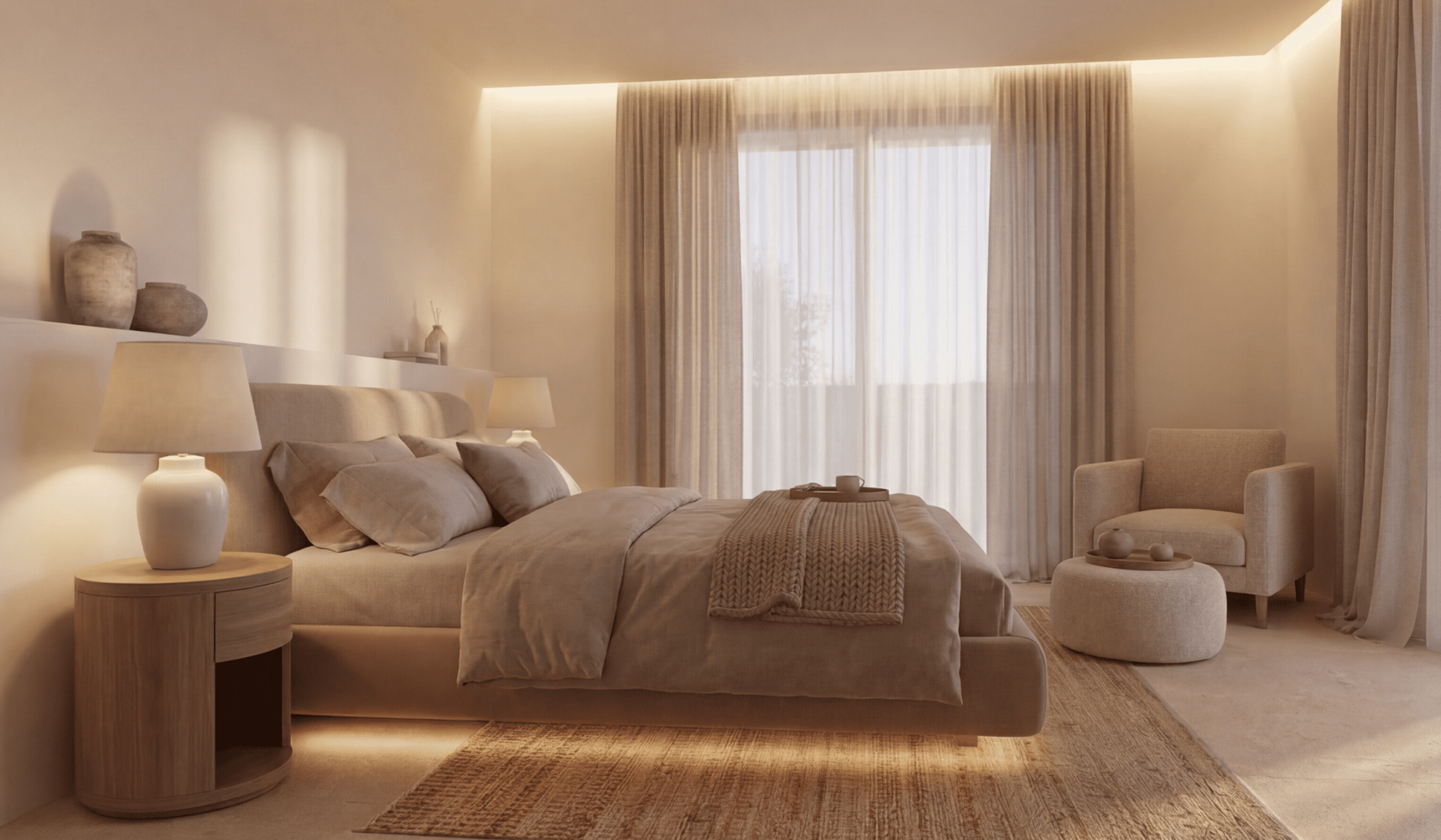 Projektet för detta nya hem har en design som vackert förenar modern elegans med respekt för det omgivande naturlandskapet och erbjuder en livsstil utöver det vanliga. Mittpunkten på denna lantliga tomt kommer att vara en rymlig och bekväm villa på 422 m2 med ett öppet vardagsrum med dubbelhögt välvt tak, lounge och kök med matplats som fylls av solljus från poolen och trädgården som omger huset. Med sex sovrum i huvudbyggnaden och möjlighet till ett sjunde sovrum eller hemmakontor i det intilliggande annexet.