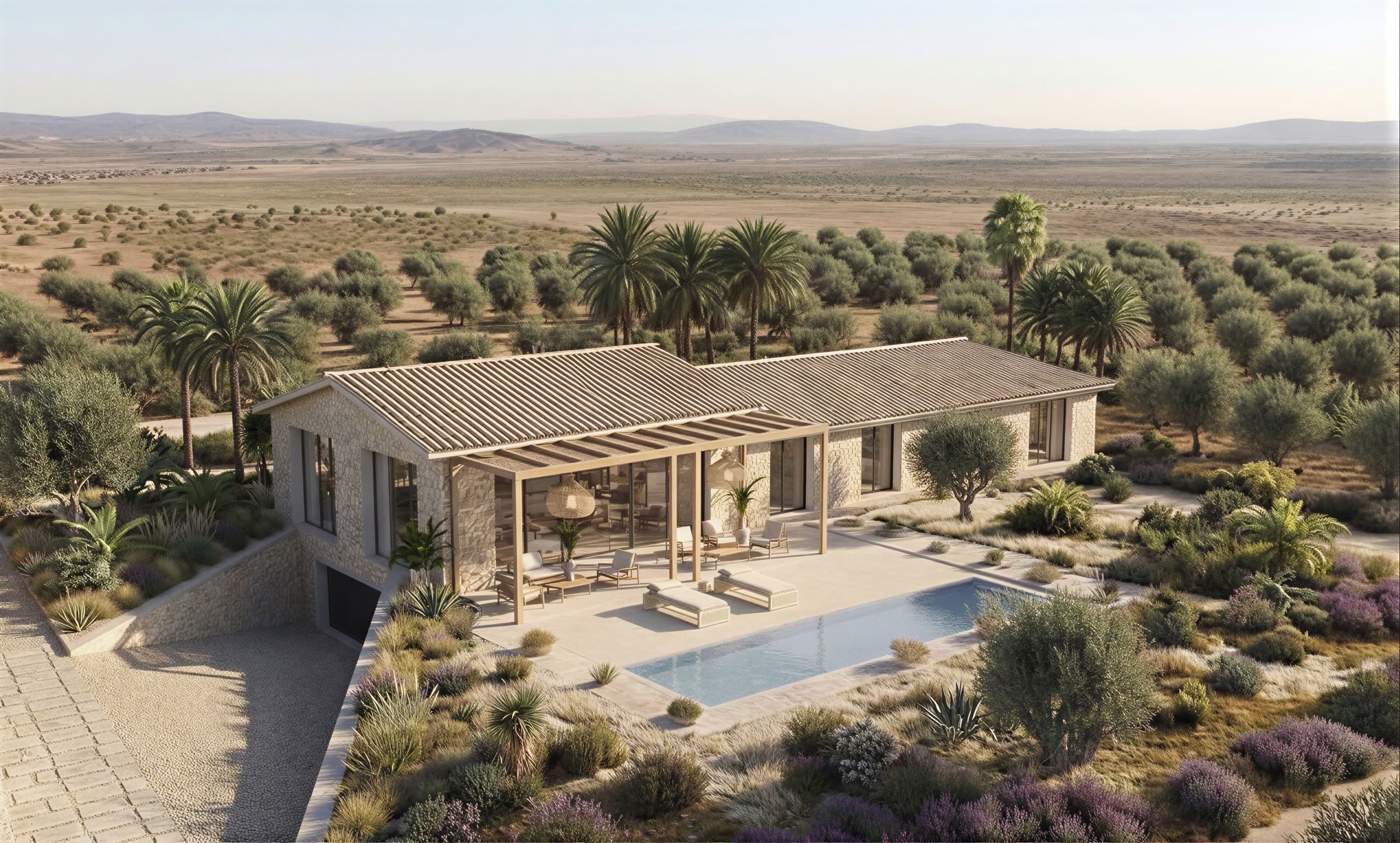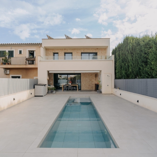 Nyproduktion till salu i Marratxí, Mallorca, ett hus på 422 m² med sju sovrum. Ansökan om projektet lämnades in i mars 2025 för byggnation av en villa på denna tomt om 59 300 m², belägen vid en liten landsväg norr om Marratxí, strax utanför byn Marratxinet, i ett landskap av mandellundar längs Ma2040. Detta nya hem har en design som vackert förenar modern elegans med respekt för det omgivande naturlandskapet och erbjuder en livsstil utöver det vanliga. Mittpunkten på denna lantliga tomt kommer att vara en rymlig och bekväm villa på 422 m² med ett öppet vardagsrum med dubbelhögt valvtak, lounge och kök som fylls med solljus från poolen och trädgården som omger huset. Med sex sovrum i huvudbyggnaden och möjlighet till ett sjunde sovrum eller hemmakontor i det intilliggande annexet. Eftersom fastigheten ännu inte är under uppförande och ansökan om bygglov behandlas, har köparen en unik möjlighet att anpassa ytbehandlingar och detaljer efter egna preferenser. När fastigheten är färdigställd kommer den att ha goda förbindelser till transportnätet, med 20 minuters bilresa till flygplatsen i Palma de Mallorca och mindre än 20 minuter från Mallorcas huvudstad Palma de Mallorca. För mer information om denna nyproduktion till salu i Marratxí, vänligen kontakta oss. Marratxinet, den ursprungliga jordbruksbosättningen i Marratxí. Kommunen har fått sitt namn från denna lilla by, men när jordbruksinkomsterna minskade i mitten av 1800-talet flyttades kommunens administration till de mer välmående bosättningarna Sa Cabaneta och Marratxi. Den ursprungliga byn består som en pärla av traditionell mallorkinsk arkitektur längs en gata som heter Sa Font. Marratxinet ligger 20 minuters bilresa från flygplatsen på Mallorca och 10 minuters bilresa från byarna Bunyola och Santa Maria del Cami.