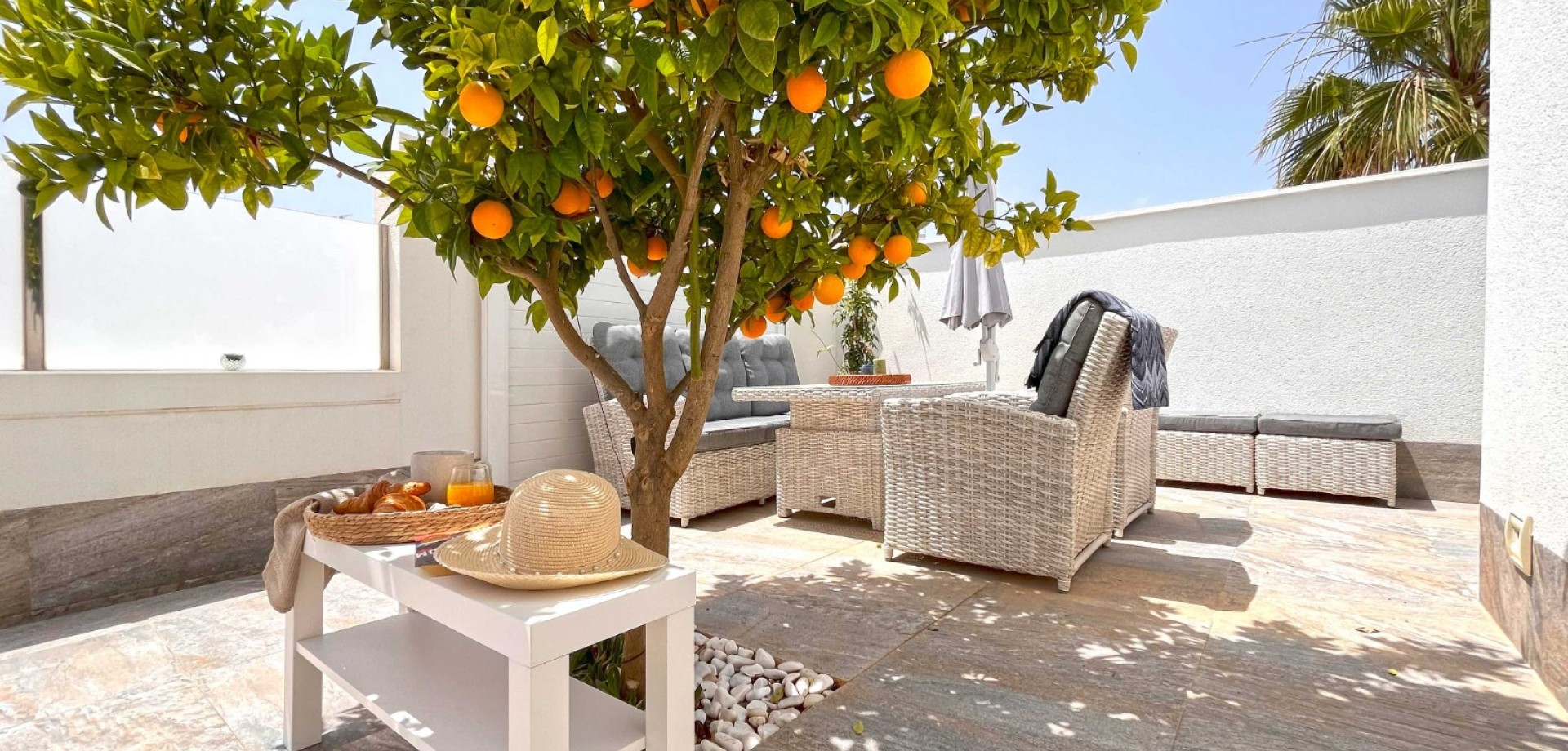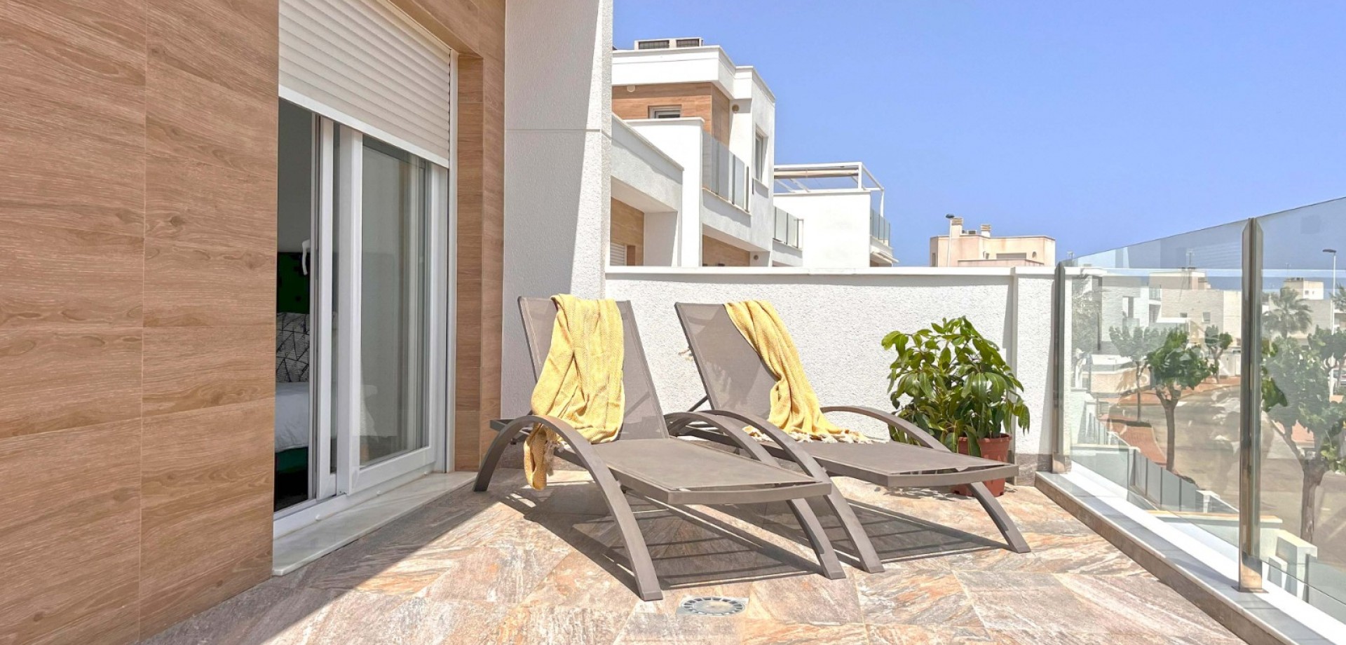 Property Overview Discover the epitome of modern luxury in this detached corner villa, centrally located in the vibrant town of San Pedro del Pinatar, Murcia. This stunning property combines contemporary design with top-of-the-line amenities, offering a sophisticated and comfortable lifestyle for discerning buyers. Key Features 4 Generously Sized Bedrooms: Each bedroom offers ample space, natural light, and thoughtful design for maximum comfort.3 Stylish Bathrooms: Featuring contemporary fixtures and fittings, these bathrooms provide a spa-like experience at home.Private Heated Pool: Enjoy the luxury of a heated pool, perfect for year-round swimming and relaxation.Ample Parking: Convenient and secure parking space, ensuring easy access and peace of mind.Fully Tiled Terrace: This elegant outdoor space is perfect for entertaining or simply relaxing in the Mediterranean sun.Expansive Solarium: A private rooftop retreat offering stunning panoramic views, ideal for sunbathing or evening gatherings.Central Location: Situated in the heart of San Pedro del Pinatar, close to beaches, shops, restaurants, and local attractions. Interior Distribution Ground Floor: Open-Plan Living Room: A spacious and inviting living area with large windows that flood the space with natural light, seamlessly connecting the indoors with the outdoor terrace and pool area.Dining Area: Adjacent to the living room, the dining area provides a perfect setting for family meals and entertaining guests.Modern Kitchen: Equipped with state-of-the-art appliances, sleek cabinetry, and ample counter space, this kitchen is a chef's dream.One Bedrooms: A well-appointed bedroom on the ground floor, offering versatility for guests, family members, or use as a home office.One Bathroom: A stylish bathroom with modern fittings, conveniently located to serve the ground floor bedrooms and living areas. First Floor: Two Additional Bedrooms: Two spacious bedrooms on the first floor, each designed with comfort and style in mind.Large Balcony: Accessible from the bedrooms, this balcony offers a serene space to enjoy morning coffee or unwind in the evening.One Bathroom: A contemporary bathroom with high-end fixtures, serving the first-floor bedrooms. Second Floor: Master Suite: A luxurious master bedroom with an en-suite bathroom, providing a private haven for relaxation and rest.En-Suite Bathroom: Featuring elegant fixtures and a sleek design, this bathroom offers a tranquil retreat within the master suite.Large Solarium: The expansive rooftop solarium is perfect for soaking up the sun, entertaining, or simply enjoying the breathtaking views. Outdoor Space Heated Pool: The centerpiece of the outdoor area, this private heated pool is perfect for swimming, relaxation, and entertaining.Fully Tiled Terrace: An elegantly designed outdoor space that extends the living area, ideal for dining al fresco or lounging by the pool.Ample Outdoor Space: Thoughtfully designed to provide multiple areas for relaxation, dining, and entertainment, all while enjoying the beautiful Mediterranean climate. Extras Suite at top floor, fruit trees, underfloor heating in kitchen, living room & bathrooms, pool heater + cover, outdoor shower, pre installation for outdoor kitchen, extended pool 7 x 3 m, water filter, lighting package, door between kitchen & storage. This villa is more than just a home; it is a statement of modern luxury and convenience. Perfectly suited for those seeking a blend of sophisticated design and prime location, this property offers everything you need for an exceptional living experience. For more information or to schedule a viewing, please contact us today.