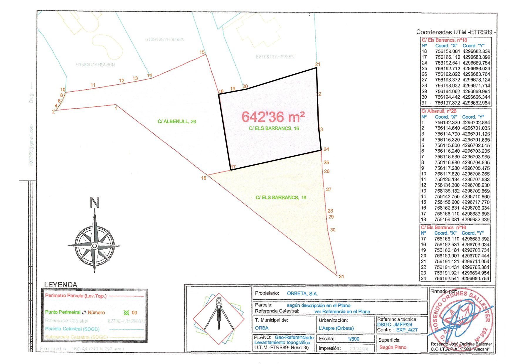 Plot situated in Orba, specifically in Orbeta urbanization. Total area of the plot 642,36 sq meters.  It is possible to build a villa on two floors. The plot has views and is very close to Orba village. It is located in a complex with lots of character.