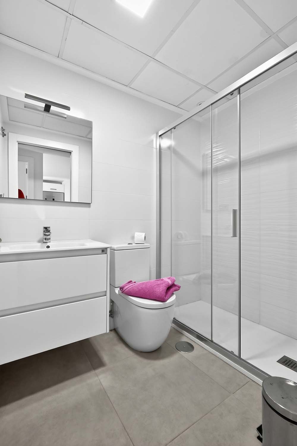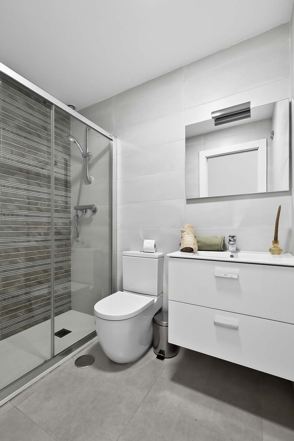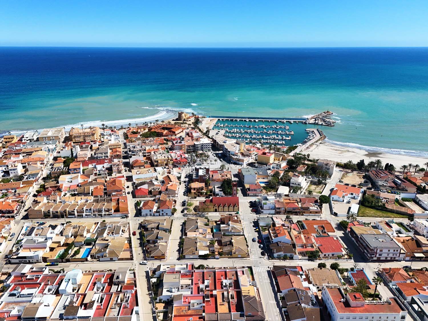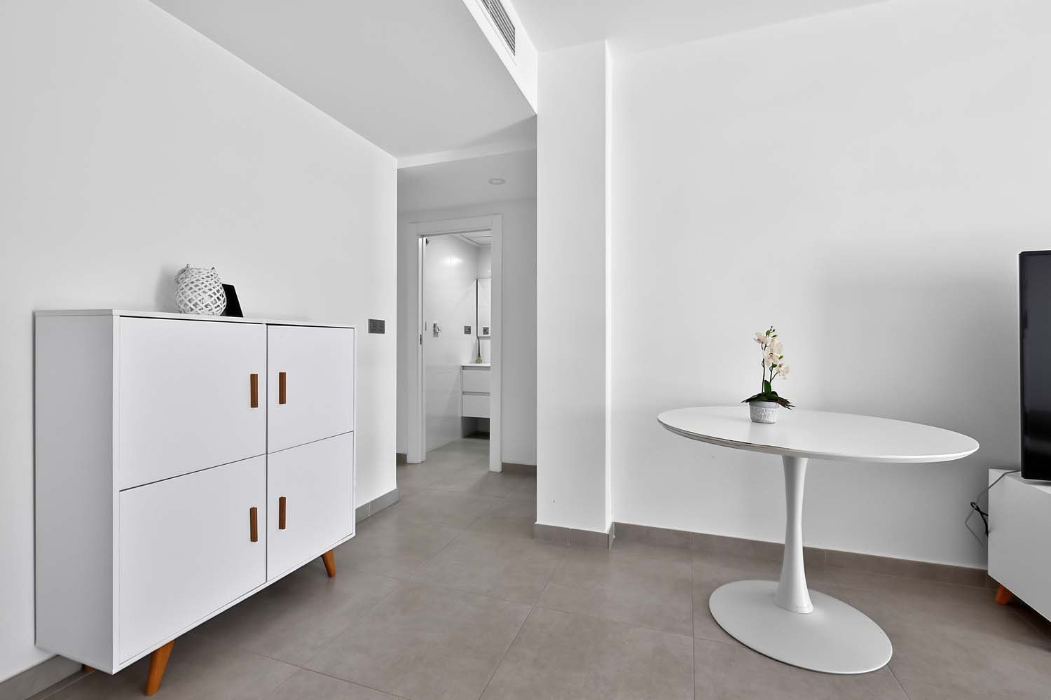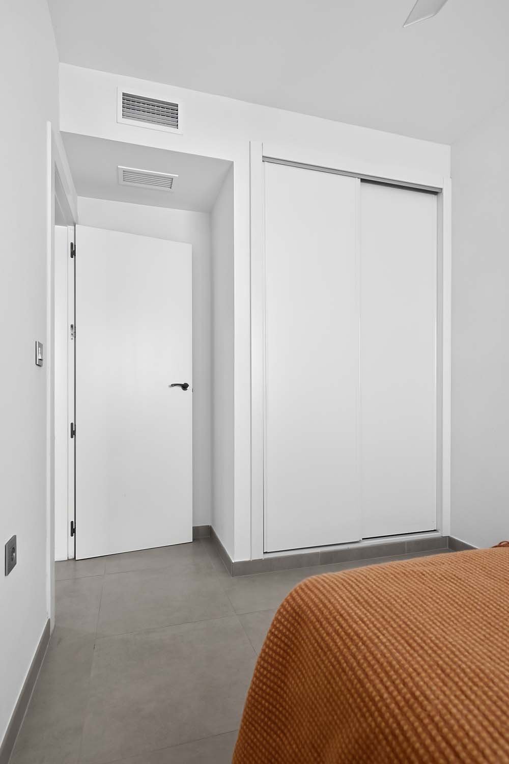 This modern, elegant, and centrally located three-bedroom, two-bathroom apartment is practically brand new in Torre de la Horadada. It's situated just 200 meters from the Plaza Nueva shopping center, about 700 meters from the sea, and boasts beautiful, unobstructed views of a park.The main entrance is accessed from the street opposite Antonio Gálvez Park. The spacious west-facing front porch is perfect for enjoying pleasant, cool breakfasts in the shade on summer mornings. From the main entrance, you enter the living-dining-room, which connects to the fully equipped kitchen with all appliances. A hallway leads to a bedroom, a full bathroom, and the master bedroom with an en-suite bathroom, both featuring walk-in showers and glass screens.Adjacent to the kitchen is a second open-plan living area: a large east-facing terrace. This terrace connects to a communal walkway that provides access to the swimming pool and gardens. This private terrace offers a tranquil, pleasant, and sunny atmosphere throughout the morning, providing abundant natural light to the apartment year-round. It's also a perfect space for relaxing or gathering with friends and family. Here you'll find a wall-to-wall aluminum cabinet housing a washing machine, dryer, electric water heater, and storage space.The property was built in 2015 with high-quality finishes, including electric blinds, underfloor heating in the bathrooms, fans and ducted central air-conditioning throughout. It features electric awnings on the interior terrace and is being sold fully-furnished and equipped with all appliances.The rear of the property provides direct access to the communal area with a swimming pool, gardens, and shaded areas. Just a two-minute walk away is the new Plaza Nueva shopping center, with its bars, cafes, and restaurants, and five minutes further on are the renowned crystal-clear beaches of El Conde and Los Jesuitas, along with the seafront promenade and the port.This property offers an excellent opportunity for investors due to its high market value for holiday rentals, as a vacation home, or as a permanent residence, given its proximity to all amenities.Book your viewing today!