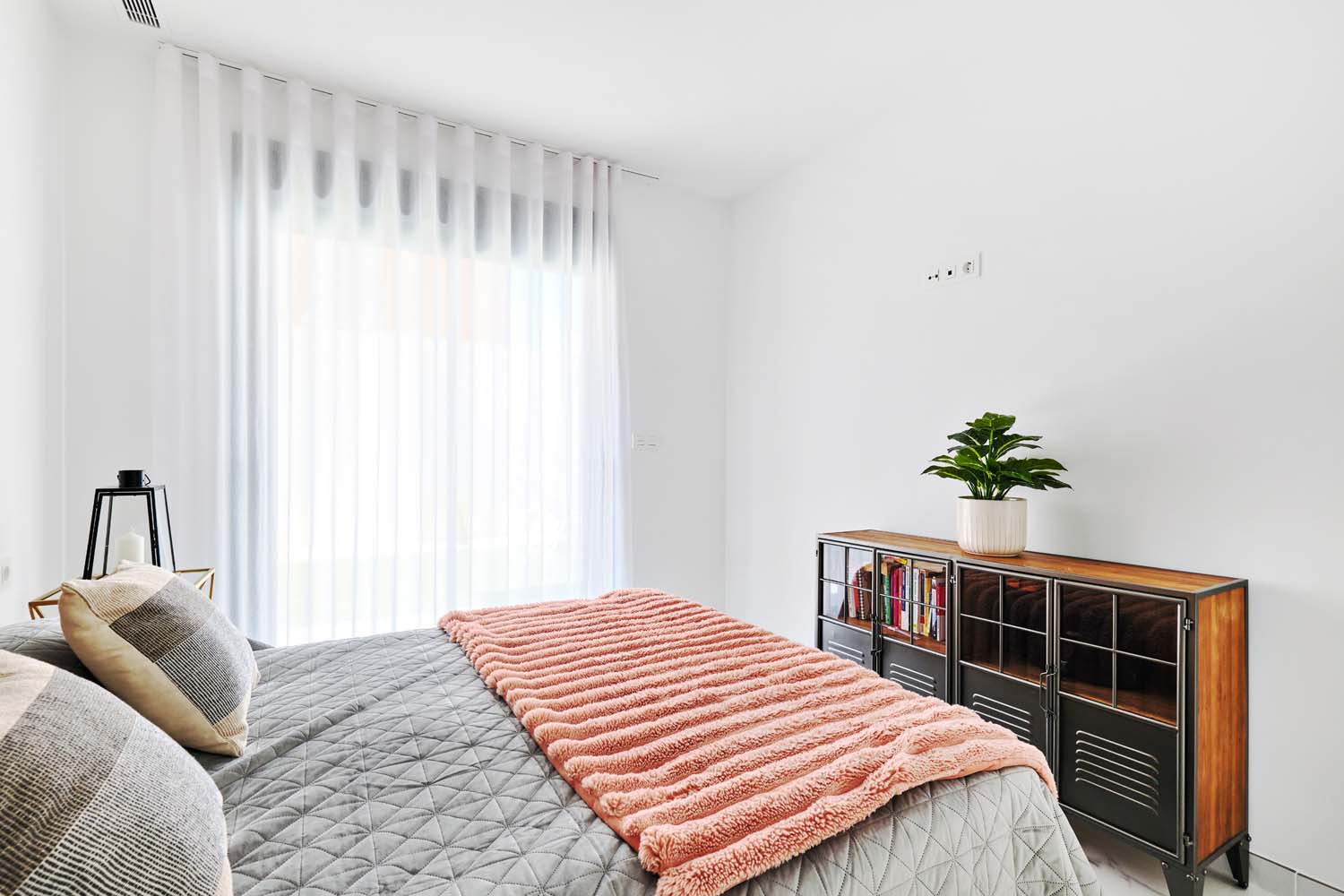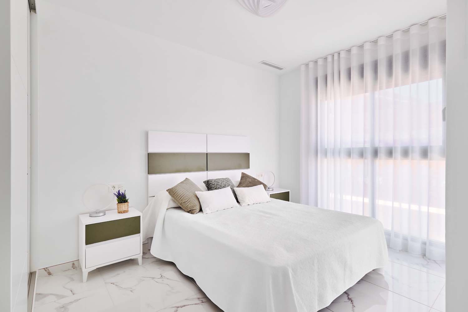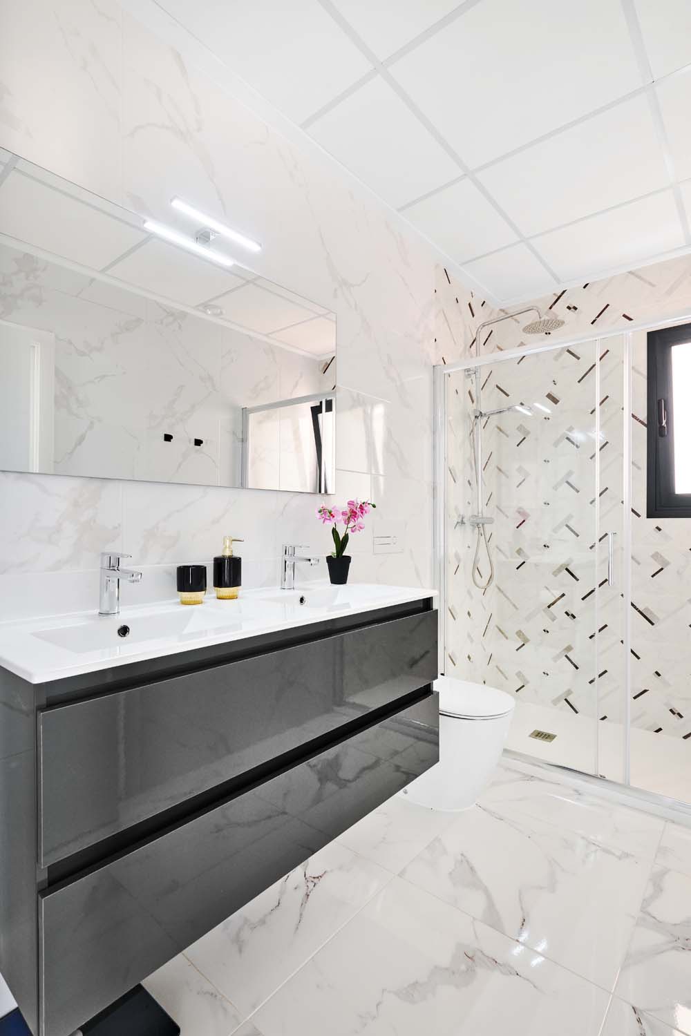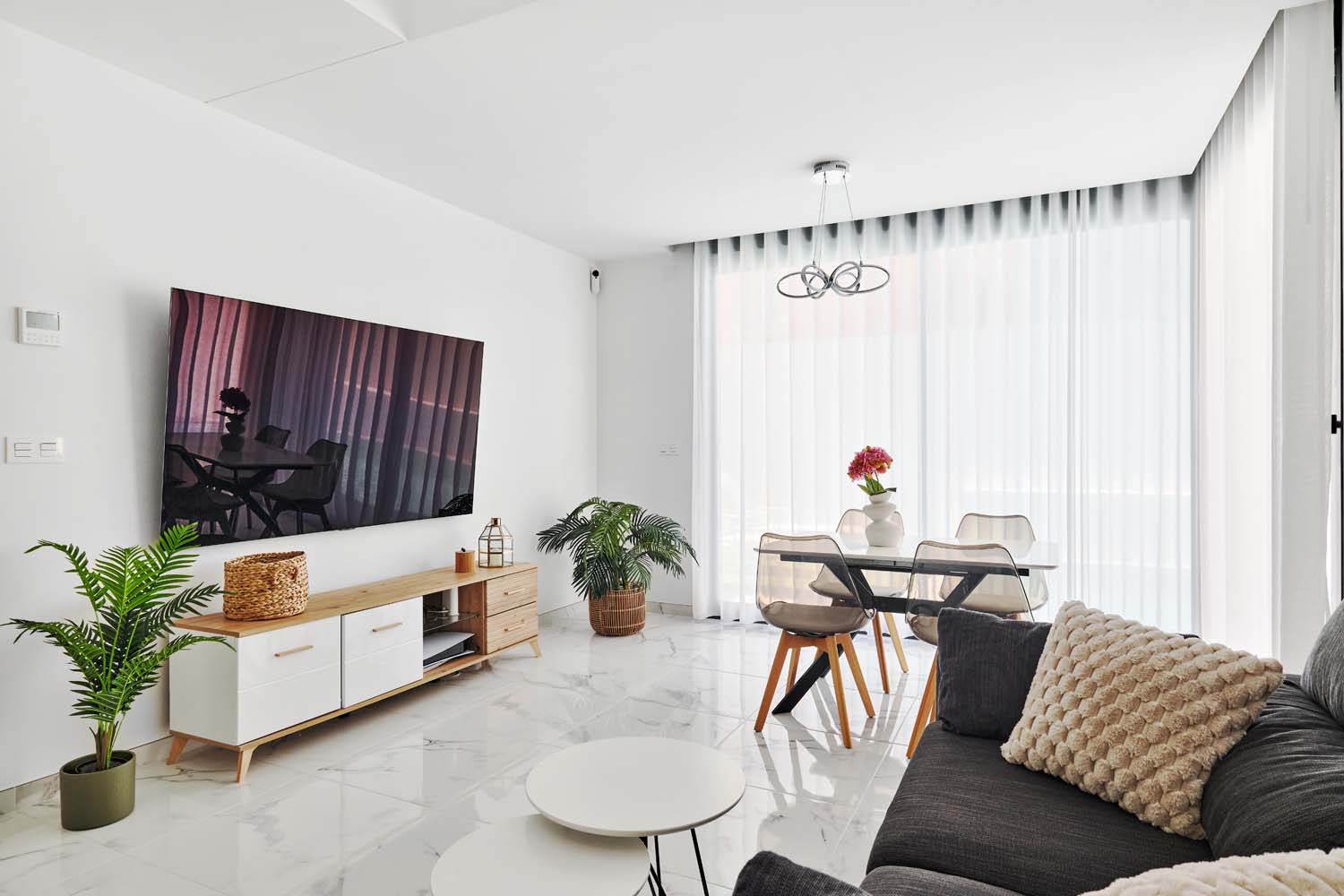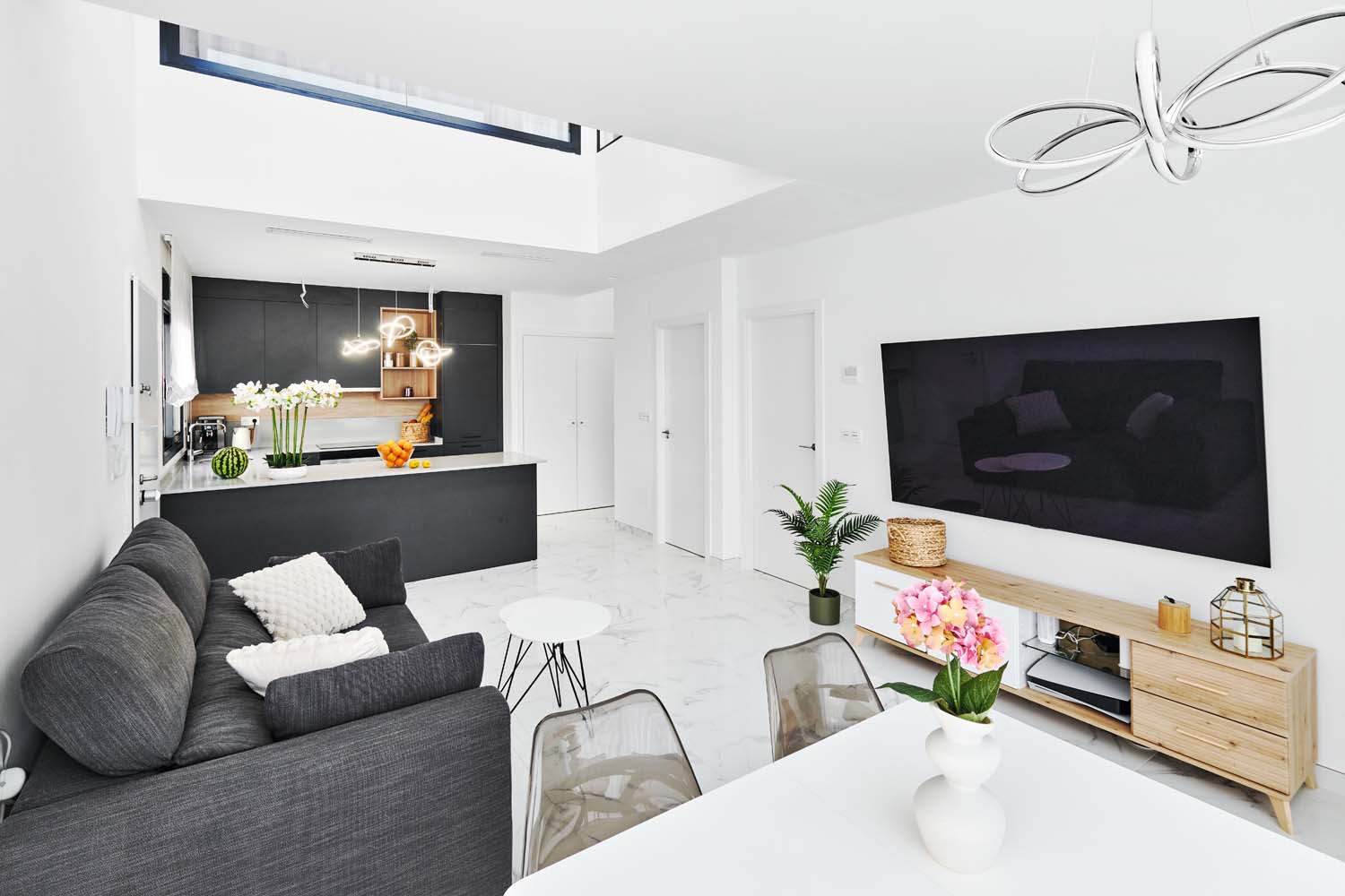 Fantastic opportunity to purchase a modern 3 bedroom, 2 bathroom detached villa with private swimming pool and off street parking, situated in a quiet cul de sac and small urbanisation on the edge of Los Montesinos town with an array of amenities and only 20 minutes drive to the beach. This beautiful villa is part of a community of only 6 detached villas in a small quiet cul de sac situated next to a green/park area and is only a few minutes walk to a large supermarket. To the outside of the villa is a spacious low maintenance plot with driveway accessible via a electric sliding gate, there is a private swimming pool with plenty of space for sunbathing and entertaining. The front door of the villa opens into a light and spacious open plan living/dining room with kitchen, the kitchen is a good size U shape with plenty of storage and there is a separate utility room next to the kitchen it is hidden and accessible by double white doors, in the living room there are patio doors which flood the room with natural light and give direct access out to the pool area. Also located on the ground floor is a bathroom with walk in shower and a large double bedroom with built in wardrobes and patio doors leading to the garden. A beautiful modern stone and glass staircase leads from the living area to the first floor of the villa, here there are two double bedrooms and a spacious family bathroom. Both bedrooms are light and good sized doubles with built in wardrobes, one of the bedrooms also benefits from direct access to the family bathroom and patio doors out to a terrace. The jack and jill bathroom has a large walk in shower and can also be accessed via a door from the hallway. There is another door in the hallway that leads onto the terrace where an external staircase leads to a large sunny roof terrace with lovely views, water and electric points should you wish to add a outside kitchen. This villa has a long list of added extras including ducted air conditioning, under floor heating in the bathrooms, private swimming pool, outside shower and electric gate. This property is immaculate, requires no work and is sold fully furnished, just pack your suitcase and enjoy! Viewing is highly recommended!