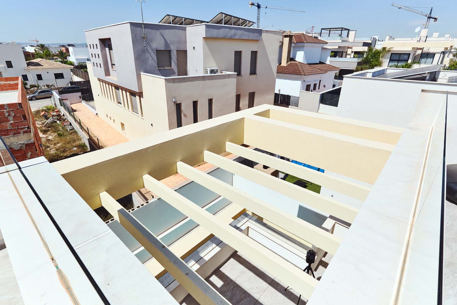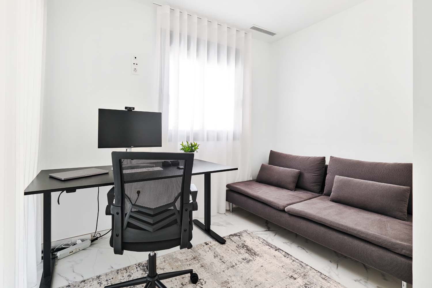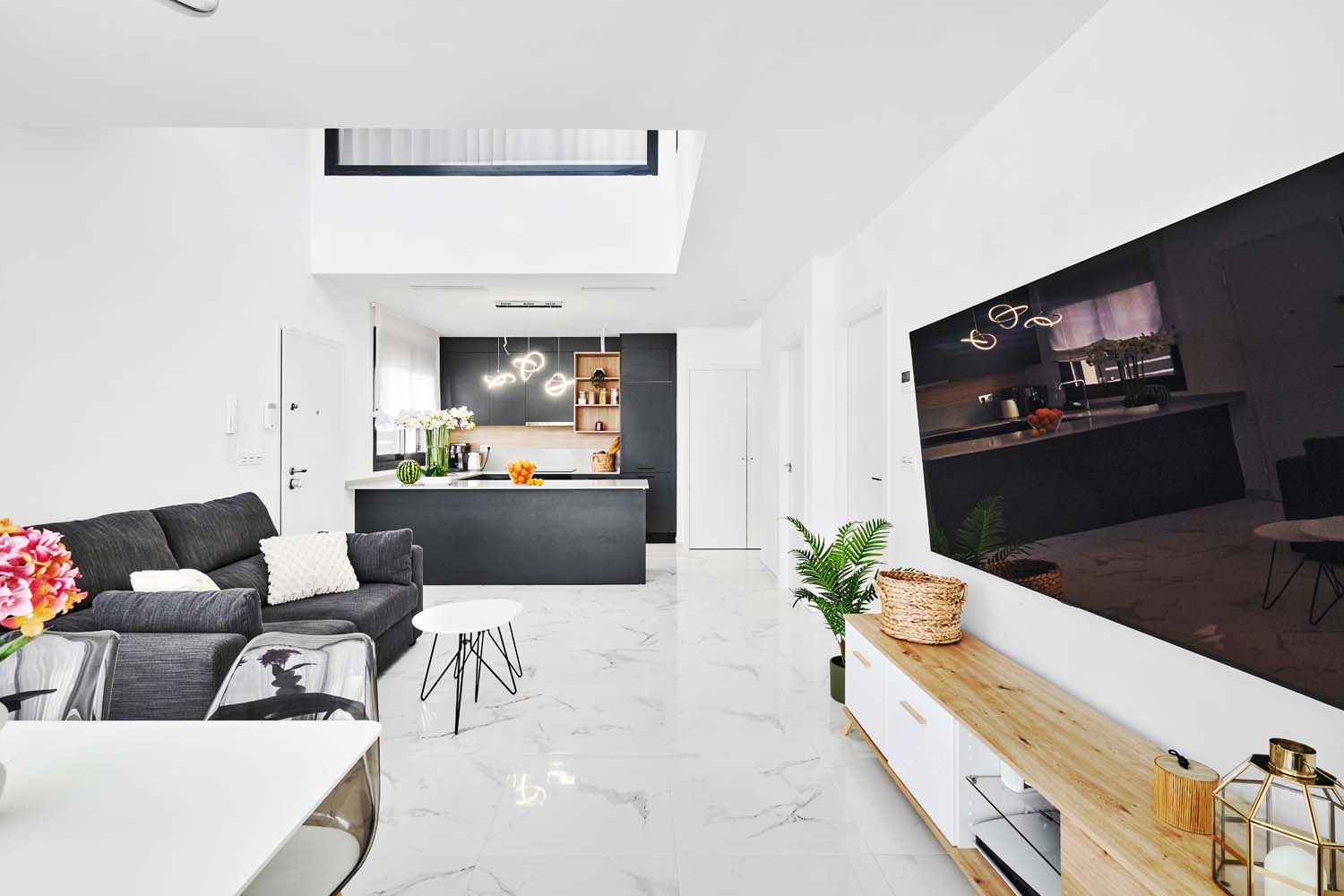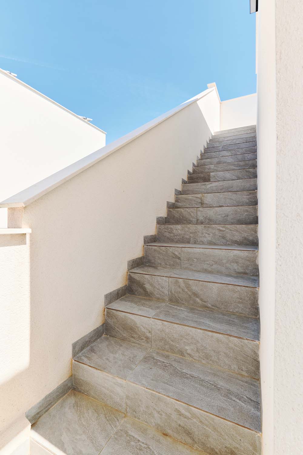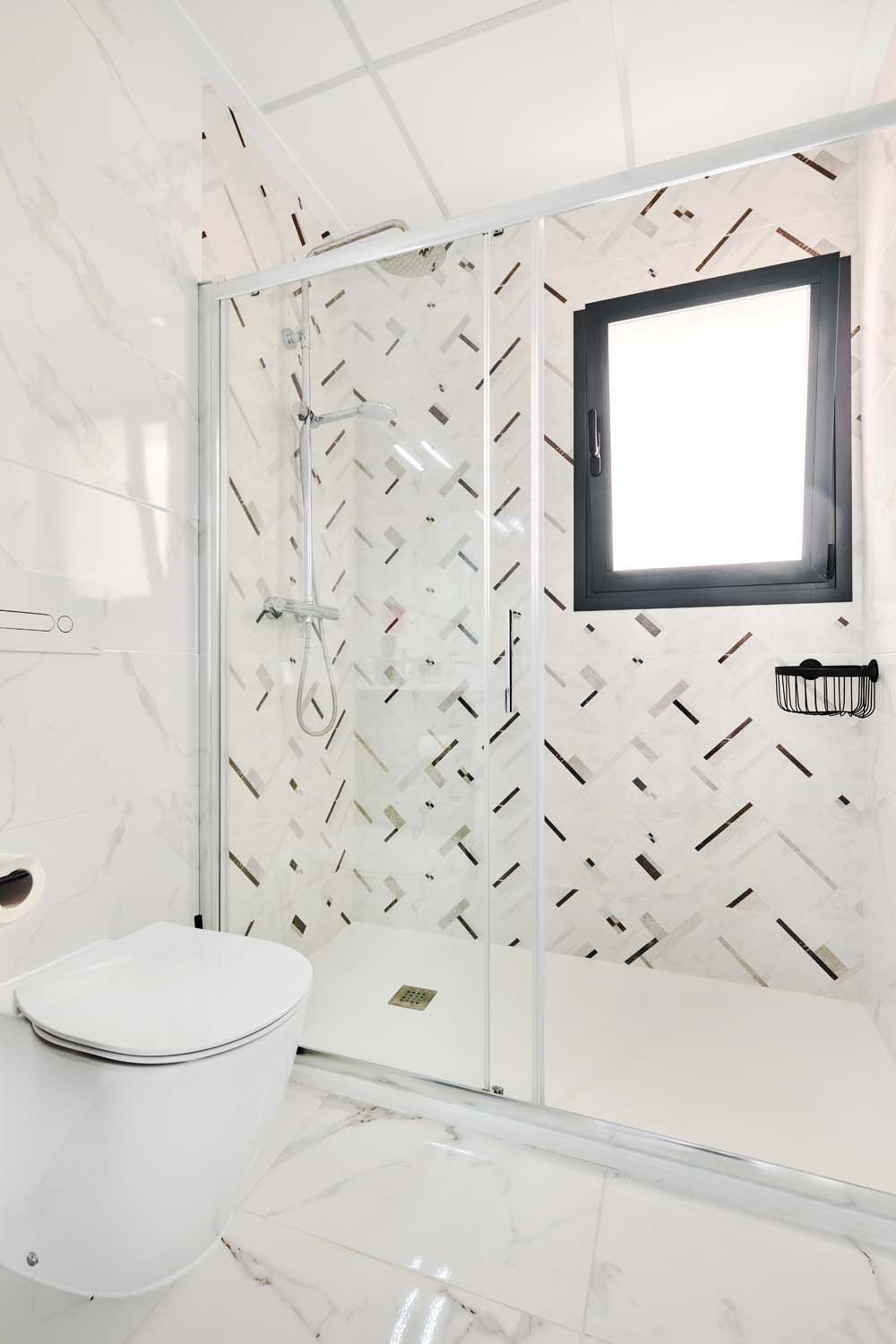 Fantastic opportunity to purchase a modern 3 bedroom, 2 bathroom detached villa with private swimming pool and off street parking, situated in a quiet cul de sac and small urbanisation on the edge of Los Montesinos town with an array of amenities and only 20 minutes drive to the beach. This beautiful villa is part of a community of only 6 detached villas in a small quiet cul de sac situated next to a green/park area and is only a few minutes walk to a large supermarket. To the outside of the villa is a spacious low maintenance plot with driveway accessible via a electric sliding gate, there is a private swimming pool with plenty of space for sunbathing and entertaining. The front door of the villa opens into a light and spacious open plan living/dining room with kitchen, the kitchen is a good size U shape with plenty of storage and there is a separate utility room next to the kitchen it is hidden and accessible by double white doors, in the living room there are patio doors which flood the room with natural light and give direct access out to the pool area. Also located on the ground floor is a bathroom with walk in shower and a large double bedroom with built in wardrobes and patio doors leading to the garden. A beautiful modern stone and glass staircase leads from the living area to the first floor of the villa, here there are two double bedrooms and a spacious family bathroom. Both bedrooms are light and good sized doubles with built in wardrobes, one of the bedrooms also benefits from direct access to the family bathroom and patio doors out to a terrace. The jack and jill bathroom has a large walk in shower and can also be accessed via a door from the hallway. There is another door in the hallway that leads onto the terrace where an external staircase leads to a large sunny roof terrace with lovely views, water and electric points should you wish to add a outside kitchen. This villa has a long list of added extras including ducted air conditioning, under floor heating in the bathrooms, private swimming pool, outside shower and electric gate. This property is immaculate, requires no work and is sold fully furnished, just pack your suitcase and enjoy! Viewing is highly recommended!