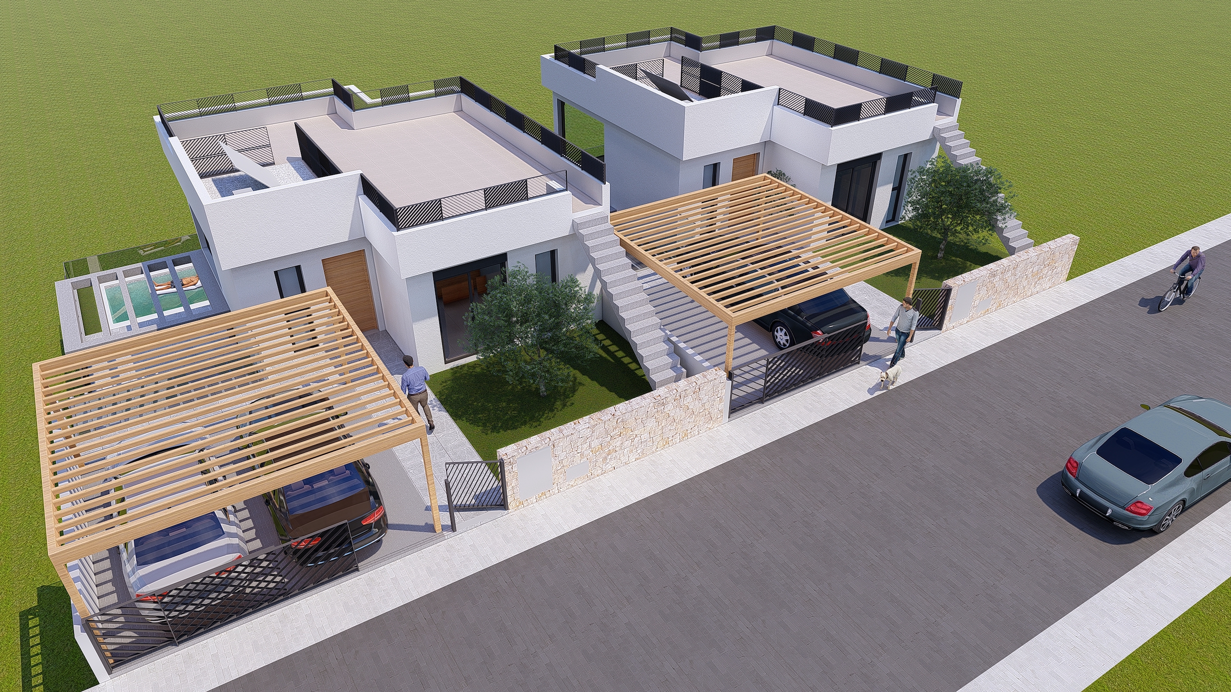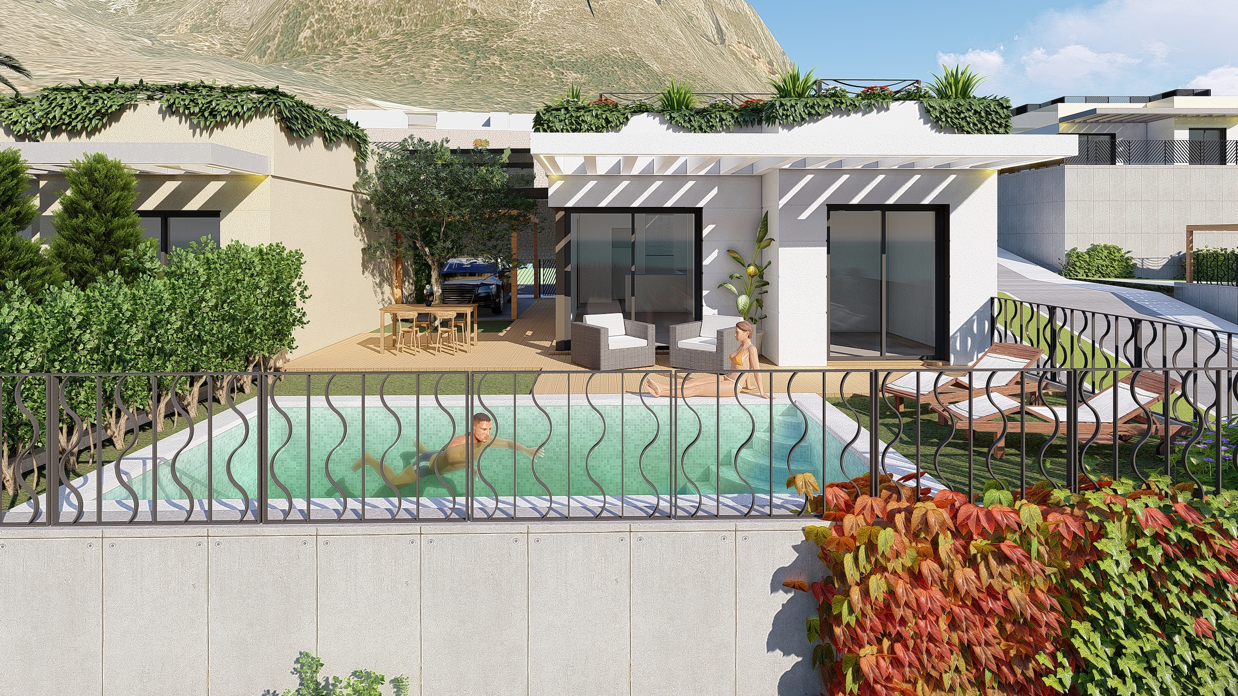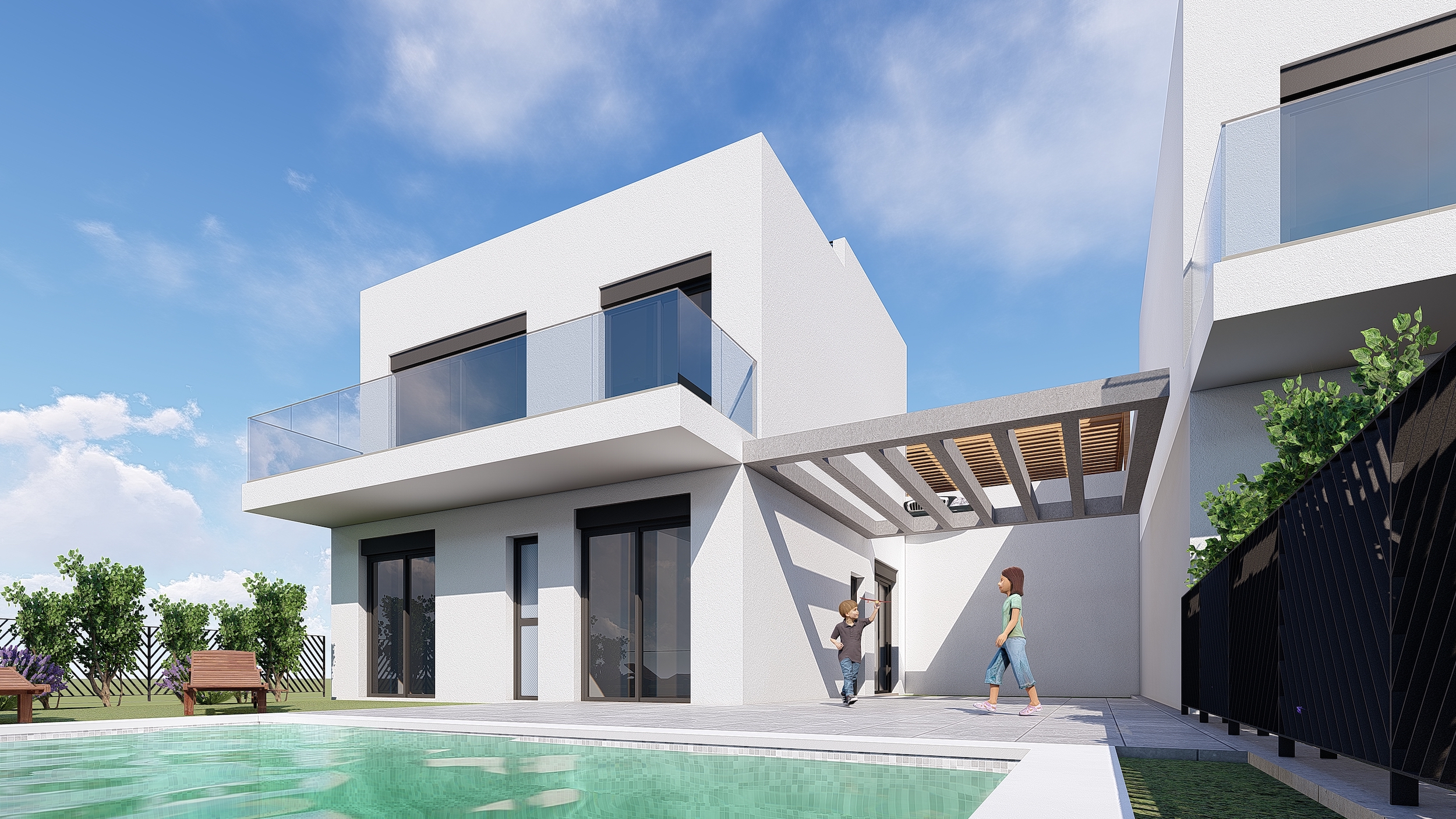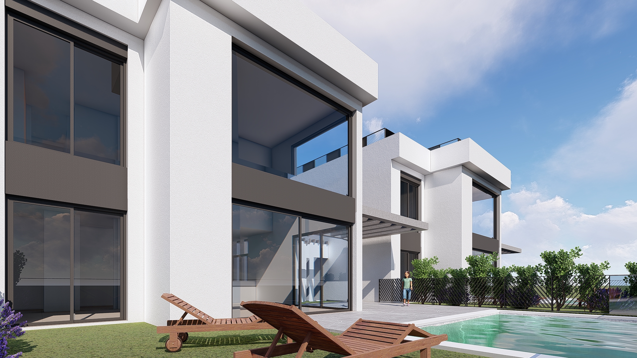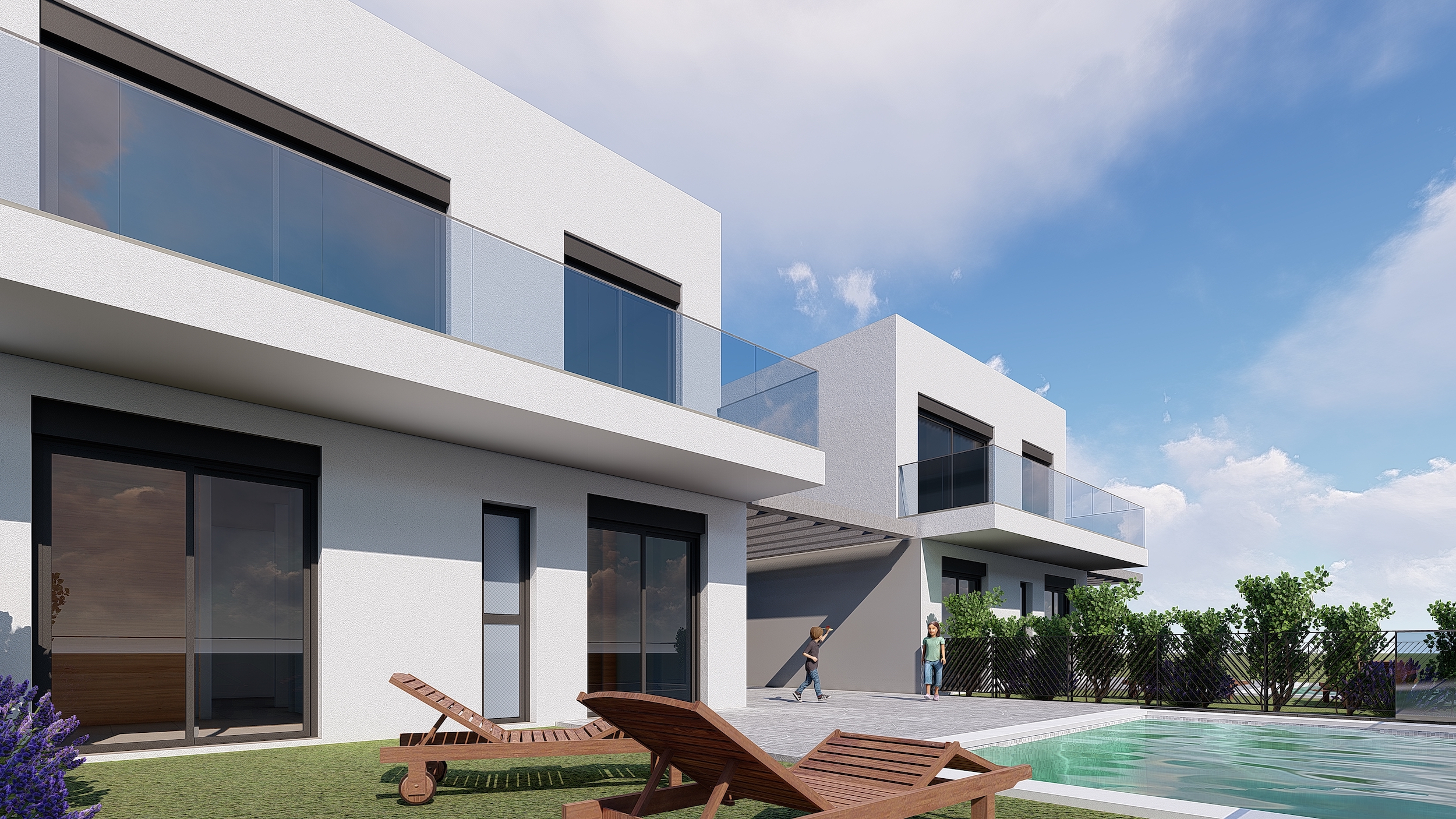 36 modern style detached houses, with 2 and 3 bedrooms, individual plot and optional private swimming pool.