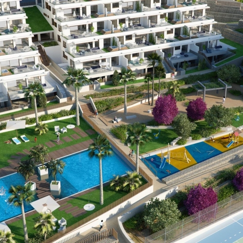 Phase one of Breeze, features 30 apartments and 14 terraced houses. Situated less than 8 km from Finestrat Cove and the beaches of Benidorm.