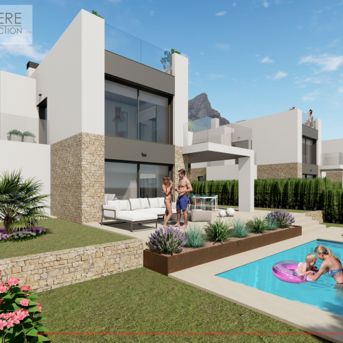 This development located in San Miguel de Salinas features 10 detached villas on plots ranging in size from 278 m2 to 600 m2. All these villas include a 7,00 x 4,00 m. swimming pool in the price. These villas are completed with the finest materials, as well as white appliances, pre-installation of air conditioning by conducts, bathrooms with mirrors and glass shower screens. under floor heating in bathrooms, etc. Interior spaces are thoughtfully designed to take full advantage of the best sun illumination inside the property. Here you have the possibility of choosing 3 different types of villas.