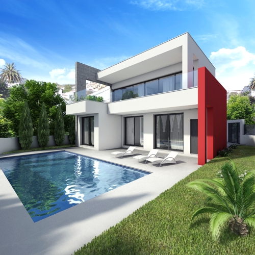 Modern design house, bright and spacious with straight lines, of 169 m2 with 4 bedrooms, where the forms arise from the search for spaces, in an advanced state of construction.